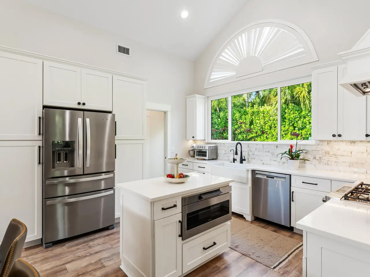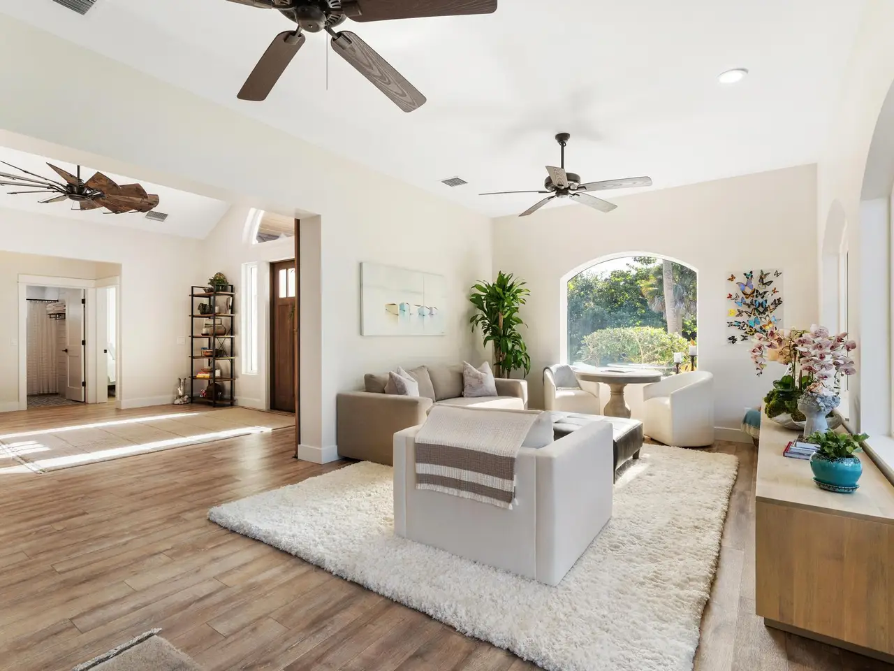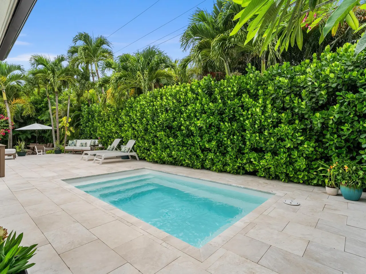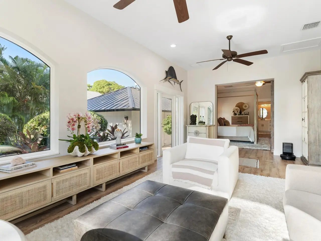 This Downtown Stuart-area home exudes true Florida style with functionality. Pride of ownership is felt the moment you cross the front door. New impact glass windows & doors, a reconfigured kitchen with large gathering island, & bar area beckon the true entertainer. Separate living room offers picture window views of the lush landscaping. Additional sitting area with accent fireplace. Garage doubles as an air-conditioned life/workspace. Outside, the home shines day or night, with multiple seating areas, plunge pool, gas-fed firepit, and water feature. Upgrades include home generator, 2023 new roof, owned solar panels & SPAN home center. A bonus, 40-plus foot dock at the Outrigger Harbour Marina (Jensen Beach) & 24k lift offered for $325
