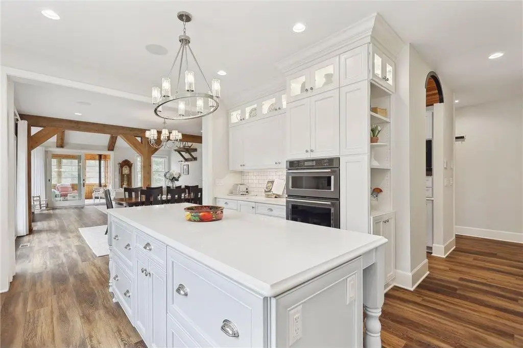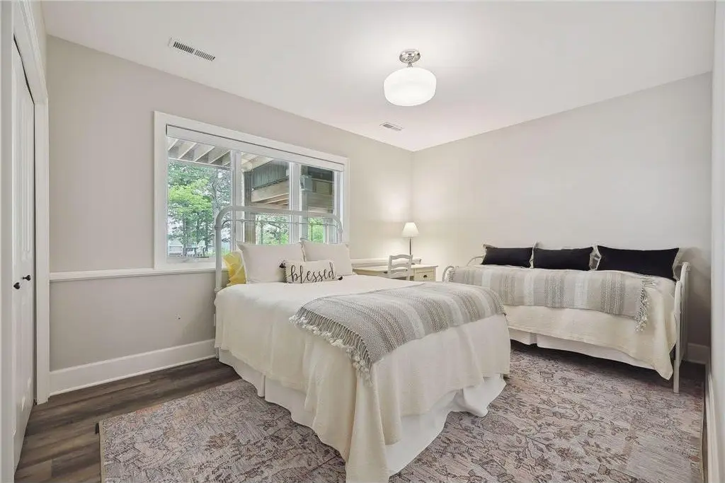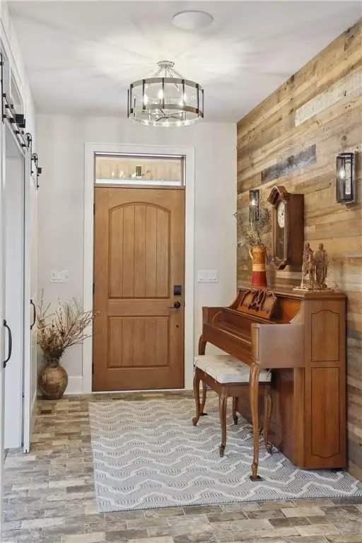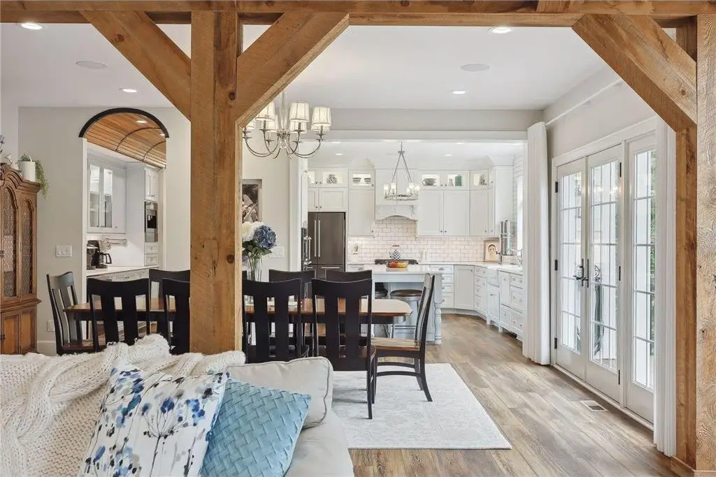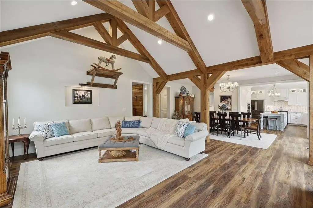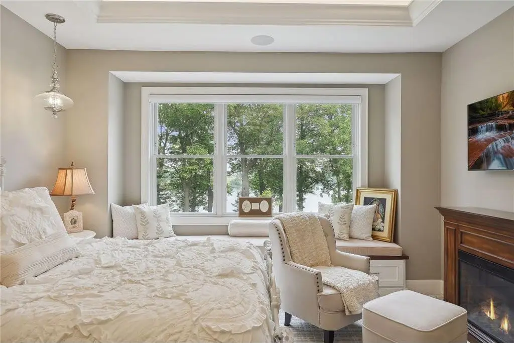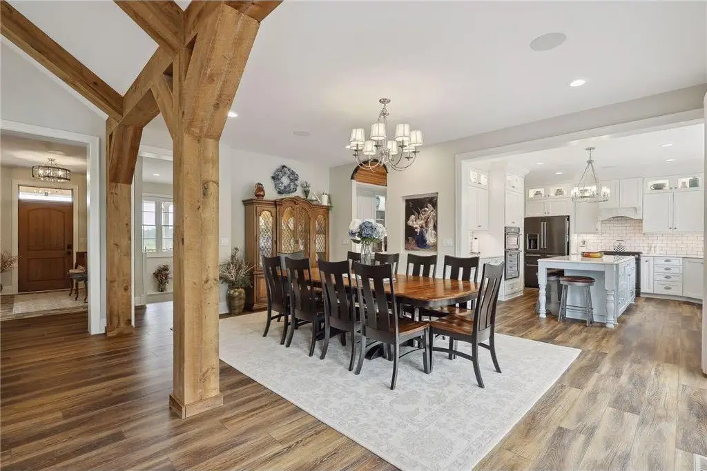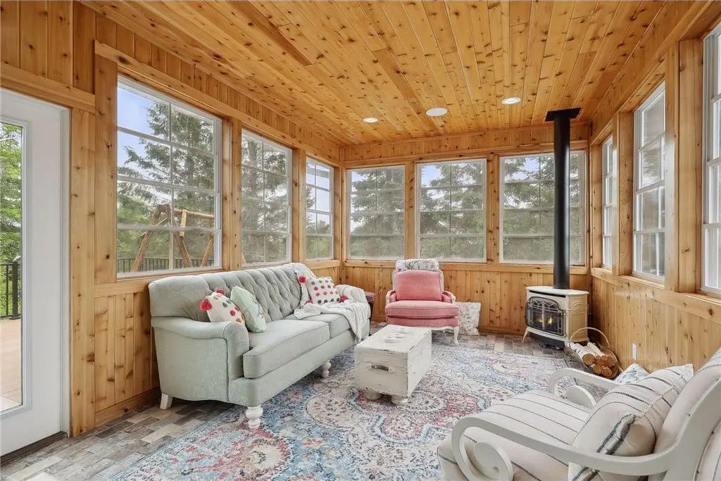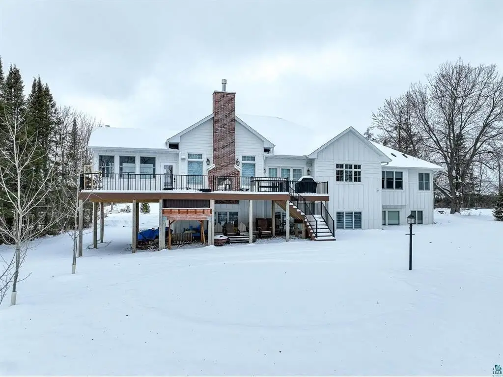 This custom lake home built by St. Croix Valley Construction is nothing short of extraordinary. With natural light throughout and a breezy flow with a perfect balance of work, leisure, relationships and purpose. Chef's kitchen with upgraded appliances, butler's pantry with wine cooler perfect for buffets or coffee bar. Breakfast nook w/built-in benches which raises and lowers. Living room with double-sided brick fireplace and vaulted ceilings w/naturally aged barnwood beams. Deck overlooking the lake with sunken hot tub as not to block any lake view. Plus a fireplace perfect for entertaining/hosting events or staying warm on cool breezy days while enjoying the country outdoors. Three season porch with in-floor heat and gas fireplace, windows which open making it usable 10 months out of the year. Perfect for quiet morning coffee and lake views. Master bed w/flow throughout wrap around. Upper level guest suite for extra privacy. Basement walkout for easy access to lake. Amazing detail!