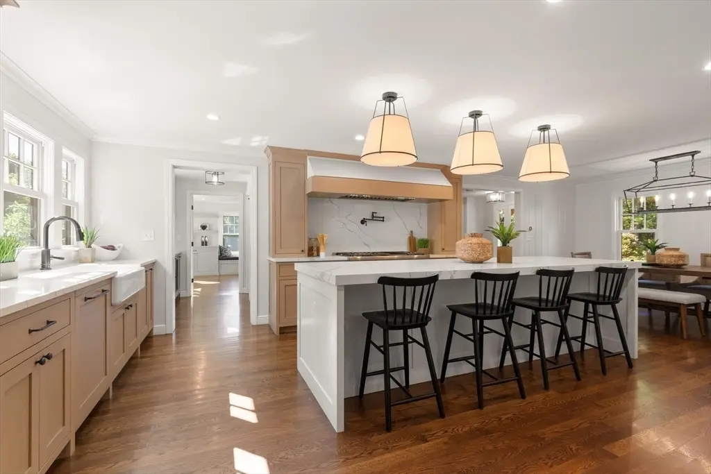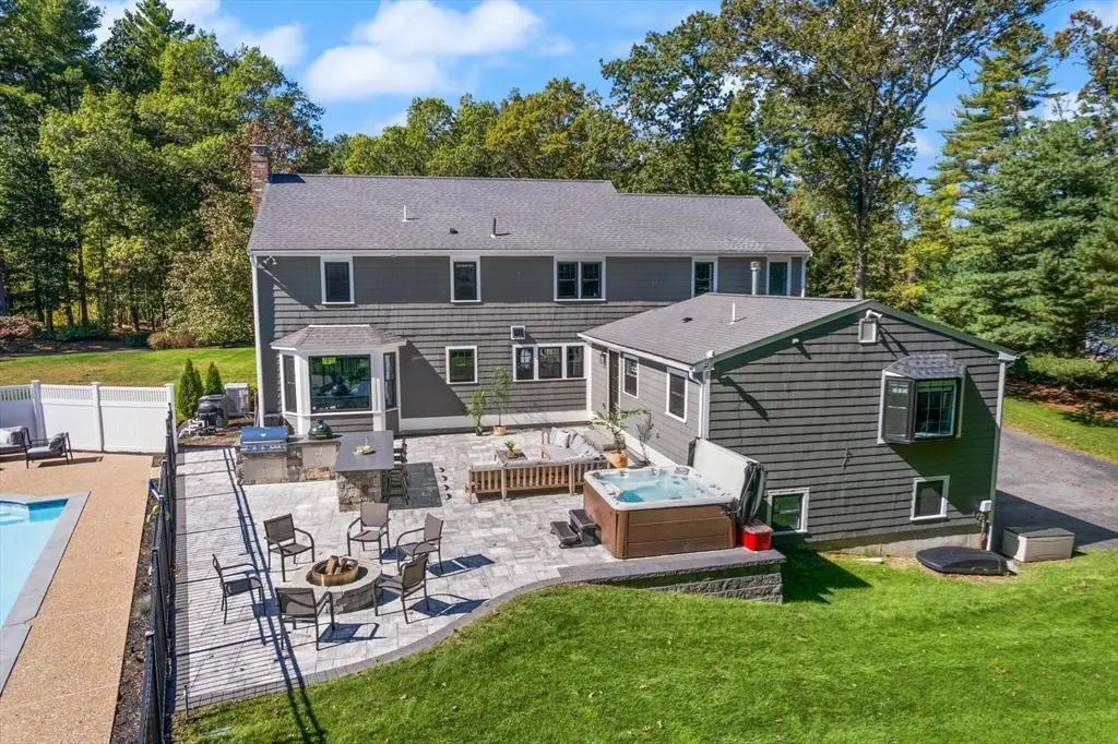 Don't mistake this home for a "Classic Colonial"; this property has been completely transformed inside and out through a meticulous and custom renovation. The result is a stunning residence featuring warm woods, crisp whites, and coastal hues. The entire property feels like a Shangri-La, set in a peaceful and welcoming neighborhood. Key features include a one-acre parcel, four-bay garage with EV charger, 5 bedrooms on the upper level, along with a guest suite on the first floor that includes a full bath and a walk-in closet. YouÆll also find 2 laundry rooms, 2 walk-in pantries, 2 dishwashers, and a large mudroom, among many other incredible amenities. Entertain friends and family in your own paradise, complete with an inground heated swimming pool, hot tub, fire pit, outdoor kitchen plumbed with a 36" gas grill and a built-in Big Green Egg! Plus, you'll have plenty of space for outdoor activities in your expansive yard! There's nothing to do here but move right in. A remarkable home!