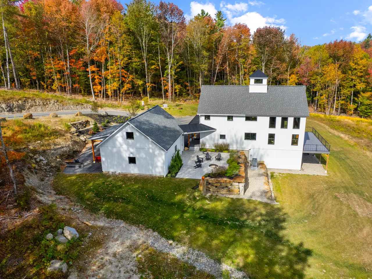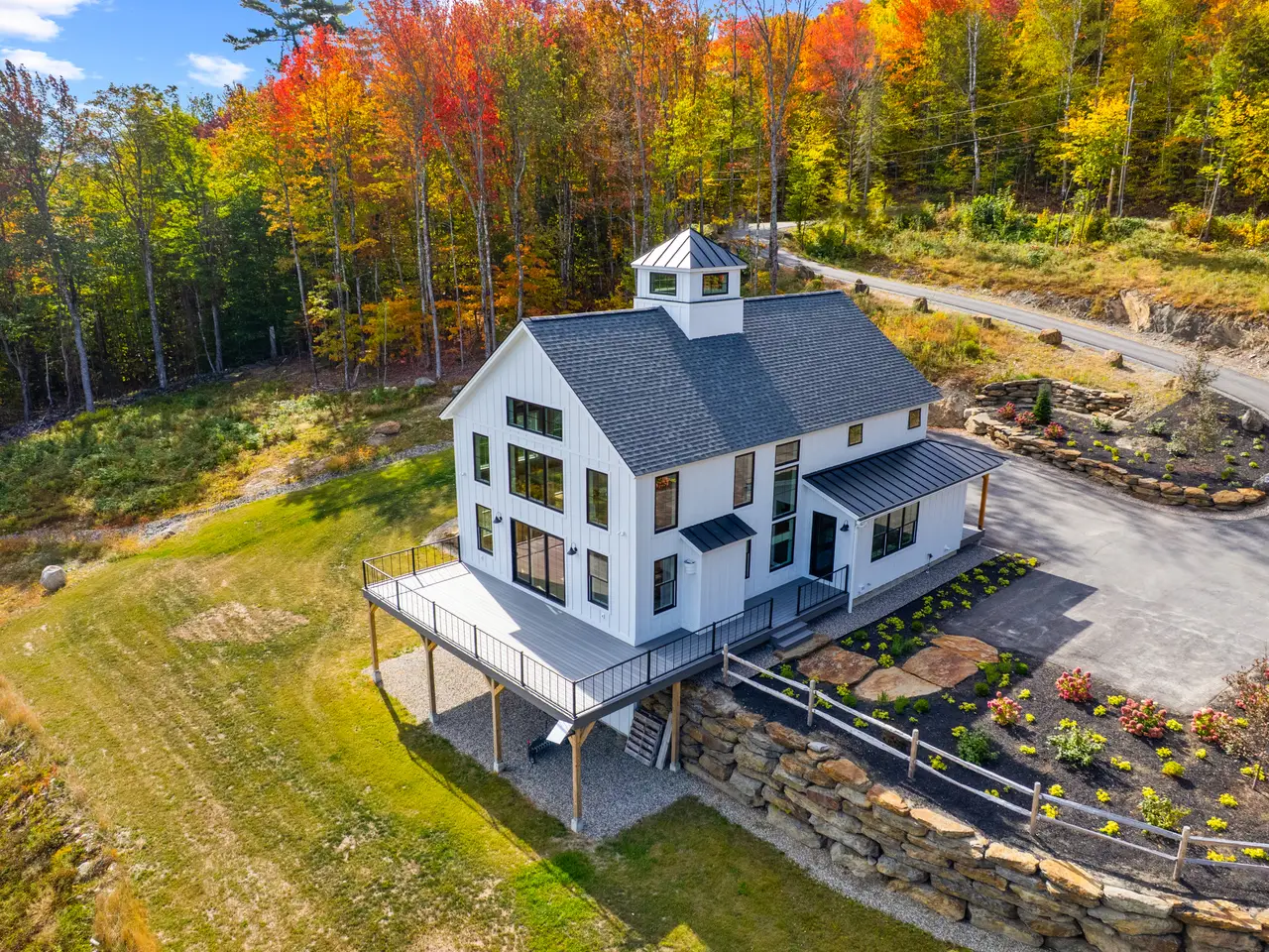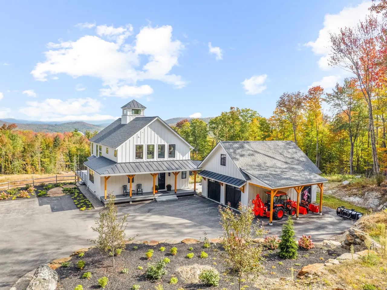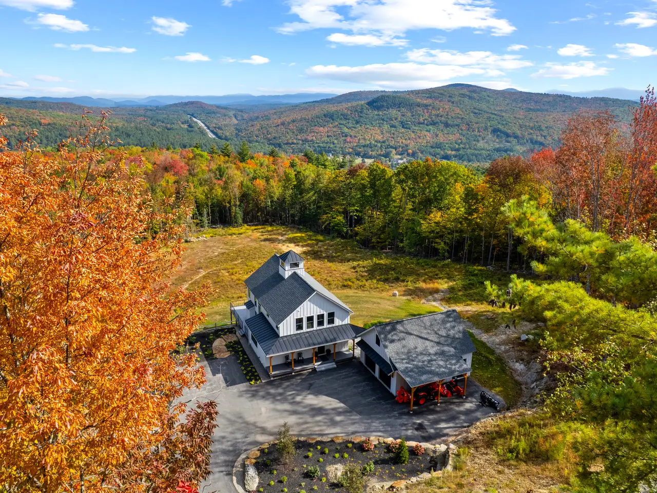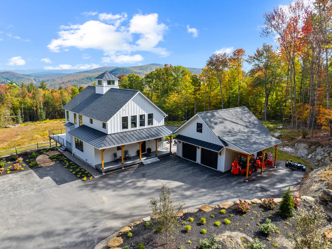 Experience Mountain Living at Its Finest. Why wait to build when this brand-new, custom-designed Yankee Barn stunning retreat is waiting for you now? The home is crafted with Douglas Fir beams and elegant half-lap joinery. Expansive elevated windows flood the open-concept interior with brilliant natural light. The main level includes a welcoming entrance onto the farmer's porch. Then, entering the home, a powder room to your right and a bedroom ensuite to the left; a state-of-the-art kitchen awaits, featuring a double-thickness quartz center island and marble backsplash, Thermador appliances, and a double wall oven. The living/dining area features a warming stone fireplace and opens to a generous deck, showcasing breathtaking mountain views. Upstairs, you'll find the primary ensuite with a private office and luxurious bath. The lower level is plumbed and ready for a future bathroom, bedroom, and family room, with walk-out access to a private backyard and space for additional gardens. Outdoor enhancements include lush gardens, stonework, private patios, and a two-bay garage with a loft, all on over 20+/-AC. Located on prestigious Blake Road, once home to the historic Peckett’s Inn, it was the summer retreat to many wealthy visitors and Hollywood elite. This property offers timeless charm in the heart of Sugar Hill. You'll be close to all the White Mountains have to offer. Great opportunity! Land in CU.