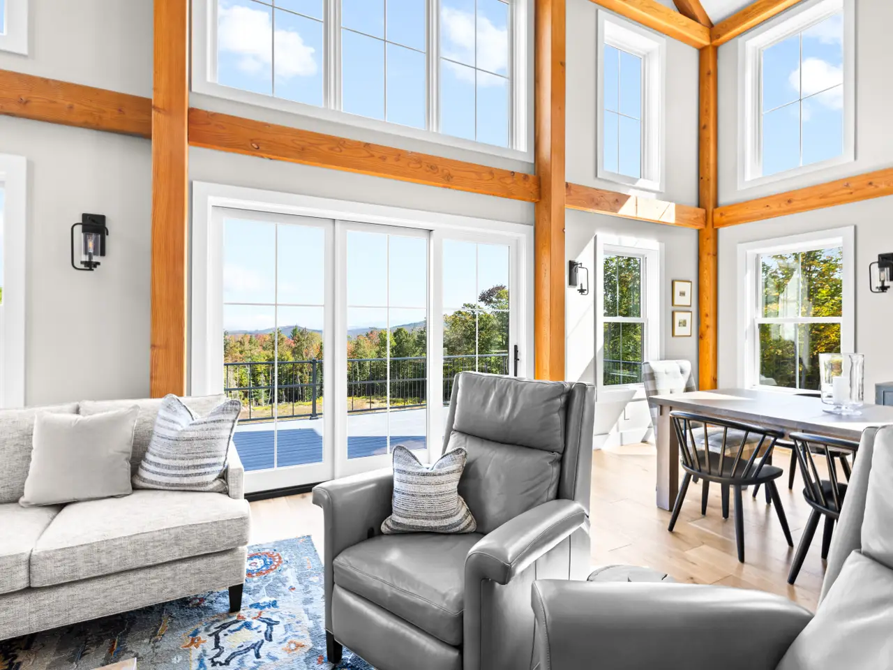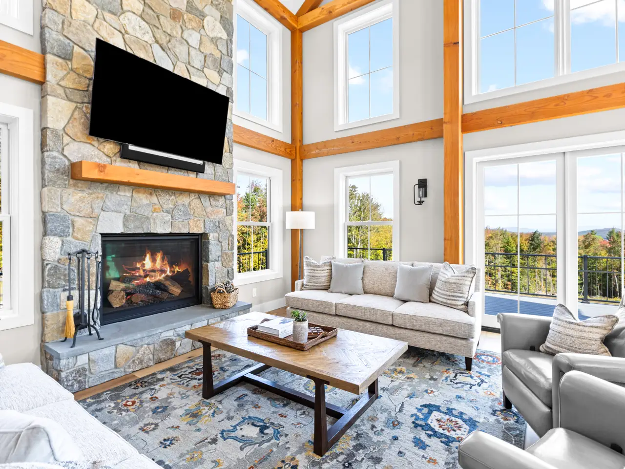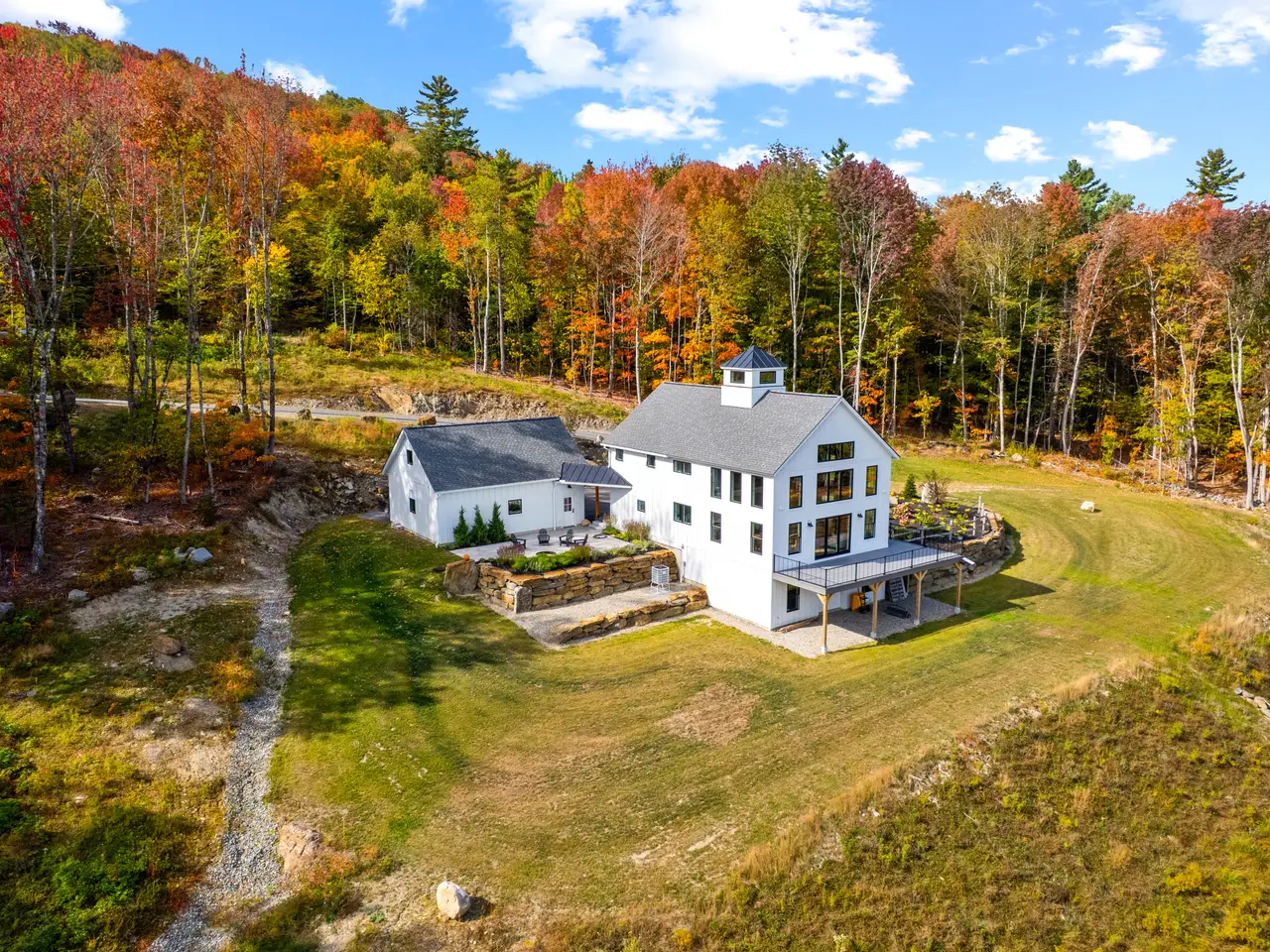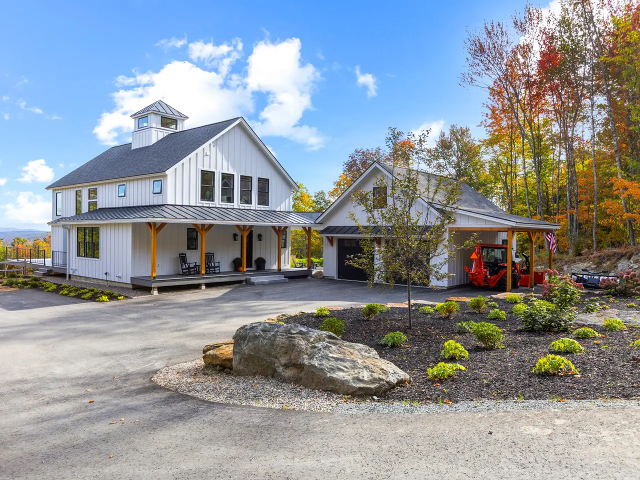 Experience Mountain Living at Its Finest. Why wait to build when this brand-new, custom-designed Yankee Barn stunning retreat is waiting for you now? The home is crafted with Douglas Fir beams and elegant half-lap joinery. Expansive elevated windows flood the open-concept interior with brilliant natural light. The main level includes a welcoming entrance onto the farmer's porch. Then, entering the home, a powder room to your right and a bedroom ensuite to the left; a state-of-the-art kitchen awaits, featuring a double-thickness quartz center island and marble backsplash, Thermador appliances, and a double wall oven. The living/dining area features a warming stone fireplace and opens to a generous deck, showcasing breathtaking mountain views. Upstairs, you'll find the primary ensuite with a private office and luxurious bath. The lower level is plumbed and ready for a future bathroom, bedroom, and family room, with walk-out access to a private backyard and space for additional gardens. Outdoor enhancements include lush gardens, stonework, private patios, and a two-bay garage with a loft, all on over 20+/-AC. Located on prestigious Blake Road, once home to the historic Peckett’s Inn, it was the summer retreat to many wealthy visitors and Hollywood elite. This property offers timeless charm in the heart of Sugar Hill. You'll be close to all the White Mountains have to offer. Great opportunity! Land in CU.