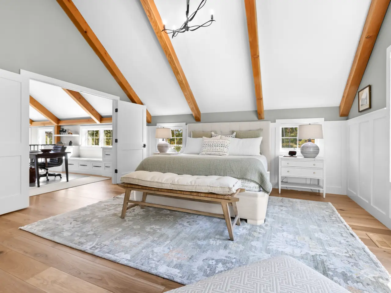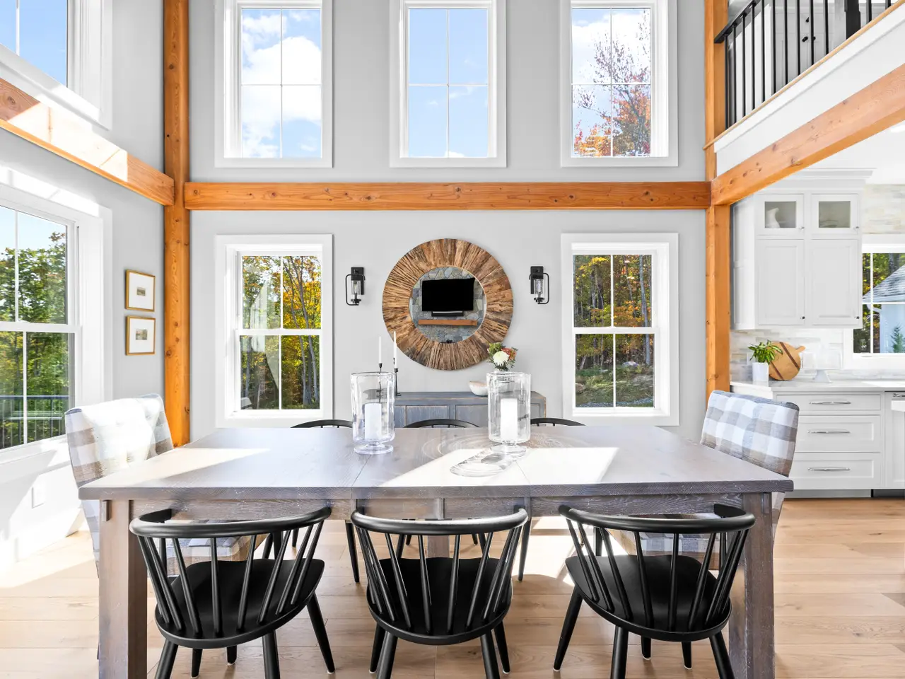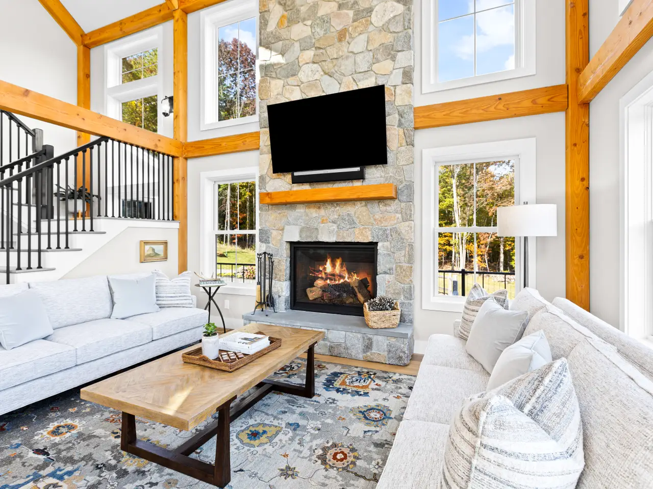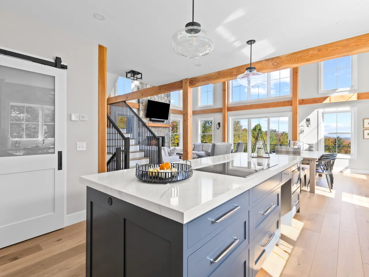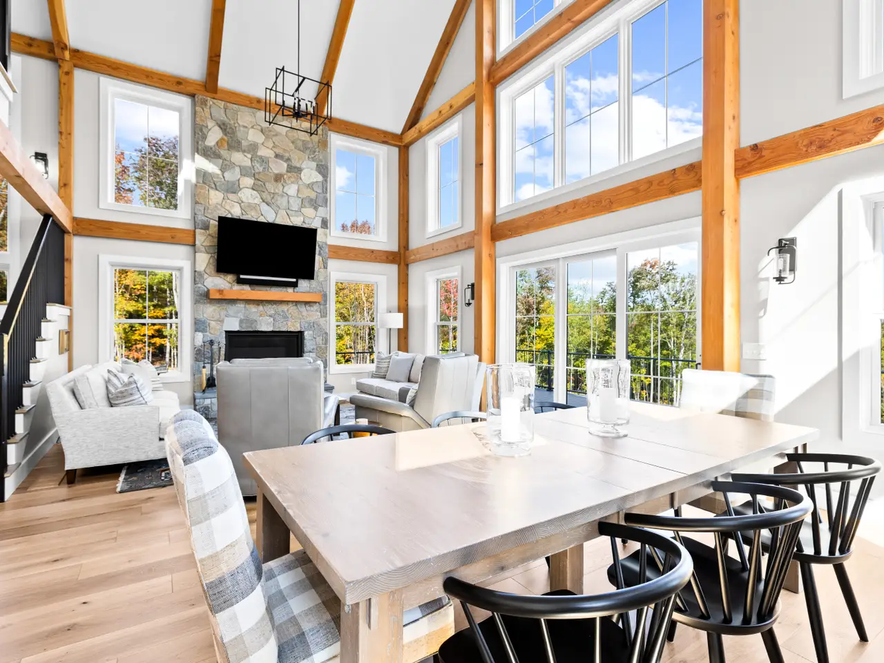 Experience Mountain Living at Its Finest. Why wait to build when this brand-new, custom-designed Yankee Barn stunning retreat is waiting for you now? The home is crafted with Douglas Fir beams and elegant half-lap joinery. Expansive elevated windows flood the open-concept interior with brilliant natural light. The main level includes a welcoming entrance onto the farmer's porch. Then, entering the home, a powder room to your right and a bedroom ensuite to the left; a state-of-the-art kitchen awaits, featuring a double-thickness quartz center island and marble backsplash, Thermador appliances, and a double wall oven. The living/dining area features a warming stone fireplace and opens to a generous deck, showcasing breathtaking mountain views. Upstairs, you'll find the primary ensuite with a private office and luxurious bath. The lower level is plumbed and ready for a future bathroom, bedroom, and family room, with walk-out access to a private backyard and space for additional gardens. Outdoor enhancements include lush gardens, stonework, private patios, and a two-bay garage with a loft, all on over 20+/-AC. Located on prestigious Blake Road, once home to the historic Peckett’s Inn, it was the summer retreat to many wealthy visitors and Hollywood elite. This property offers timeless charm in the heart of Sugar Hill. You'll be close to all the White Mountains have to offer. Great opportunity! Land in CU.