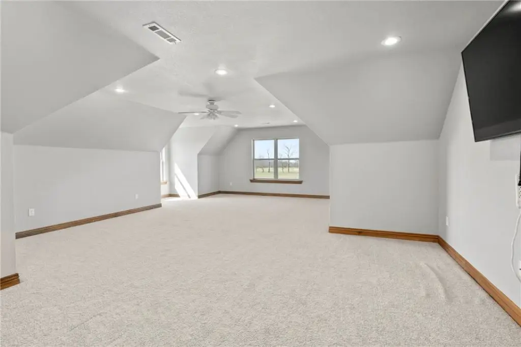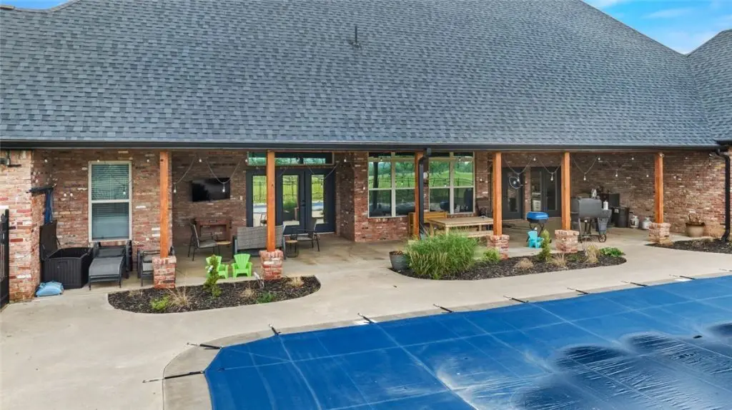 Discover this exquisite 4,693 sq. ft., 4-bedroom, 4.5-bathroom estate home set on 20 lush acres. This two-story gem offers a perfect blend of luxury and functionality. The expansive open entertainment area features a projection screen and a massive game room, ideal for hosting gatherings. The open kitchen, with granite and hardwood, seamlessly flows into the living room, complete with a cozy gas fireplace, creating a warm and inviting atmosphere. Step outside to the covered porch and entertainment area, where you'll find an in-ground saltwater pool, perfect for relaxation and outdoor fun. The master suite is a true retreat, boasting an oversized walk-in, dual entrance closet, and an open floor plan master bath designed for ultimate comfort. The property is adorned with lush grass, providing a serene and picturesque setting. Additionally, a large 60 x 40 insulated shop with electric and three overhead doors offers ample space for projects and storage. This gorgeous estate offers a unique blend of elegance.