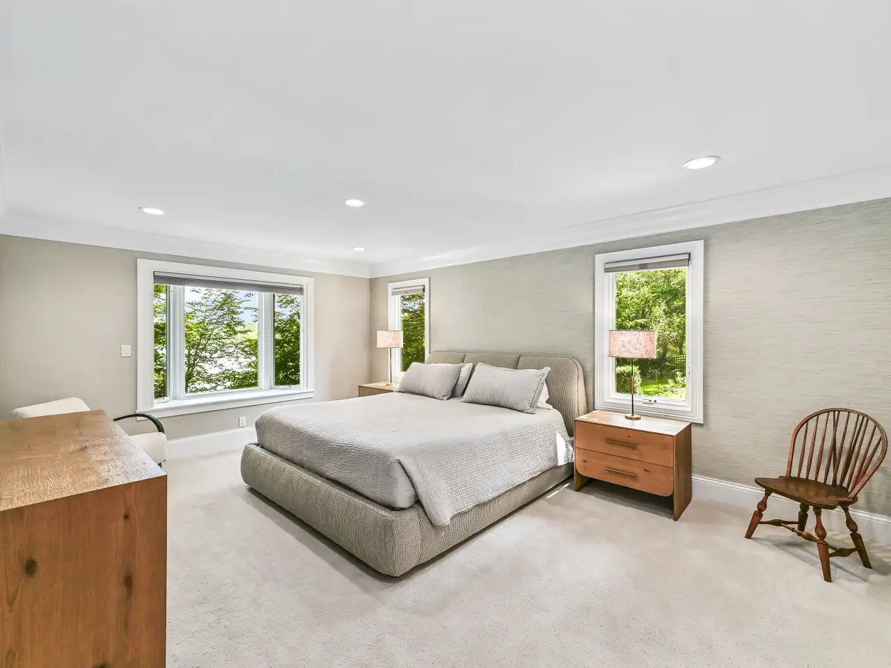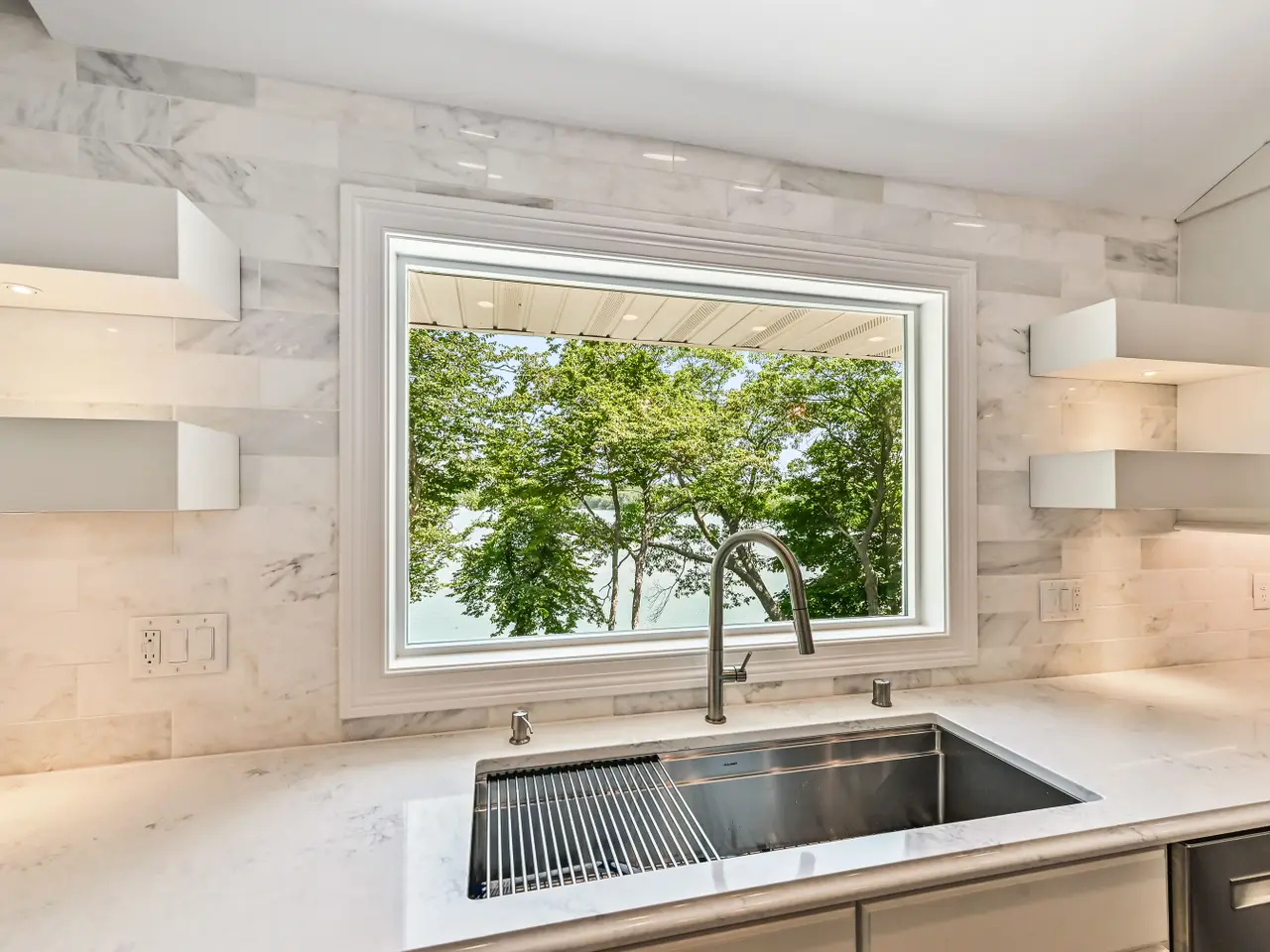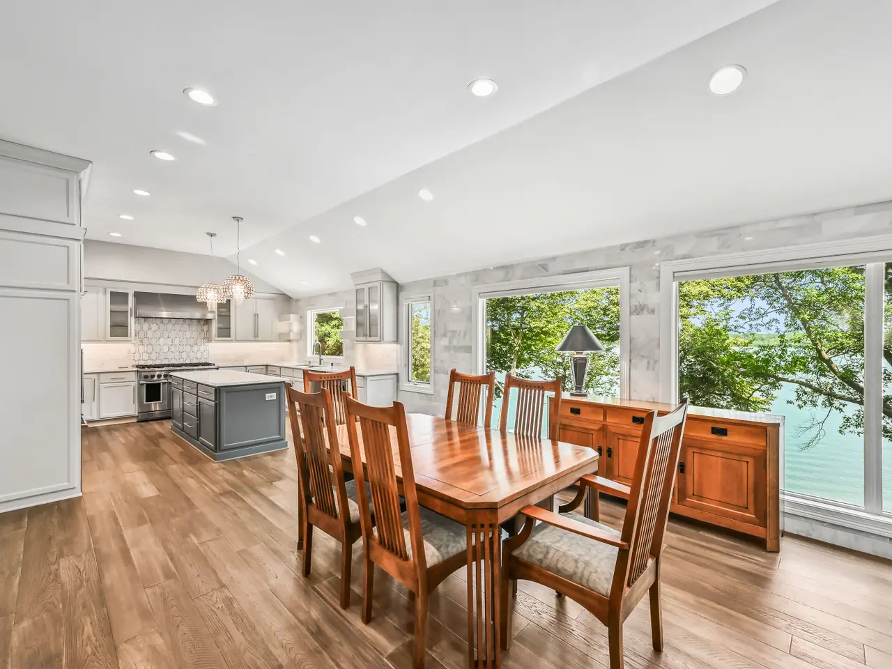 Fully renovated in 2022, this luxurious four bedroom, four and a half bathroom, lakefront residence offers over 3,400 sq ft of beautiful living space on coveted Upper Nashotah Lake. Set on a private .84-acre lot with 250' of pristine frontage, the home showcases elevated design, a bright open floor plan, and sweeping lake views throughout. The chef's kitchen features Fisher and Paykel appliances, quartz counters, and a spacious island. The main level includes a serene primary suite and guest bedroom, while the walkout lower level offers a full bar, second entertaining space, and two additional lake-facing bedrooms. Enjoy the fenced yard, stamped concrete patio, luxury gas fire pit, and permanent Summerset dock and lift for effortless lake living.