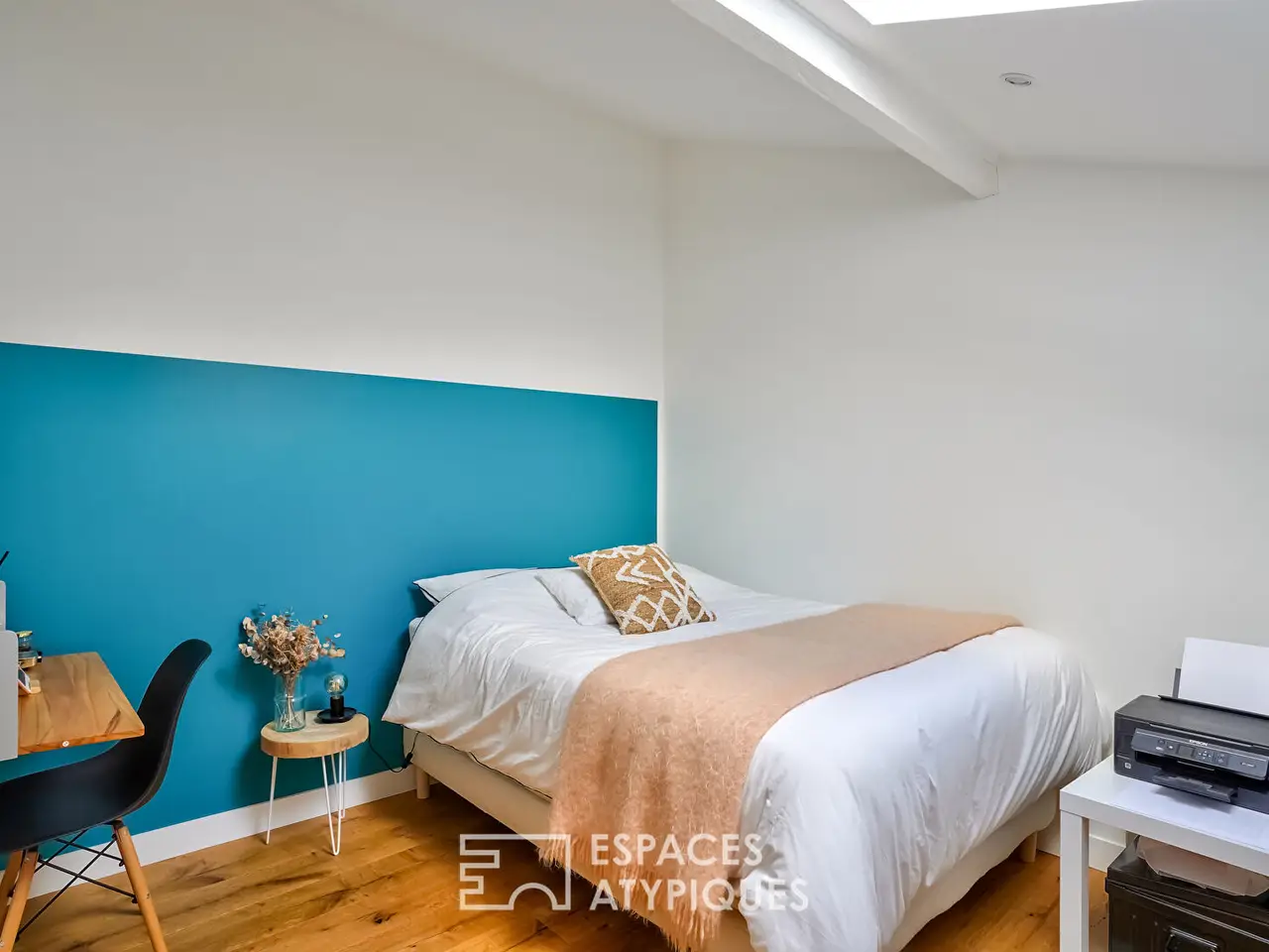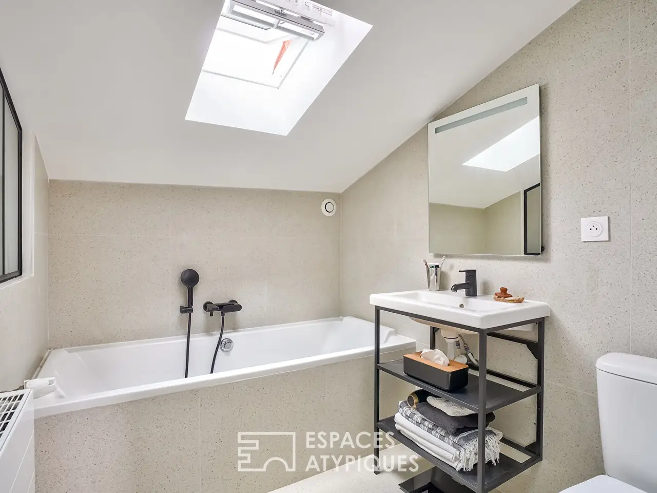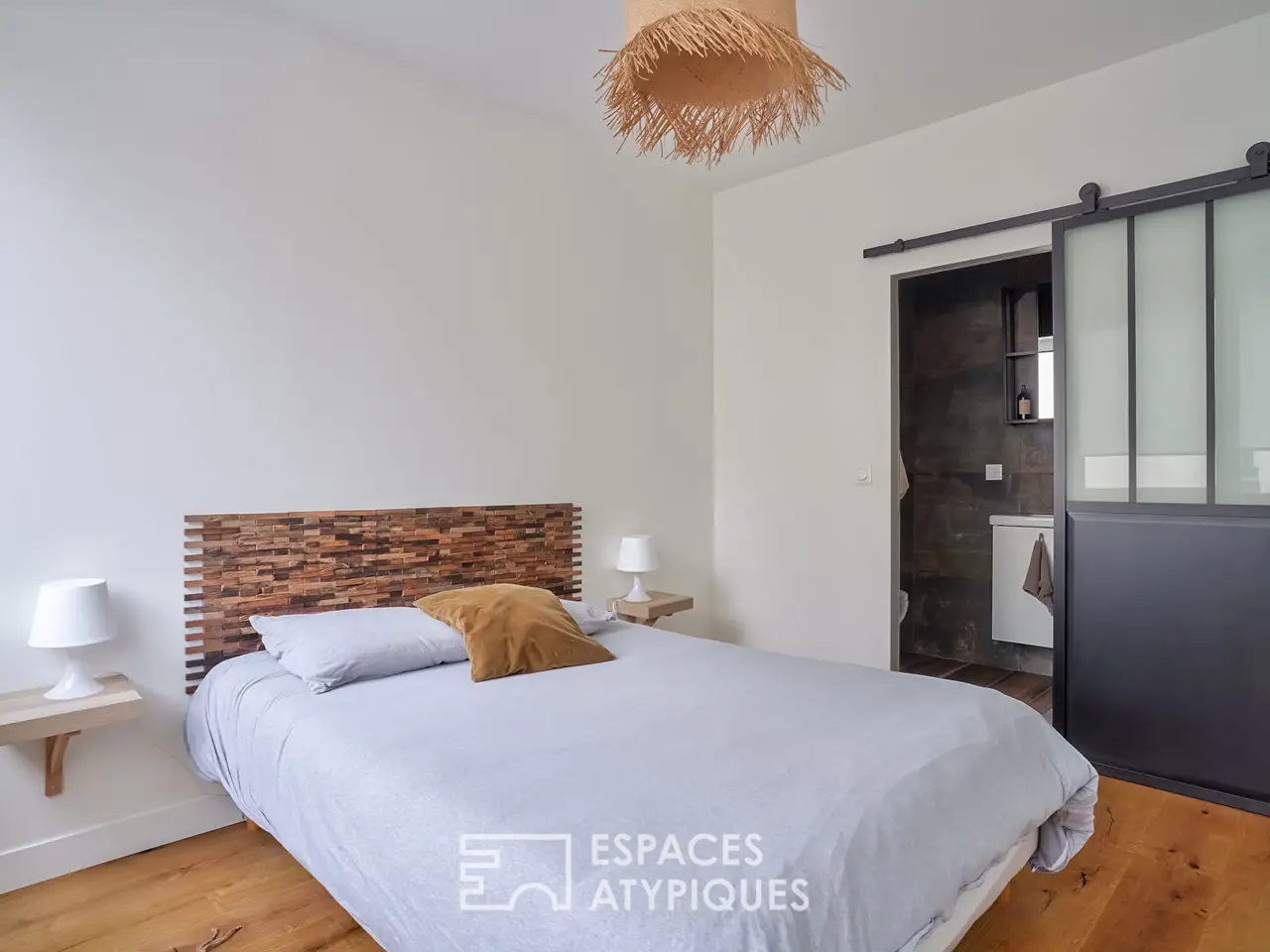 Located on the border with Puteaux, this unique townhouse is the result of the renovation of a former 19th century marble works. It offers 185.33 m2 Carrez (190.46 m2 floor space) of charm and elegance. Perfectly renovated with contemporary materials, it combines the character of the old with modern amenities. The main living space offers 124.83 m2 Carrez (129.96 m2 floor space) in duplex, completed by two independent apartments, making this property a property with great potential, ideal for an investment or a large family. Upon entering, the ground floor welcomes a functional hall, accompanied by a large laundry room and separate toilets. Upstairs, a remarkable living space is bathed in natural light, and seduces with impressive volumes and an incredible ceiling height of 5.50 meters, creating an airy and friendly atmosphere. An open kitchen with a contemporary design completes this space, ideal for moments of sharing with family or friends. On the night side, three bedrooms share the ends of the property. On the living room side, we discover a beautiful master suite with its own bathroom with toilet. On the staircase side, an office space ideal for teleworking or multipurpose use, distributes two bedrooms and a second bathroom, with current decoration. In addition to this main part, the property includes two two-room apartments, respectively 32.06 m2 and 28.44 m2. These accommodations, now successfully used as seasonal rentals, represent a great opportunity for additional income. It is also possible to reintegrate them into the main space, or to keep them for an attractive rental profitability. Located in a quiet and residential area, this house benefits from a location in the immediate vicinity of public transport, shops and the dynamic market of Puteaux. A private garage perfectly completes the services offered. In full ownership, this property skillfully combines history and modern comfort through impressive volumes, brightness and unique charm. This inspiring place to live will be ideal for lovers of unique spaces, a family or an investment with rental possibilities. REF. 7763 Additional information * 10 rooms * 5 bedrooms * 1 bathroom * 3 shower rooms * Property tax : 736 €