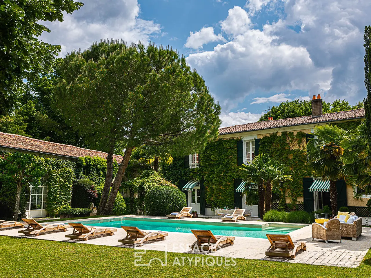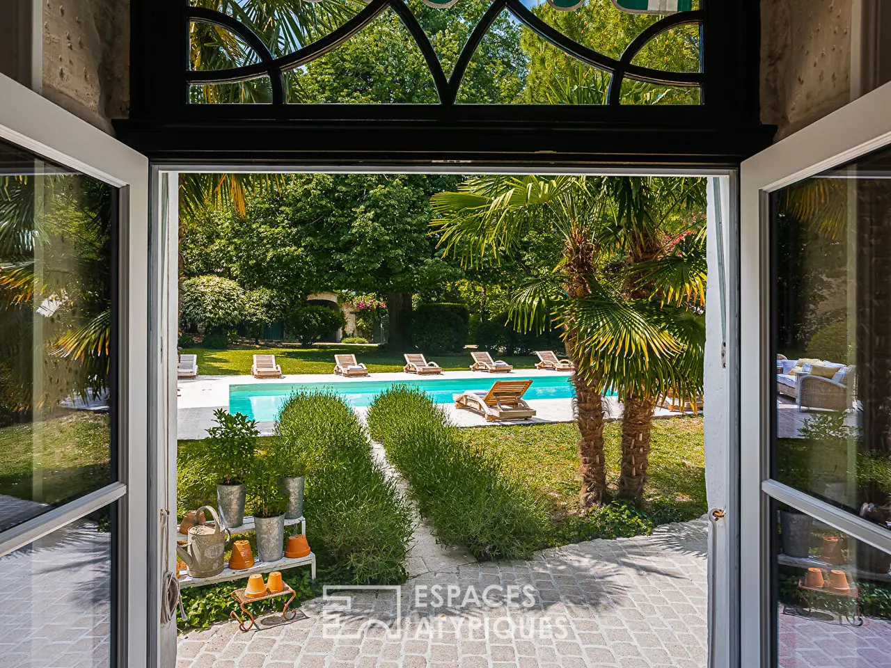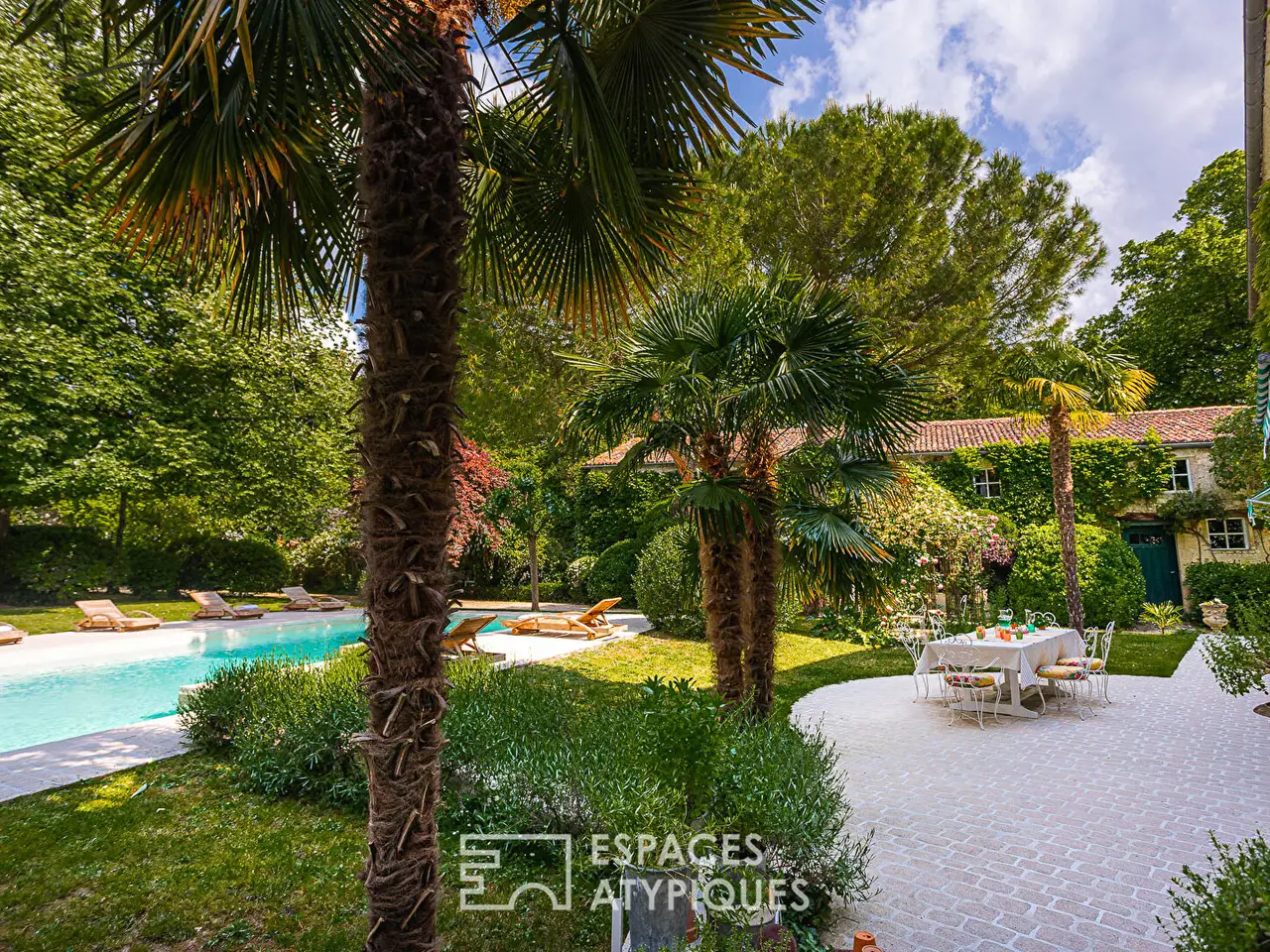 Located in a veritable green setting, this former 17th century seigneury (1643) is an exceptional place that has been pampered by its owners to preserve the beauty and prestige of the property over the centuries. Today, it has the air of a charming house fitted out and decorated with finesse and elegance, like a timeless interlude that leaves no one indifferent after their visit. On one side, the property is bordered by a park with century-old trees of approximately 2 hectares, which offers a prestigious access path to the heart of the place guarded by two imposing plane trees and a vault. On the other, an orchard of approximately 4,000 m2 on the banks of the Boutonne delimits the property. This facade is guarded by a remarkable cylindrical dovecote surrounded by Virginia creeper, as well as a high stone wall sheltering the door to the garden of the house. Once the imposing wooden door is pushed open, a true bucolic paradise enclosed by high stone walls and various period outbuildings is revealed. The vegetation, the swimming pool, and the buildings are in perfect harmony. This delightful spectacle gives a strong feeling of tranquility and happiness. Accessible from the terrace, the entrance offers a unique view of the design of the place. A row leading to the living rooms features stone, cement tiles, and in the distance, parquet flooring laid in a herringbone pattern. For the walls, a rare and clever mix of freestone and period bricks arouses an appreciable curiosity that invites you to discover this beautiful residence. The kitchen has retained its beams and its imposing fireplace. They are accompanied by a magnificent piano and a stone sink. The dining room, meanwhile, displays its more bourgeois style with moldings and a marble-clad fireplace. Finally, the living room with its many openings is notable for its pleasant volume and the warmth provided by the parquet flooring and the views of the outdoors. Before leading to the upper floor of the house, the splendid stone staircase covered in wood opens onto the linen room. Once on the landing, a first bedroom is now converted into an office enjoying a view of the garden, as well as the river at the front. Just like the ground floor, a wide hallway furnished with sofas and chests of drawers leads to the other rooms. The second bedroom offers a very beautiful volume with direct access to the large bathroom. The latter, with its approximately 31 m2, has both a magnificent bathtub in the center of the room, as well as a shower area. Its terracotta tiles and woodwork give it a great deal of elegance. Then comes the largest of the bedrooms (approximately 30 m2) which impresses with its surface area and its light oak headboard. The fourth bedroom benefits from a bathroom open to the room, nicely hidden. In the garden, the main annex building has two floors of approximately 200 m2. The ground floor is converted into a sewing workshop, the upper floor into storage. A former aviary with interesting volumes offers great development potential. A vaulted cellar and a box for an equine companion complete the property. A perfectly maintained prestigious property that will delight lovers of history and beautiful homes in peaceful locations. Surgeres, Niort, and Saint Jean d'Angely are the nearest towns. La Rochelle is 50 minutes away. ENERGY CLASS: F / CLIMATE CLASS: F. Estimated average annual energy expenditure for standard use, based on 2021 energy prices: between EUR6,850 and EUR9,310. REF. EALR2007 Additional information * 7 rooms * 4 bedrooms * 2 bathrooms * 1 bathroom * Outdoor space : 34250 SQM * Parking : 30 parking spaces * Property tax : 2 815 € Energy Performance Certificate EPC : 281 kWhEP/m2.year