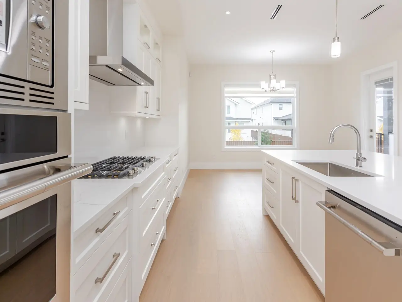 Stunning custom built 2 level plus basement 6,041 sqft (including 420 sqft garage) beautiful house on 7,312 sqft lot in new subdivision, quietest street. Dream kitchen with central island, solid maple cabinets, professional grade Jenn-Air stainless appliances, walk-in pantry, spice kitchen with gas stove, radiant hot water heat on all 3 floors, engineered hardwood floors, central air conditioning, variable speed HRV, heat pump, sitting area in primary bedroom, and luxury ensuite. LED lights, surveillance cameras, alarm system, fully finished basement with theatre room, 2 bedroom legal suite PLUS MORE. Close to both levels of schools, near new proposed Fleetwood Skytrain Station and all amenities.