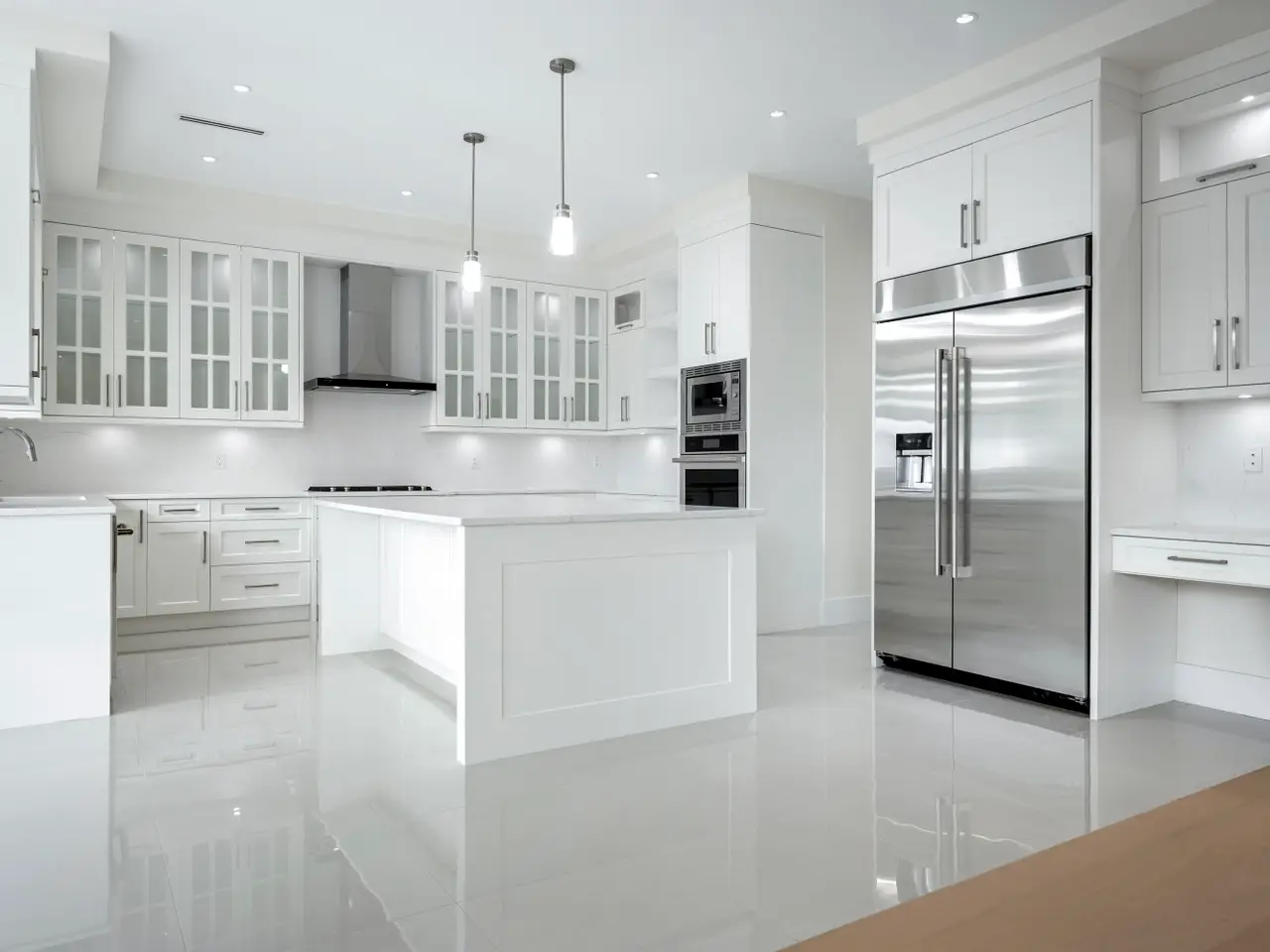 • Solid maple custom cabinets