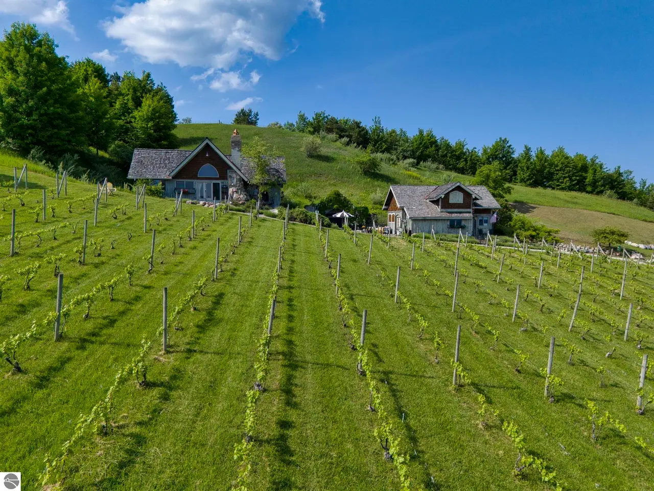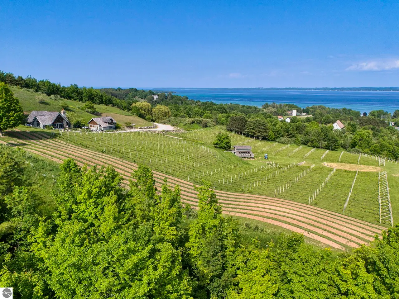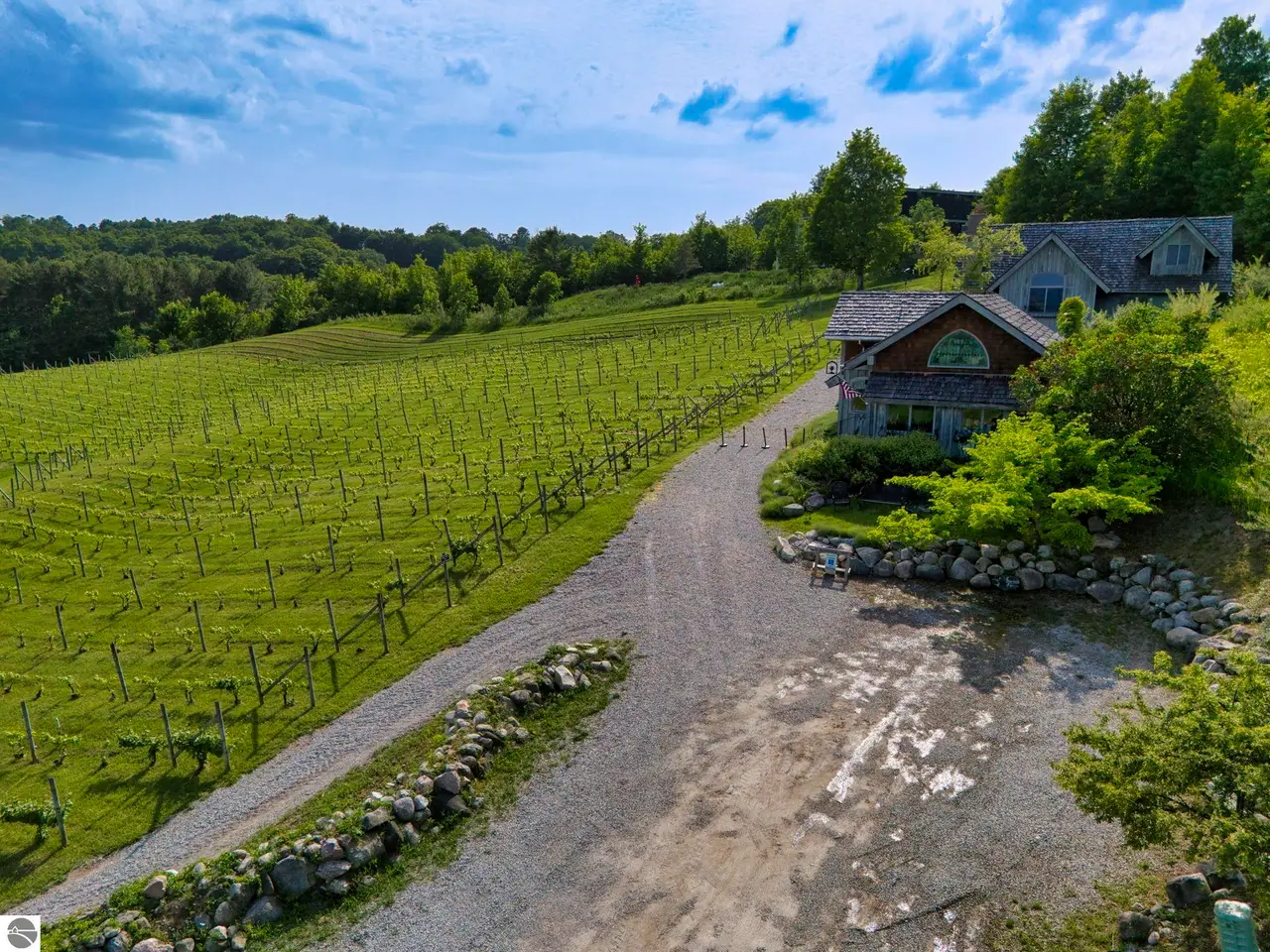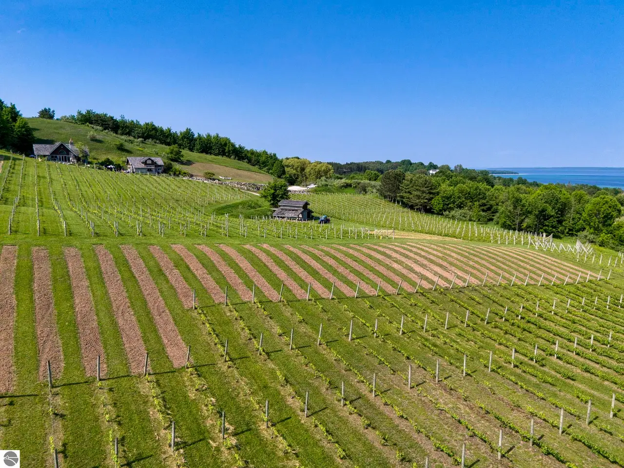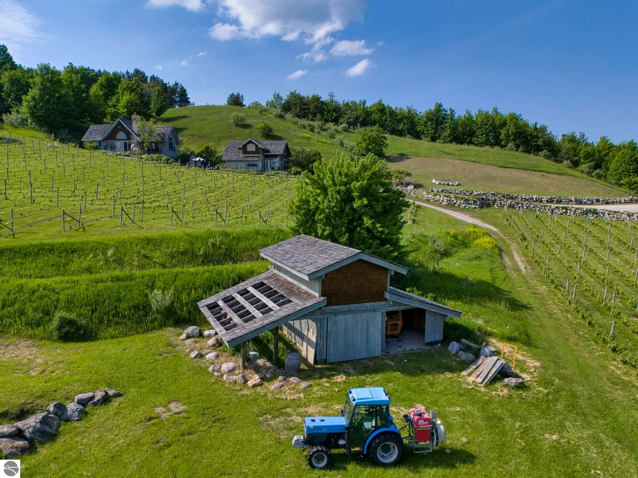 One of a kind property with the most incredible views over West Grand Traverse Bay offers many possibilities. Currently the home to Willow Winery & Vineyard - the 5th oldest working vineyard & winery on the Leelanau Peninsula, named the #2 wine region by USA today (next to Napa). This well-established, turn-key property includes a French Provencal villa designed to capture the up close water and vineyard views. The 11.45 acre site makes it the most approachable & manageable for the novice wine maker, the experienced or for existing wineries to add this magnificent site to their assets with a tasting room and residence. The villa features classic board-and-batten siding, a cedar shake roof, fireplace and imported cathedral doors from France that open into the primary suite. The impressive stone landscaping has a timeless, century-old character that blends perfectly into the rolling vineyard backdrop. The lower level of the villa is fully outfitted for winery production. A separate winery tasting room, built in the same architectural style, includes a indoor and outdoor guest seating, a bar area, retail space, 1/2 bath and storage above. A two-level equipment barn offers ample space for storage. Currently, the villa operates as a successful Airbnb rental, providing an additional revenue stream. Options to use as a private residence, continued short-term rental or full-time winery operation, Willow offers flexibility, history and unmatched charm in the heart of Leelanau Wine Country. Included in price is Wine Inventory. Shown by appointment only.