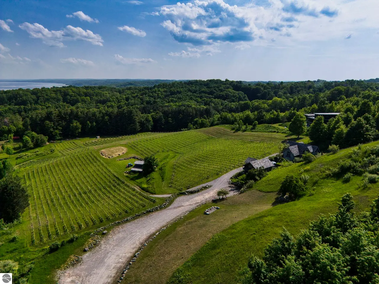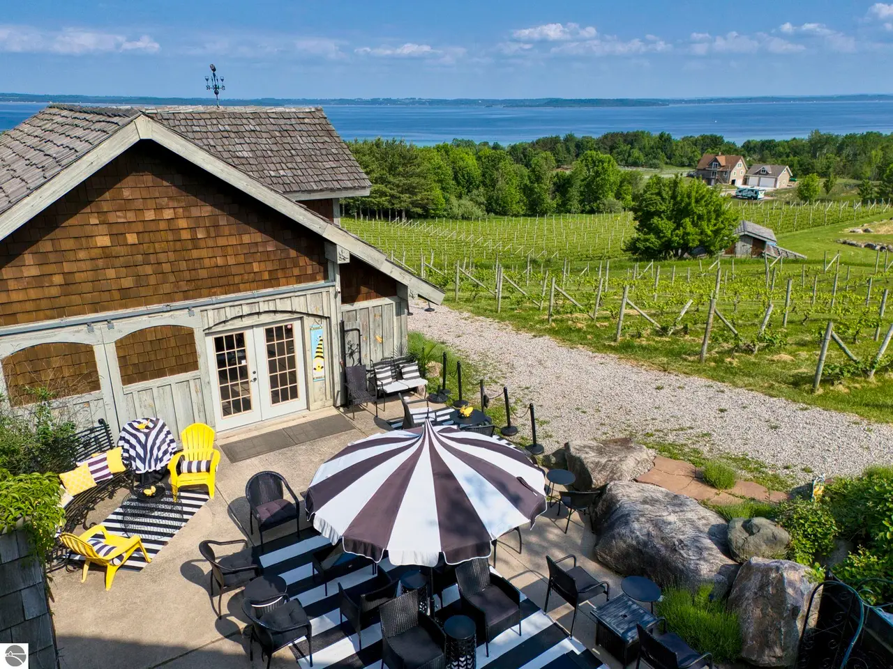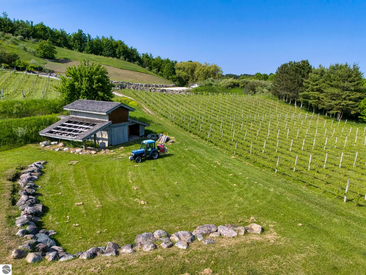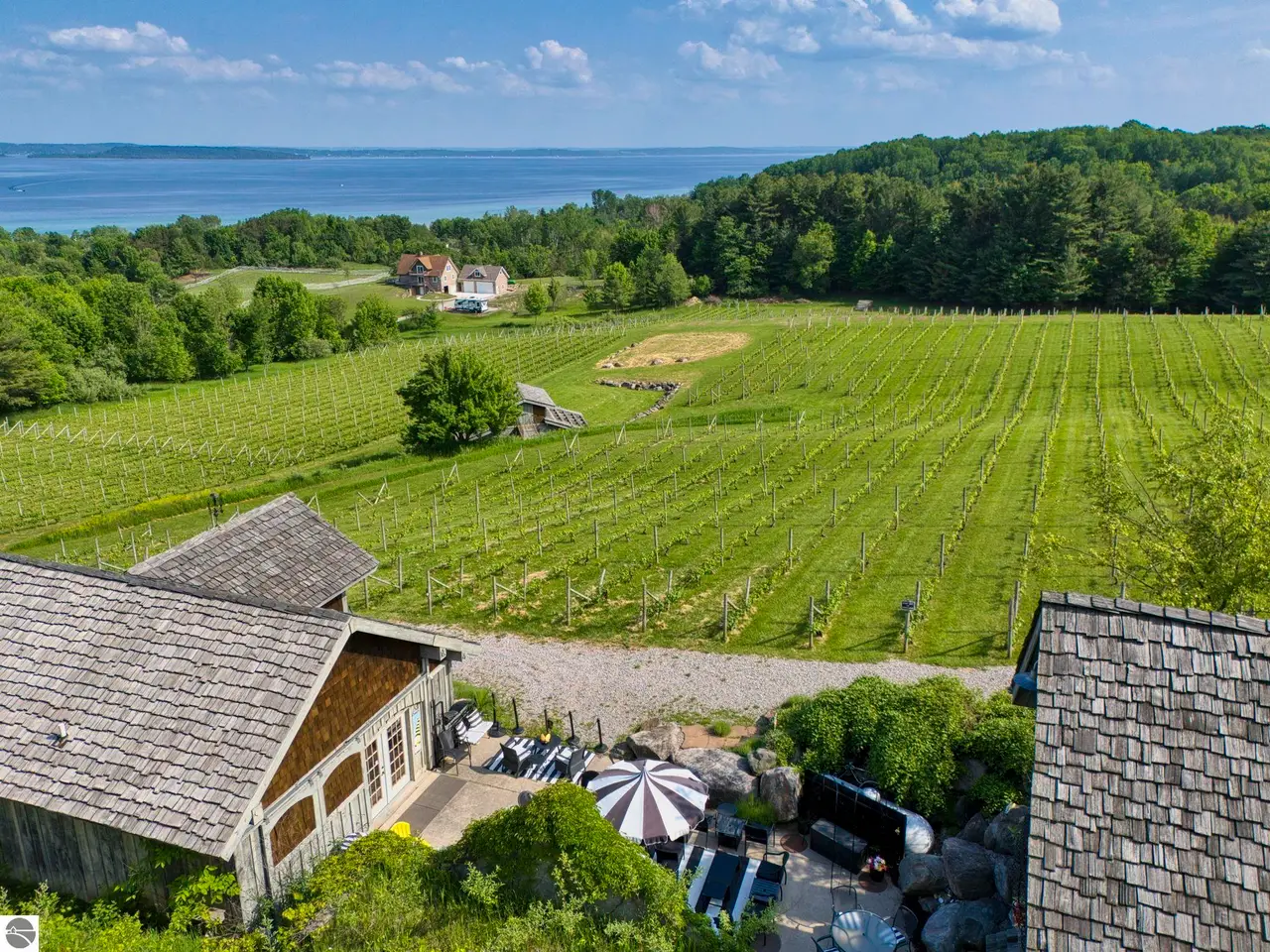One of a kind property with the most incredible views over West Grand Traverse Bay offers many possibilities. Currently the home to Willow Winery & Vineyard - the 5th oldest working vineyard & winery on the Leelanau Peninsula, named the #2 wine region by USA today (next to Napa). This well-established, turn-key property includes a French Provencal villa designed to capture the up close water and vineyard views. The 11.45 acre site makes it the most approachable & manageable for the novice wine maker, the experienced or for existing wineries to add this magnificent site to their assets with a tasting room and residence. The villa features classic board-and-batten siding, a cedar shake roof, fireplace and imported cathedral doors from France that open into the primary suite. The impressive stone landscaping has a timeless, century-old character that blends perfectly into the rolling vineyard backdrop. The lower level of the villa is fully outfitted for winery production. A separate winery tasting room, built in the same architectural style, includes a indoor and outdoor guest seating, a bar area, retail space, 1/2 bath and storage above. A two-level equipment barn offers ample space for storage. Currently, the villa operates as a successful Airbnb rental, providing an additional revenue stream. Options to use as a private residence, continued short-term rental or full-time winery operation, Willow offers flexibility, history and unmatched charm in the heart of Leelanau Wine Country. Included in price is Wine Inventory. Shown by appointment only.