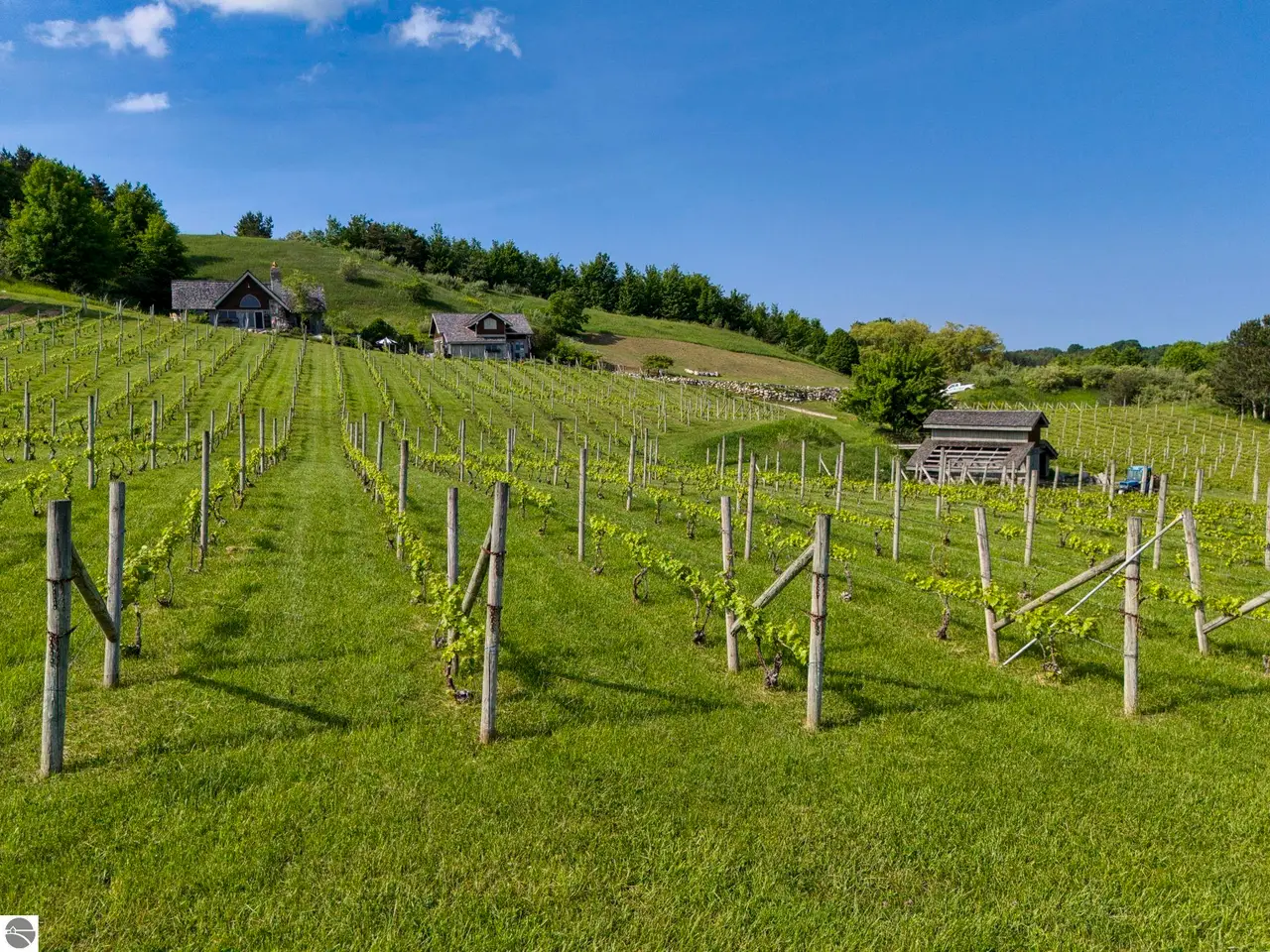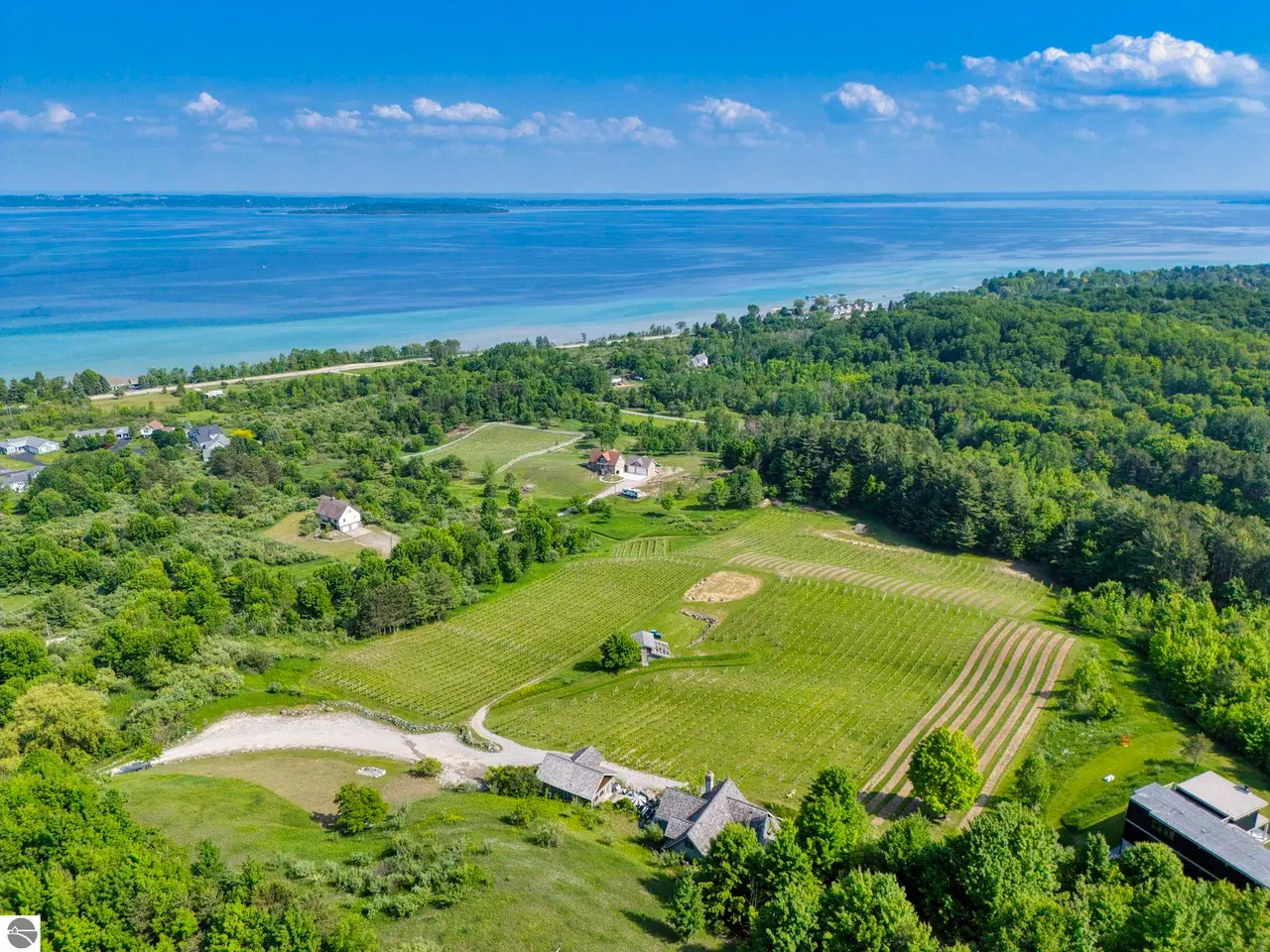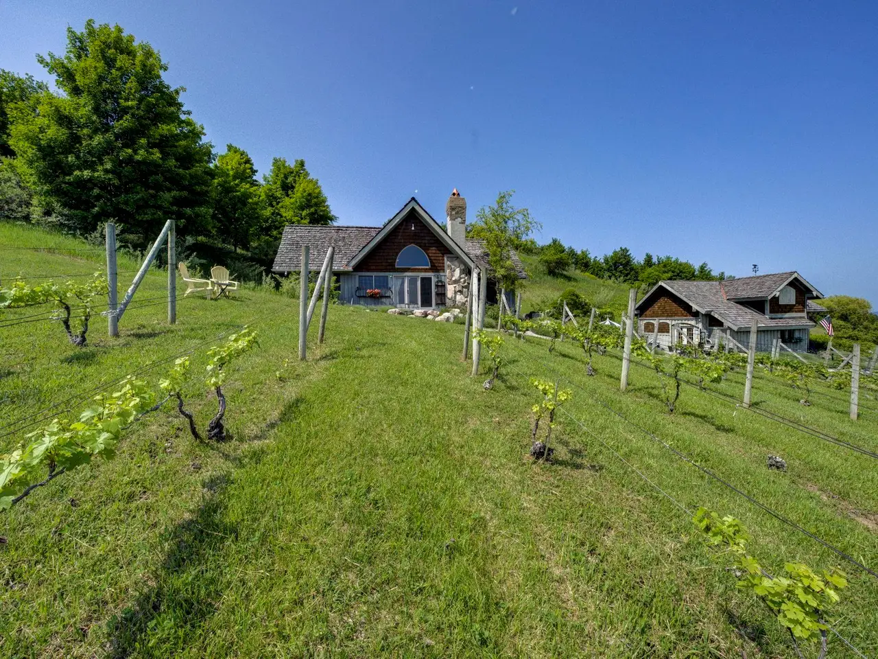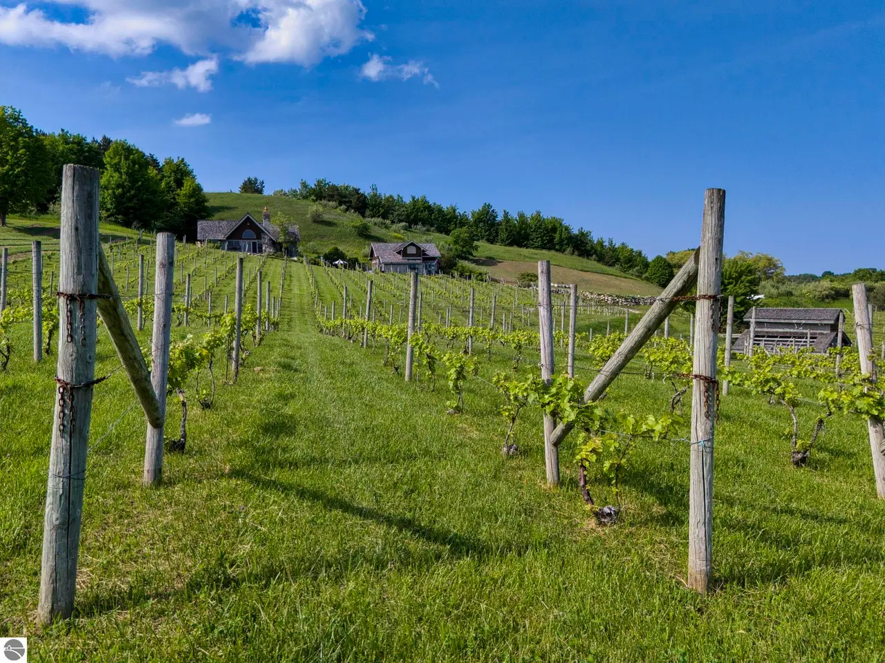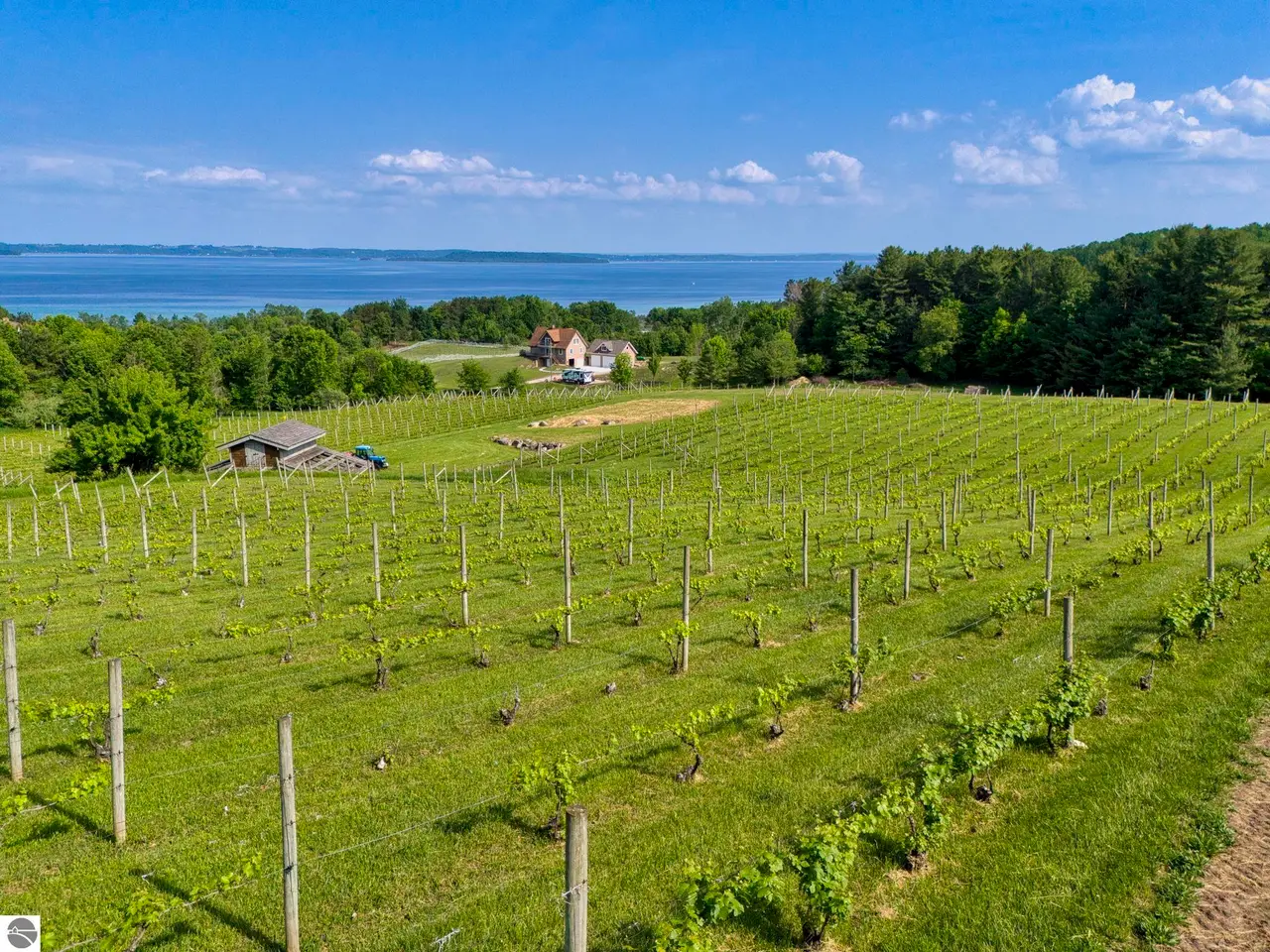 One of a kind property with the most incredible views over West Grand Traverse Bay offers many possibilities. Currently the home to Willow Winery & Vineyard - the 5th oldest working vineyard & winery on the Leelanau Peninsula, named the #2 wine region by USA today (next to Napa). This well-established, turn-key property includes a French Provencal villa designed to capture the up close water and vineyard views. The 11.45 acre site makes it the most approachable & manageable for the novice wine maker, the experienced or for existing wineries to add this magnificent site to their assets with a tasting room and residence. The villa features classic board-and-batten siding, a cedar shake roof, fireplace and imported cathedral doors from France that open into the primary suite. The impressive stone landscaping has a timeless, century-old character that blends perfectly into the rolling vineyard backdrop. The lower level of the villa is fully outfitted for winery production. A separate winery tasting room, built in the same architectural style, includes a indoor and outdoor guest seating, a bar area, retail space, 1/2 bath and storage above. A two-level equipment barn offers ample space for storage. Currently, the villa operates as a successful Airbnb rental, providing an additional revenue stream. Options to use as a private residence, continued short-term rental or full-time winery operation, Willow offers flexibility, history and unmatched charm in the heart of Leelanau Wine Country. Included in price is Wine Inventory. Shown by appointment only.