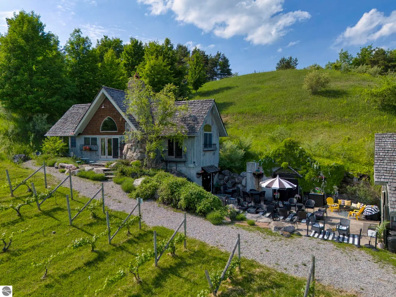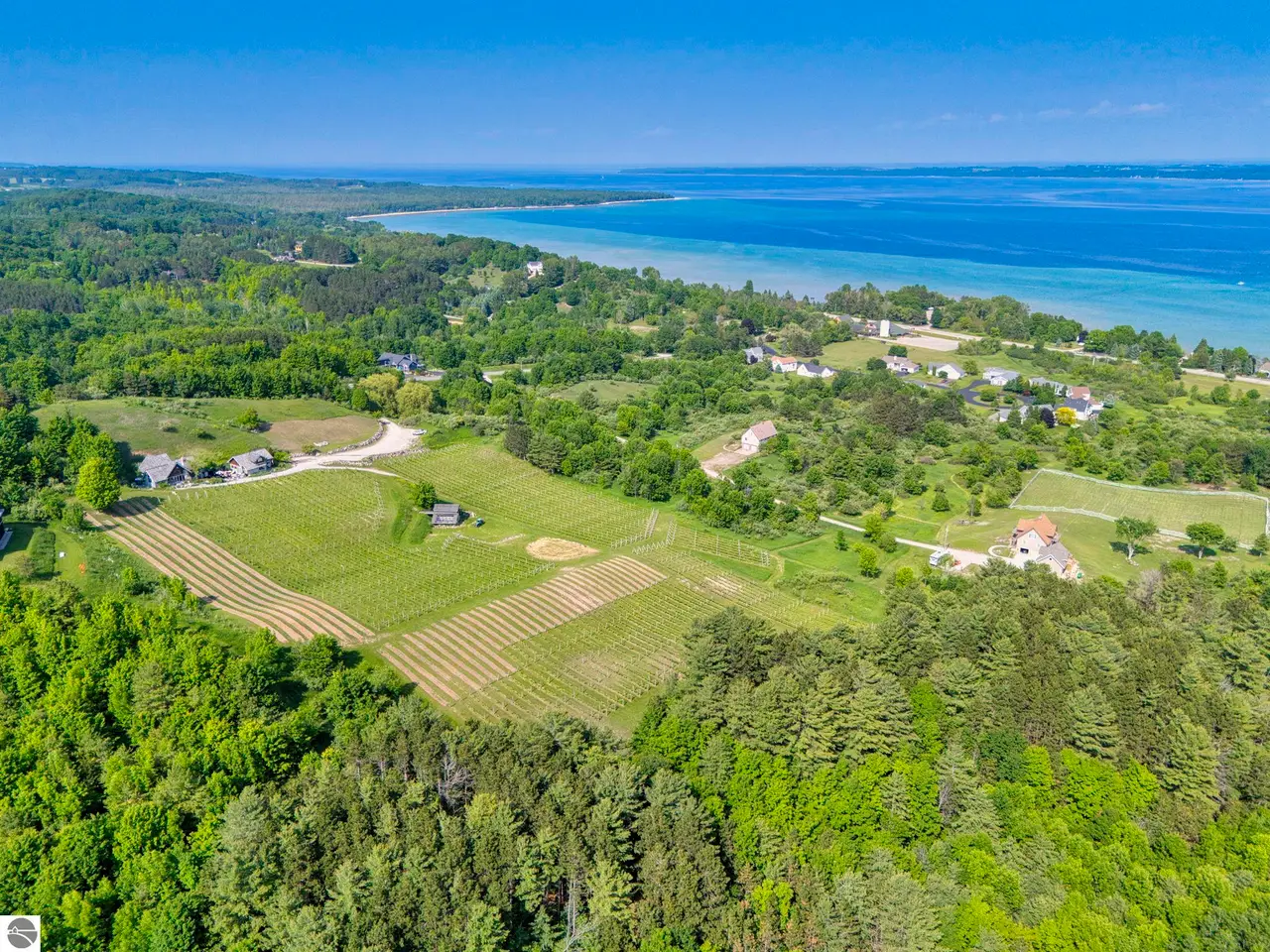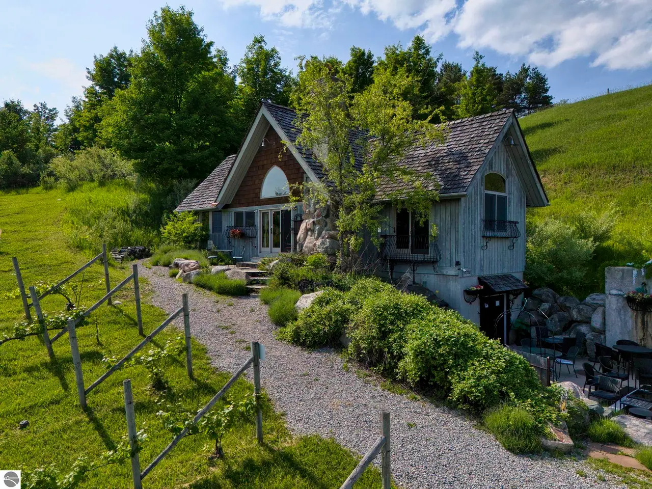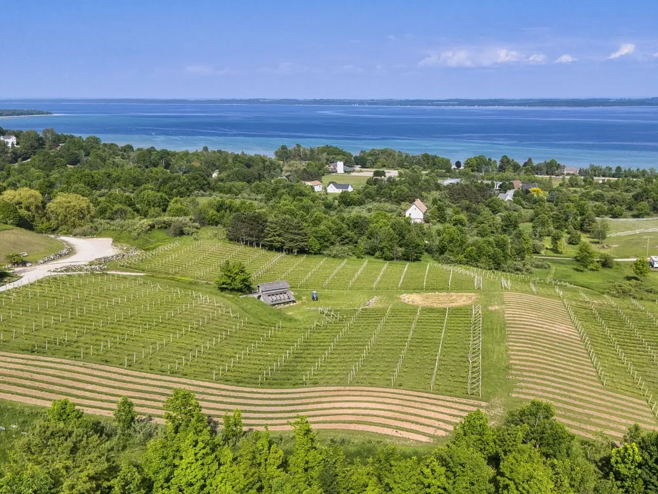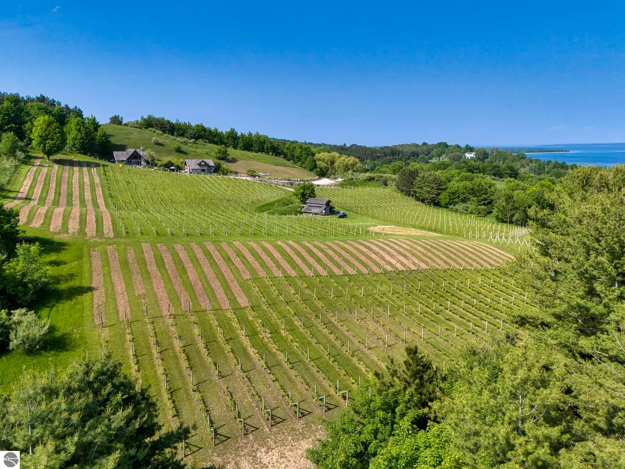 One of a kind property with the most incredible views over West Grand Traverse Bay offers many possibilities. Currently the home to Willow Winery & Vineyard - the 5th oldest working vineyard & winery on the Leelanau Peninsula, named the #2 wine region by USA today (next to Napa). This well-established, turn-key property includes a French Provencal villa designed to capture the up close water and vineyard views. The 11.45 acre site makes it the most approachable & manageable for the novice wine maker, the experienced or for existing wineries to add this magnificent site to their assets with a tasting room and residence. The villa features classic board-and-batten siding, a cedar shake roof, fireplace and imported cathedral doors from France that open into the primary suite. The impressive stone landscaping has a timeless, century-old character that blends perfectly into the rolling vineyard backdrop. The lower level of the villa is fully outfitted for winery production. A separate winery tasting room, built in the same architectural style, includes a indoor and outdoor guest seating, a bar area, retail space, 1/2 bath and storage above. A two-level equipment barn offers ample space for storage. Currently, the villa operates as a successful Airbnb rental, providing an additional revenue stream. Options to use as a private residence, continued short-term rental or full-time winery operation, Willow offers flexibility, history and unmatched charm in the heart of Leelanau Wine Country. Included in price is Wine Inventory. Shown by appointment only.