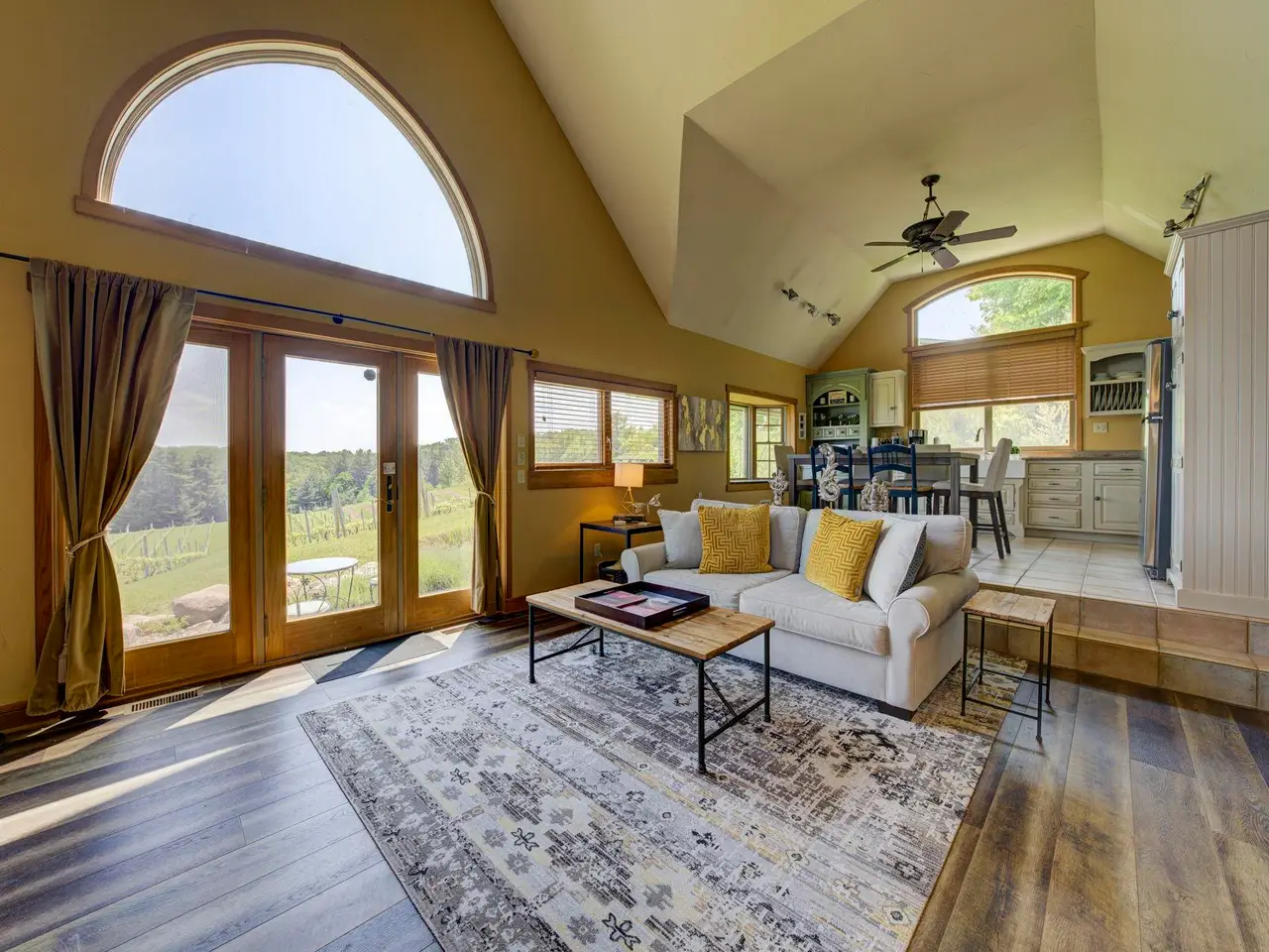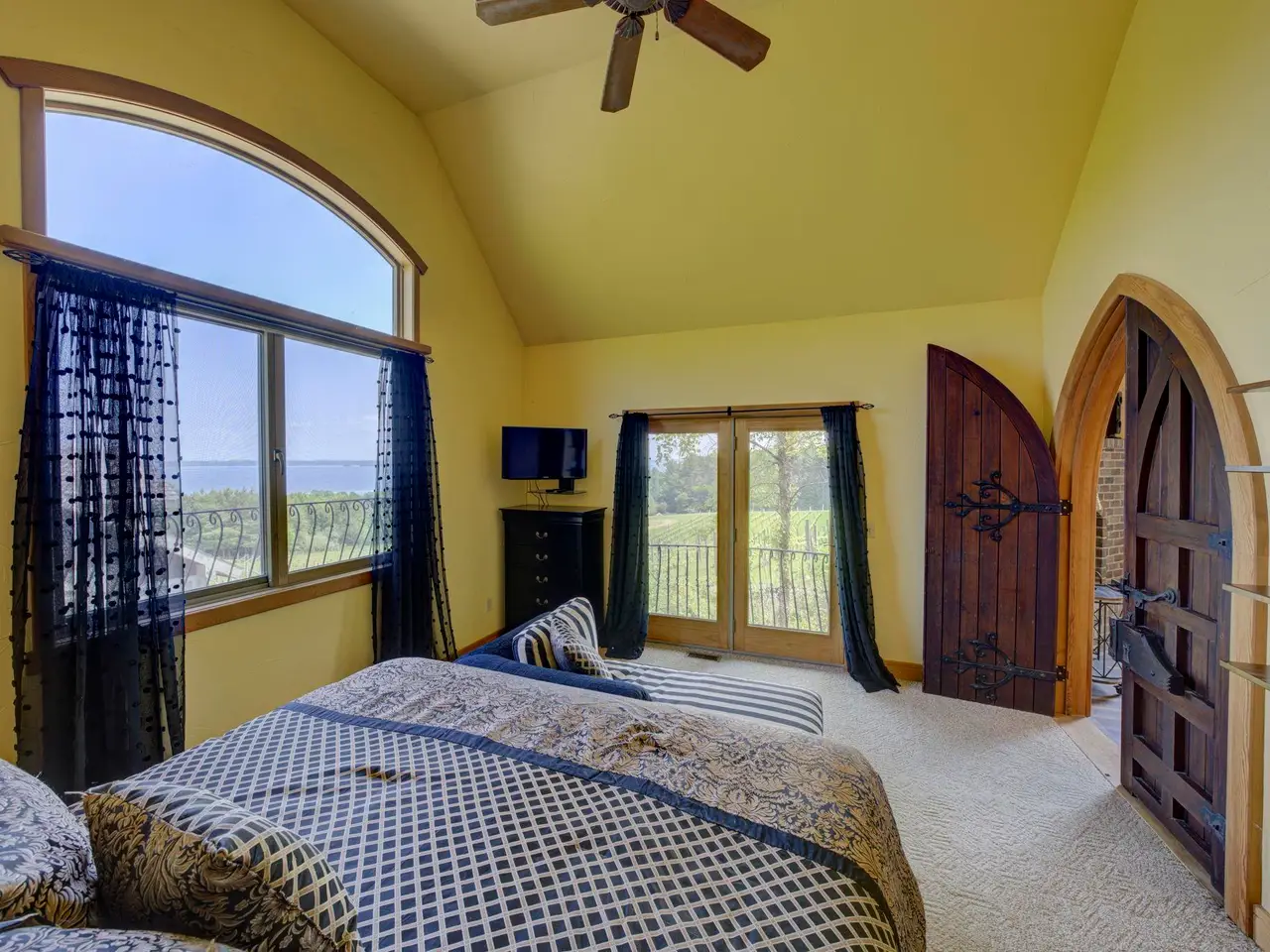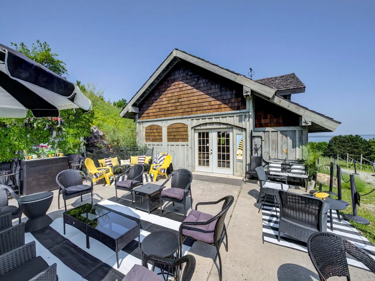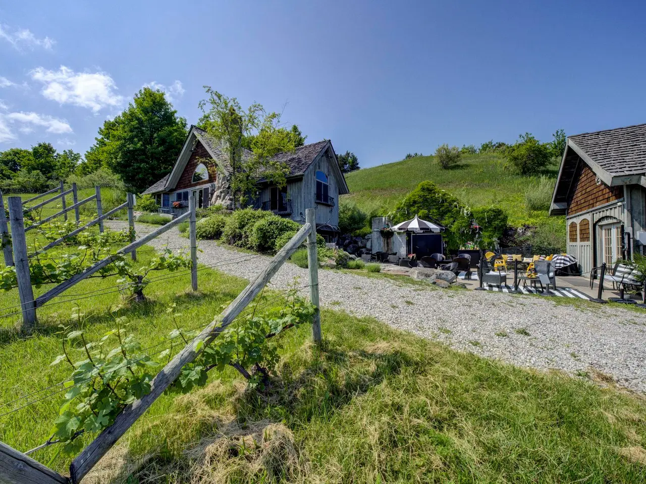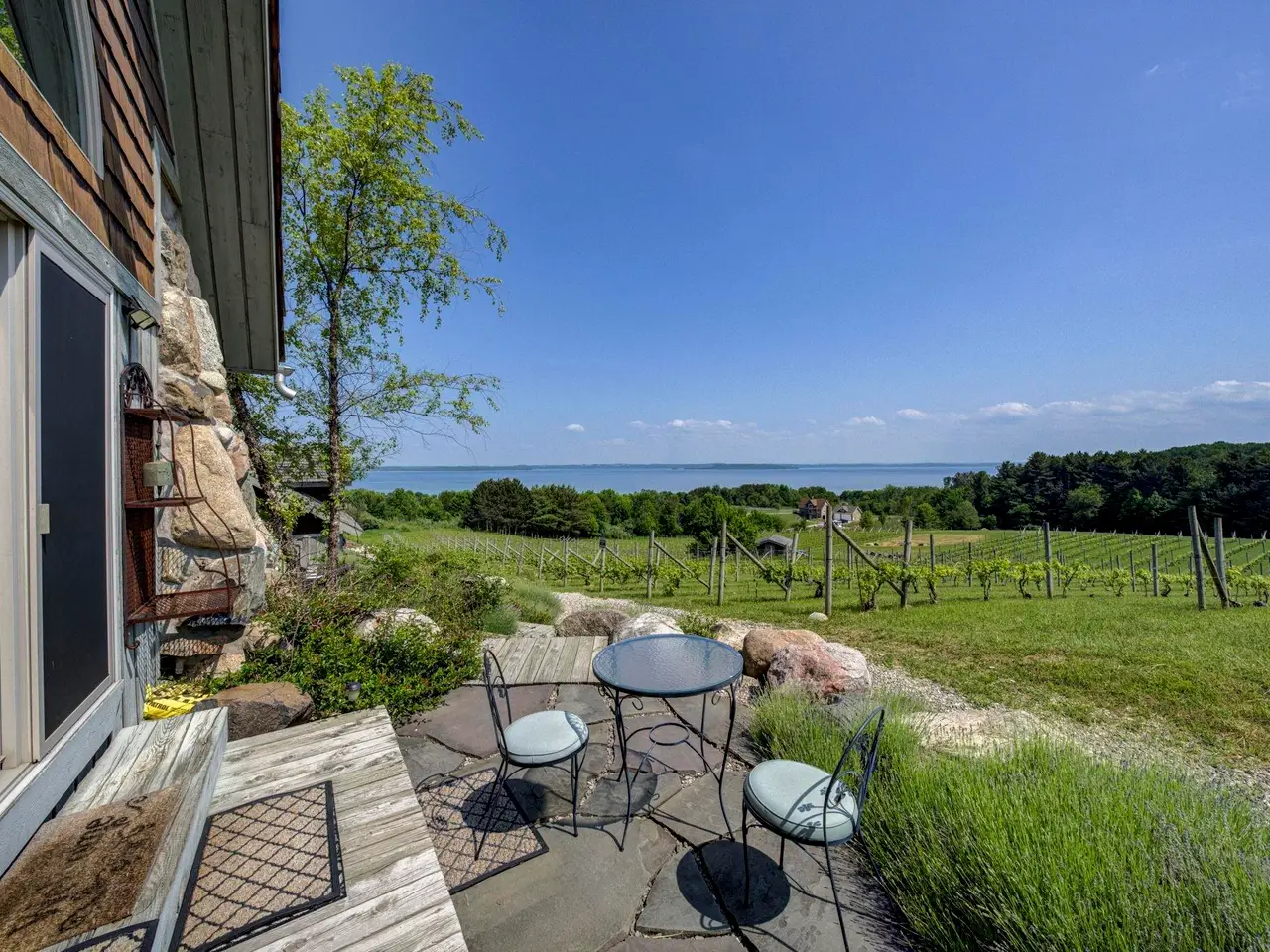 One of a kind property with the most incredible views over West Grand Traverse Bay offers many possibilities. Currently the home to Willow Winery & Vineyard - the 5th oldest working vineyard & winery on the Leelanau Peninsula, named the #2 wine region by USA today (next to Napa). This well-established, turn-key property includes a French Provencal villa designed to capture the up close water and vineyard views. The 11.45 acre site makes it the most approachable & manageable for the novice wine maker, the experienced or for existing wineries to add this magnificent site to their assets with a tasting room and residence. The villa features classic board-and-batten siding, a cedar shake roof, fireplace and imported cathedral doors from France that open into the primary suite. The impressive stone landscaping has a timeless, century-old character that blends perfectly into the rolling vineyard backdrop. The lower level of the villa is fully outfitted for winery production. A separate winery tasting room, built in the same architectural style, includes a indoor and outdoor guest seating, a bar area, retail space, 1/2 bath and storage above. A two-level equipment barn offers ample space for storage. Currently, the villa operates as a successful Airbnb rental, providing an additional revenue stream. Options to use as a private residence, continued short-term rental or full-time winery operation, Willow offers flexibility, history and unmatched charm in the heart of Leelanau Wine Country. Included in price is Wine Inventory. Shown by appointment only.