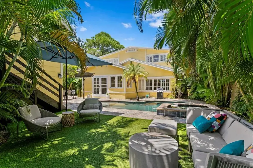 Introducing one of Hyde Park’s most remarkable homes! This beautiful Craftsman-style bungalow in Historic Hyde Park North blends timeless architectural character with more than $200,000 of carefully selected upgrades. The main home offers four bedrooms, three full baths, and 2,564 square feet, while the detached guest house provides two bedrooms, one bath, and 672 square feet of independent living space—ideal for extended family, long-term guests, or a private retreat. A wide front porch sets the tone for what’s inside. The living room welcomes you with original hardwood floors, French doors, custom built-ins, and a beautiful white brick fireplace that anchors the space with warmth and charm. The flow continues into the dining room and chef’s kitchen, which pairs quartz countertops and stainless steel appliances with thoughtful upgrades like double wine refrigerators and a built-in Miele coffee maker. A new dishwasher (2023) and whole-home water softener and filtration system further elevate convenience and comfort. The main-level primary suite is a private sanctuary, offering a potential sitting area, spacious walk-in closet, and a spa-style bath renovated in 2023 with dual vanities and high-end finishes. Also on the first floor, a dedicated office that doubles as a fourth bedroom sits adjacent to a fully renovated guest bath, creating the perfect setup for hosting guests or multigenerational living. Upstairs, two oversized bedrooms with walk-in closets share a renovated double-vanity bath—completing the 2023 transformation of all three full bathrooms in the main home. Everyday life is made easier with two laundry areas, one upstairs and one downstairs just to add another touch of convenience. Behind the scenes, this home is as modern as it is beautiful: a new HVAC system with a 24-volt thermostat adapter and EcoBee Pro WiFi thermostat (2023) ensures efficiency, while an integrated outside air intake improves indoor air quality by creating a positive pressure system. Further updates include attic ventilation (2023), new refrigerant piping and insulation, waterproofing beneath the home (2023), and a sump pump and a French drain installation (2022). Step outside and you’ll find an entertainment-ready backyard retreat. A custom pergola (2023) frames the outdoor living area, leading to a heated, in-ground saltwater pool with a new motor and filter (2024). Surrounded by lush landscaping, turf play areas, and a paver patio, the backyard is designed for everything from weekend pool parties to quiet evenings dining al fresco. The guest house above the garage functions as a complete residence, with a living room, full kitchen, two bedrooms, and a full bath—perfect for guests, in-laws, a rental opportunity, or a private workspace. With a resurfaced driveway (2022), the durability of a 2016 metal roof, and extensive recent updates, this home offers peace of mind as well as beauty. Just steps from Hyde Park Village’s shops and dining, the waterfront charm of Bayshore Boulevard, and located in the coveted Plant High School district, this home delivers history, luxury, and location in one. A rare Hyde Park gem where every detail has been thoughtfully elevated.