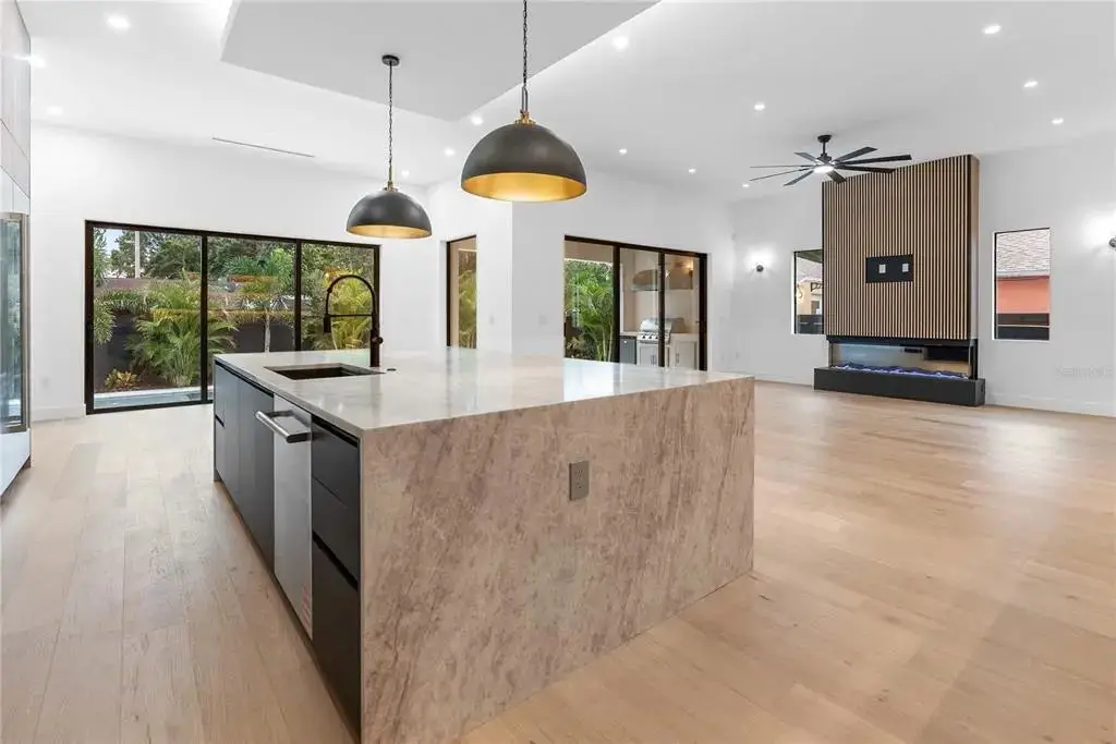 UNDER CONSTRUCTION. Anticipated completion 10/31/2025. Welcome to this design-forward masterpiece where farmhouse charm meets sleek contemporary design in the heart of Midtown. This brand new 5-bedroom, 5.5-bath home spans 3,420 square feet of elevated living, expertly crafted with luxury finishes and thoughtful functionality throughout — and best of all, not located in a flood zone. Inside, smooth Level 4 walls and engineered oak hardwood floors create a refined, minimalist backdrop. The open-concept great room features a statement fireplace, flanked by designer sconces and bathed in natural light. The chef’s kitchen stuns with fluted black paneling on the island, custom white and black oak cabinetry, and striking pendant lighting — all seamlessly connected to the bar and pantry for effortless entertaining. Retreat upstairs to the second-floor primary suite, where spa-like serenity awaits with a freestanding tub, dual rain showerheads, a chandelier over the tub, and a white oak vanity layout accented by bold black plumbing fixtures.