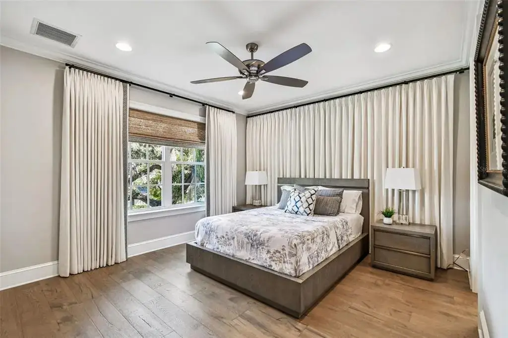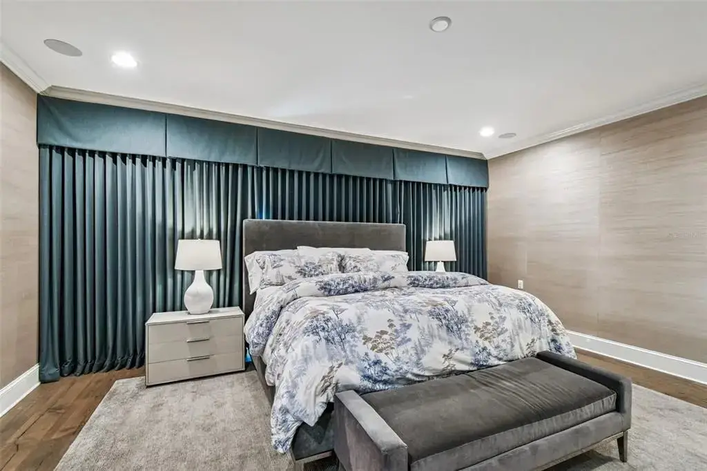 Automated black-out curtains in master suite