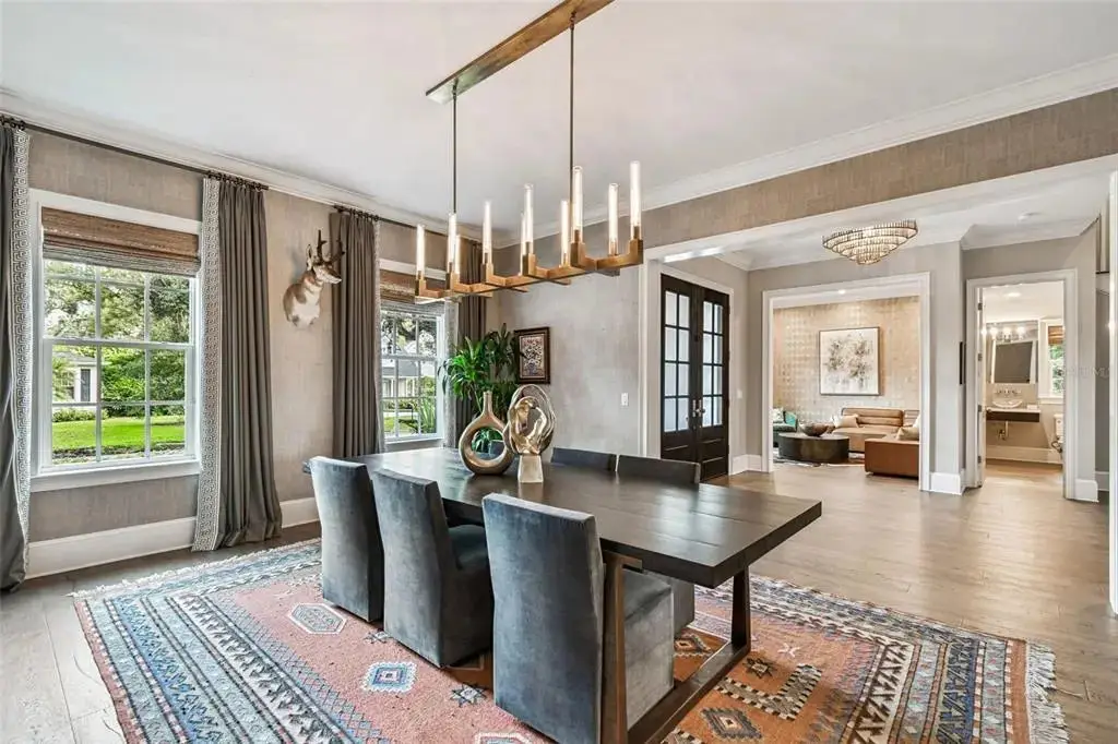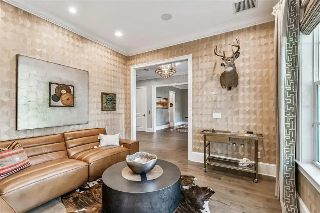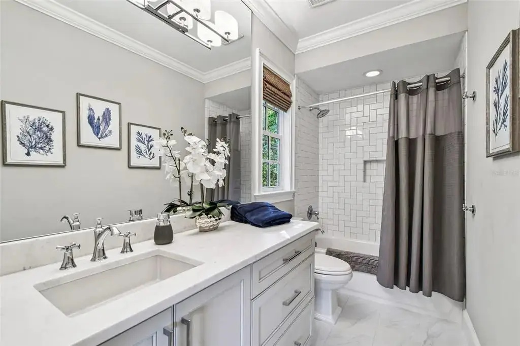 Welcome to this stunning, sophisticated and impeccably maintained South Tampa home, custom-built by Bayfair. Set on almost half an acre, this exquisite, one-of-a-kind property offers a rare, tranquil retreat with its Audubon-like pond setting replete with natural beauty. Step inside, and you'll be struck by the elegance of this home’s artfully-designed, light-filled spaces, starting with a spacious foyer, library/study to the left and a formal dining room to the right with ample space for entertaining. The open living/kitchen floor plan boasts a warm, inviting atmosphere and is brimming with both functional and aesthetic details. Highlights include an all-glass, fully-retractable Nano-wall that seamlessly expands interior living space into the exterior screened-in lanai; coffered ceilings; stone wall accents and gas fireplaces in both interior and exterior living spaces; climate-controlled 500+ bottle wine cellar, wet bar with ice maker and much, much more. The eat-in kitchen is has all the upgrades including top-of-the-line Thermador appliances, custom wood cabinetry and beautiful marble counters – plus incredible light and views from the large windows overlooking the pool and pond and a large walk-in pantry. Downstairs also boasts a spacious office/playroom with even more gorgeous views of the pond and mud-room area; two half-baths (one of which comes with a full size washer & drier) and hidden media closet to access your smart-home Control4 powered A/V and security systems. Choose either elevator or a beautiful wooden stairway to discover the 2nd floor, on which you'll find the master suite, complete with automated black-out curtains, a luxurious garden tub, large walk-in shower, dual sink vanities, and 2 oversized walk-in custom closets. Three additional en-suite bedrooms provide plenty of space for family or guests. With an additional full-size laundry room + plentiful storage closets (and storage room off master suite) – this home truly ‘has it all’. Step outside, and discover a true oasis from the screened-in, back patio / pool area – spacious enough for grilling and entertaining or simply perfect for a peaceful evening while overlooking the magnificent pond. Whether you cool off in the pool or spa during summers, or cozy up to the fire and built-in heaters during winter – you’ll be able to enjoy your exterior space and views year-round. This luxurious South Tampa gem simply has it all - a perfect blend of elegance, comfort, and convenience. Additional upgrades include a full-house powered natural gas home generator, custom blinds and window treatments, beautiful textured wall coverings, and so much more. Book your private tour today and experience it for yourself!