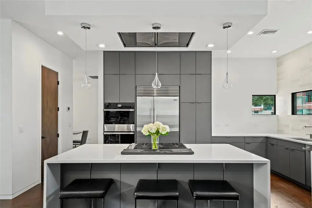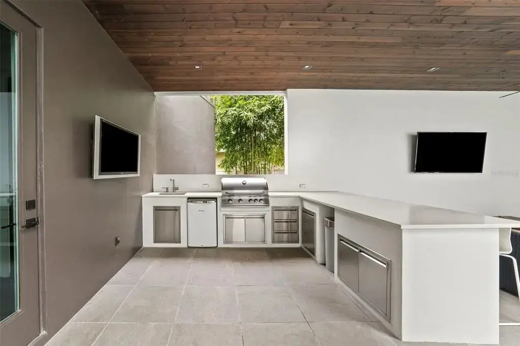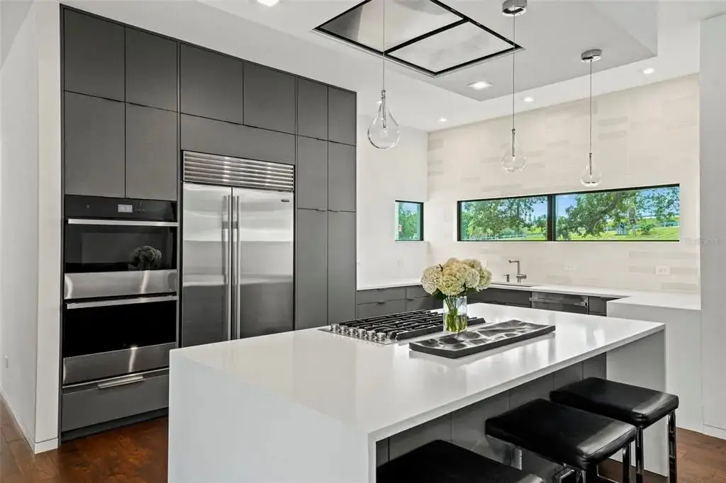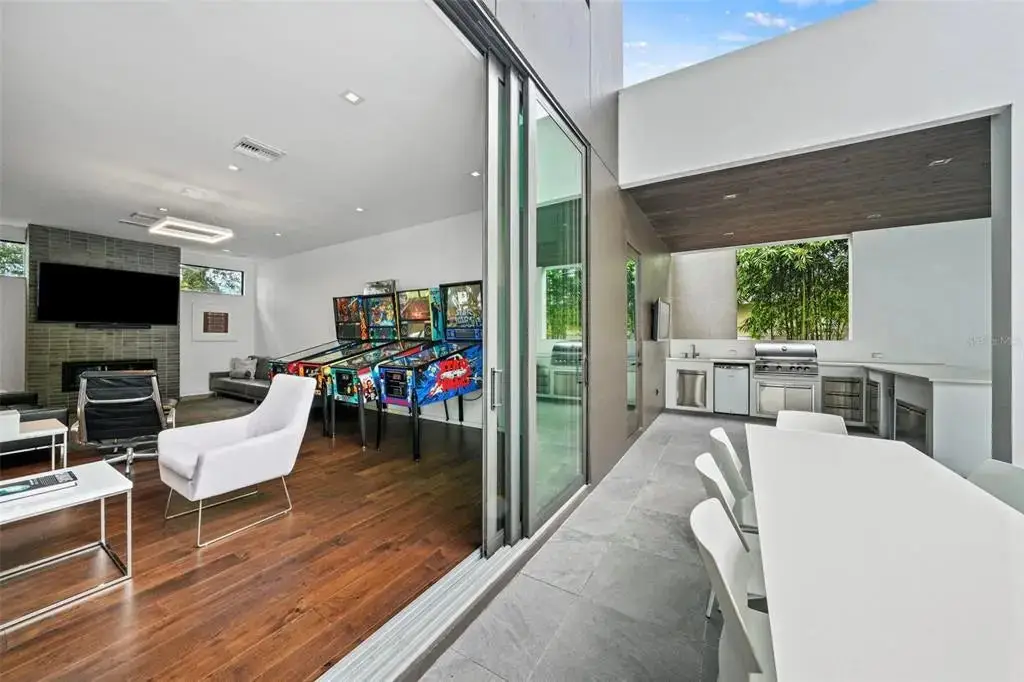 This stunning residence stands just steps from the highly coveted Waverly Park Circle. It’s distinguished by its exceptional quality and modern architecture. Thanks to two-story block construction, level 5 drywall application, sand-smooth stucco, and impact-resistant windows and doors, the home is not only visually stunning but also meticulously crafted. Built as a personal residence by the architect and builder of custom homes, Domain Development (D2), every detail has been artfully selected. Designed with gatherings in mind, the home features a formal dining room with a custom table for fabulous dinner parties and a spacious family room perfect for fun holiday celebrations. When the festivities move outside, sliding open the wall of glass doors transforms the indoor living space into an outdoor sanctuary. Guests can enjoy the saltwater pool and spa, gather at the bar beside the fully equipped outdoor kitchen, or relax by the fire in the outdoor living area. Alfresco dining is easily accommodated with a dedicated table. Back inside, the kitchen will impress even the most discerning chef. Features include a Jenn air gas cooktop, dual built-in ovens, a Subzero refrigerator, and large island with extra storage and seating. The sleek, modern design of the custom cabinets and counters is easy to maintain, thanks to the walk-in working pantry with appliance counter and shelving. Other benefits to the home include a downstairs primary bedroom suite with two walk-in closets. The bathroom features a floating dual sink vanity and walk-in shower. A private study and powder bath complete the first floor. Upstairs, find a reading loft flush with an abundance of natural light. There are four additional secondary bedrooms and three bathrooms. Additionally, there is an expansive laundry and bonus room. Additional highlights include a temperature-controlled wine room with space for 333 bottles, a mudroom with plumbing for a future bath, an oversized two-car garage, and pre-wiring for a generator. Convenient to downtown Tampa, Bayshore, and A rated schools. Also, it's in an X FLOOD ZONE with NO flood insurance requirements. The only challenge with buying this remarkable home is deciding how best to enjoy all it has to offer! Schedule your showing today!