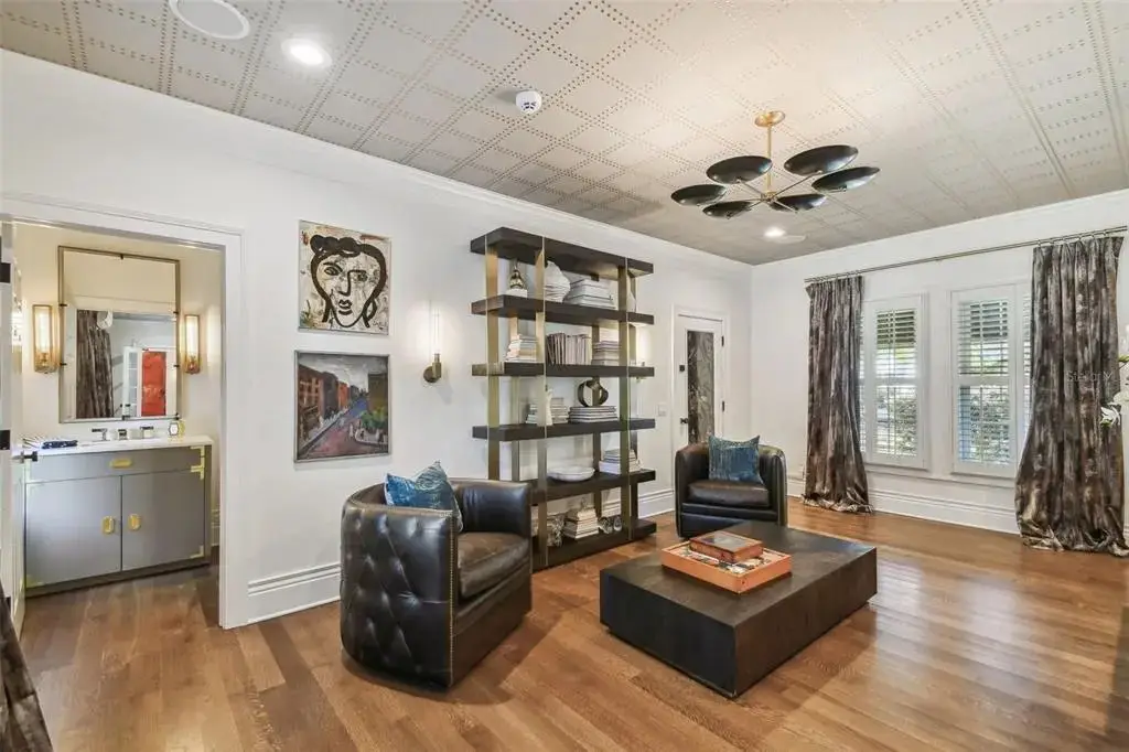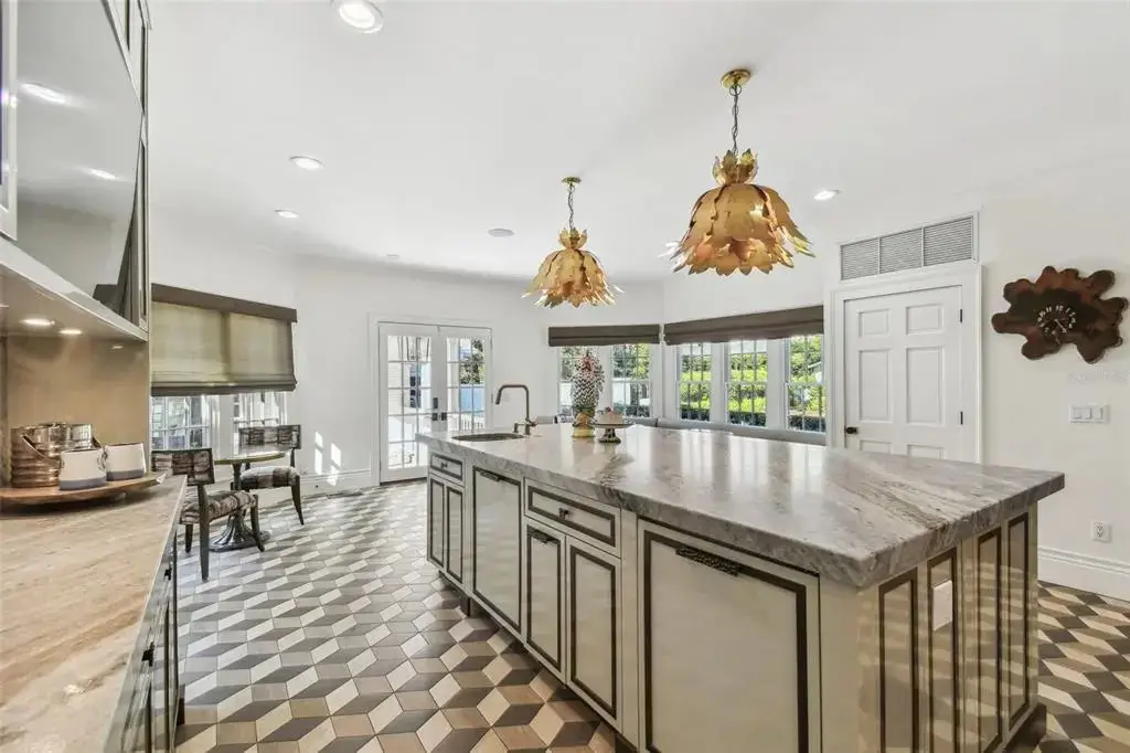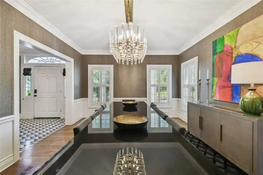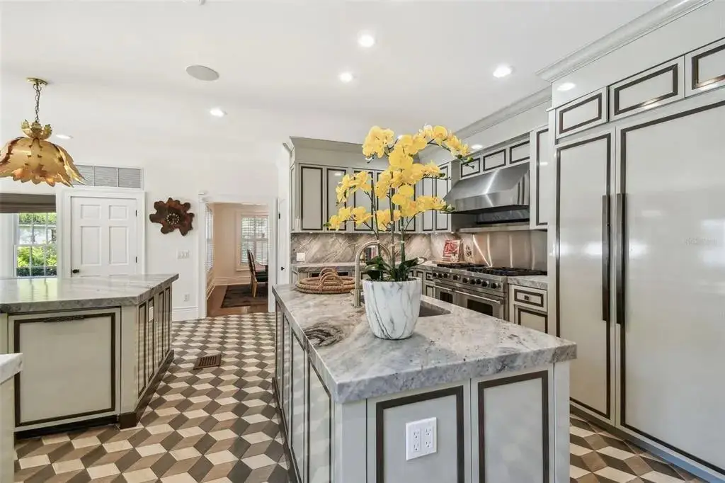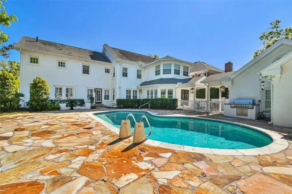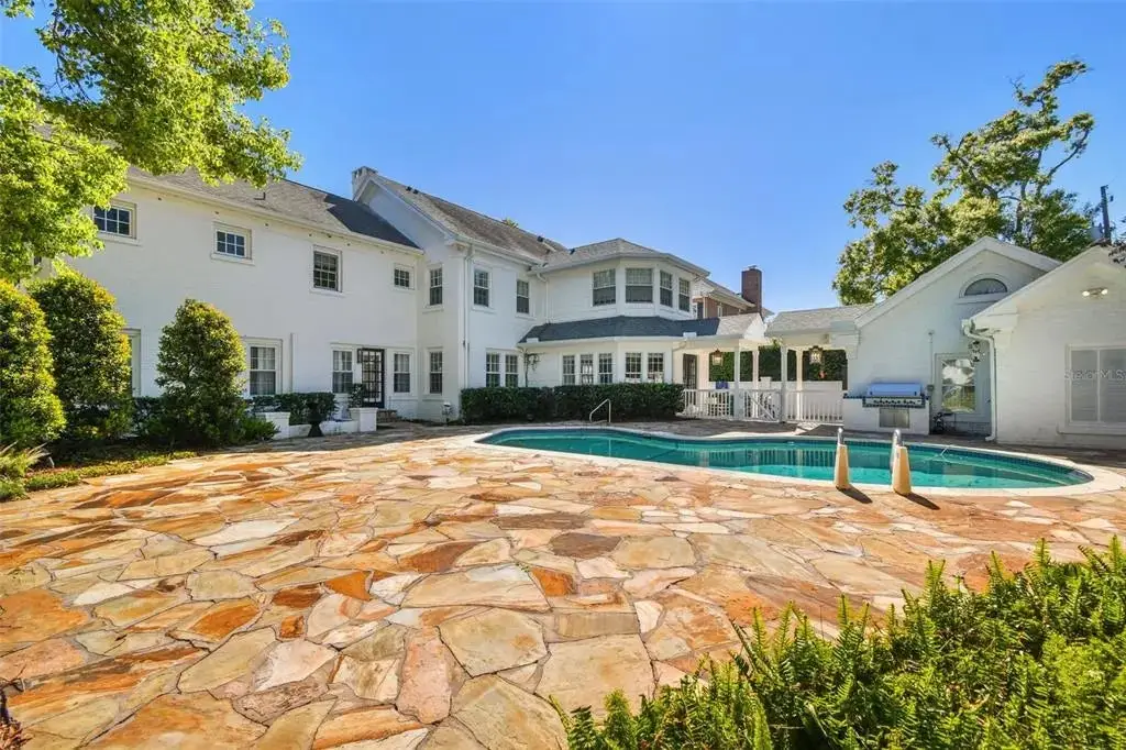 This exquisite home, situated on 4/10 of an acre in Golfview, seamlessly blends timeless elegance with modern luxury. The interior showcases quarter-sawn oak hardwood flooring throughout, paired with beautiful custom millwork and crown molding. The gourmet kitchen is a culinary masterpiece, boasting two islands, marble countertops, custom lacquered cabinetry, a wine cooler, and high-end Viking 48” range, and new Sub-Zero fridge, 2 Bosch dishwashers, with eat-in custom banquet area w/ bistro tables, The property features two living rooms, each with its own fireplace, offering ample space for both relaxation and entertaining, a large formal dining room, a casual breakfast room, along with 2 powder baths and a wine room. The luxurious primary suite is a true retreat, complete with a cozy sitting area, a freestanding soaking tub, and a walk-in shower with dual showerheads. Additionally upstairs there are four spacious bedrooms, 2 with en-suite baths, and 2 sharing a jack and jill bath. The exterior of the home is equally stunning with a circle drive, a grand 2 story front porch, mature lush landscaping, a deep heated pool with gorgeous stone pavers, and a huge yard (lot is 132 ft x 132 ft). There is a storage shed, a playhouse, in addition to a 2 story detached guest house with brick flooring, a living room, sleeping loft, laundry/utility room with double washers and double dryers, and a full pool bath. Features include: a 22KW generator (2019), black and white marble foyer, beautiful seagrass wallpaper, new Emtek door hardware, outdoor grill, Kelly Werstler lighting, ACs 2018, and so much more.