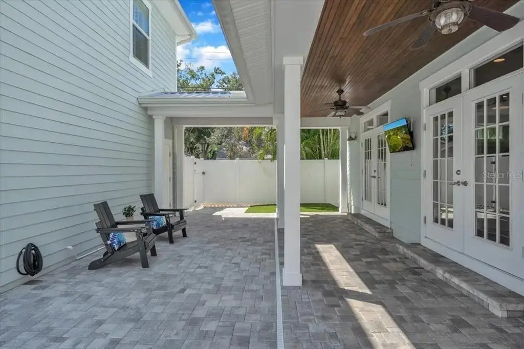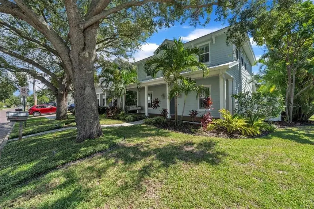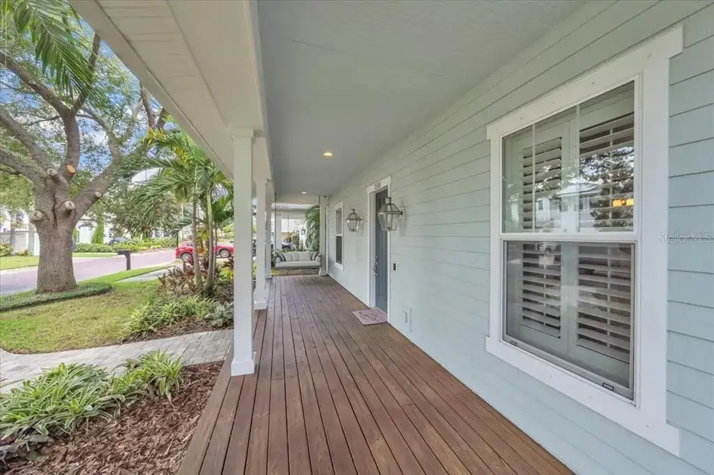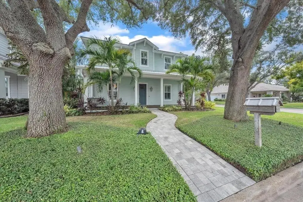 Under contract-accepting backup offers. This timeless Key West Craftsman, built in 2016, sits proudly on a corner lot in the heart of Palma Ceia. With 3,004 sq ft of living space, this home offers an open-concept design, high ceilings, and a detached garage topped by a private guest suite complete with full bath and kitchenette. You'll enjoy peace of mind knowing that this residence sits in flood zone X with no impact from last year's hurricanes. The first floor features a welcoming font porch with Bevolo gas lanterns wood-detailed ceiling, and swing, a flexible office or formal dining room, and a guest suite with private bath and walk-in closet. The spacious living area centers around a gas fireplace with custom built-ins and flows seamlessly into the chef's kitchen, boasting Quartz countertops, 6-burner Wolf gas range, large prep island, wine fridge, and butler's pantry. Upstairs, the Owner's Retreat includes vaulted beadboard ceilings, dual walk-in closets, and a spa-like bath with double vanities and a walk-in shower. Two additional bedrooms share a Jack & Jill bath. The outdoor living area is designed for entertaining, complete with a 10x25 saltwater pool, outdoor kitchen and full pool bath. Additional features include hardwood floors, marble tile in baths, plantation shutters, surround sound with outdoor speakers, camera system, and custom closets. Located in one of South Tampa's most desirable neighborhoods, this home offers a rare combination of craftsmanship, modern upgrades, and indoor-outdoor living.