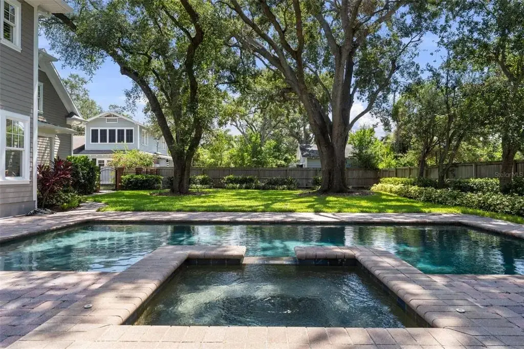 Rare opportunity to own one of the largest lots in New Suburb Beautiful and one of only a handful of homes with a three-car attached garage in the neighborhood. Only one other has sold in the past 20 years offering both features. This quintessential beauty is situated on a double lot measuring 120x138 and is like no other. As you approach the John Sample custom home, look around at the street replete with a gorgeous canopy of trees creating an idyllic setting. Note the sidewalks for evening strolls and sprawling front yards for extended play. Imagine visiting with neighbors on the expansive front porch. This gem was designed to echo the 1920s Southern Colonial architecture reflected in the neighborhood, but with a floor plan appealing to modern families. Upon entry, stop to appreciate the 10’ high ceilings, custom crown molding, wood plantation shutters, and the sightline to the fabulously large back yard. To your right, a stately study with built-ins, powder bath and French doors for added privacy. Just beyond, is a sizable sunroom perfect for cuddling up with a great book or extra play space. To the left of the entry, find the spacious formal dining room, ideal for large dinner parties. An added feature of the space is the fireplace (gas and wood burning) with an antique marble mantle, lovingly restored from the original home on the property. Between the dining room and kitchen find a walk-in pantry and built-in wet bar. Imagine the concoctions your favorite mixologist will create to delight your friends! This home was built for entertaining! The kitchen offers a built-in oven, warming drawer, Viking gas range, Subzero side by side fridge and freezer, Scotsman ice maker, microwave and Bosch dishwasher. Guests will love visiting with the chef while seated at the expansive breakfast bar. The kitchen opens to the living room featuring built-ins and a fireplace that is both wood-burning and gas operated. But what will truly impress, are the abundance of windows looking out on the exceptionally large backyard. Beyond the French doors, find a large hand laid brick porch that wraps along the back of the home. Perfect for lounging, dining, setting up cocktail tables or all the above! Gather around the pool deck, take a dip in the pool, relax in the spa or play in the expansive yard. A separate entrance provides easy access to the pool bath. The oversized mud room offers a stackable washer and dryer for wet towels or sports clothes, storage cabinets, a utility closet and a built-in bench for backpacks and shoes. Upstairs, find the primary bedroom with two walk-in closets. The bathroom features a dual sink vanity, a garden tub and walk in shower. Bedrooms two and three, have an extended Jack and Jill bathroom with separate vanities and toilets and a private bathtub in between. Bedrooms four and five each have their own full baths. There is also a great bonus room with closets that could be used as media room, gym or sixth bedroom. The laundry room is enviable with a sink, extra cabinets and counter space. Other features of the home include a long driveway for extra parking, GarageTek storage system, tankless gas water heater, walkable attic with installed flooring, newer roof (2022), and termite warranty. It is convenient to downtown Tampa, A-rated schools (Mitchell, Wilson and Plant), Howard Avenue, Bayshore Boulevard, and Hyde Park Village. X flood zone and no flood insurance required thanks to the neighborhood's higher elevation.