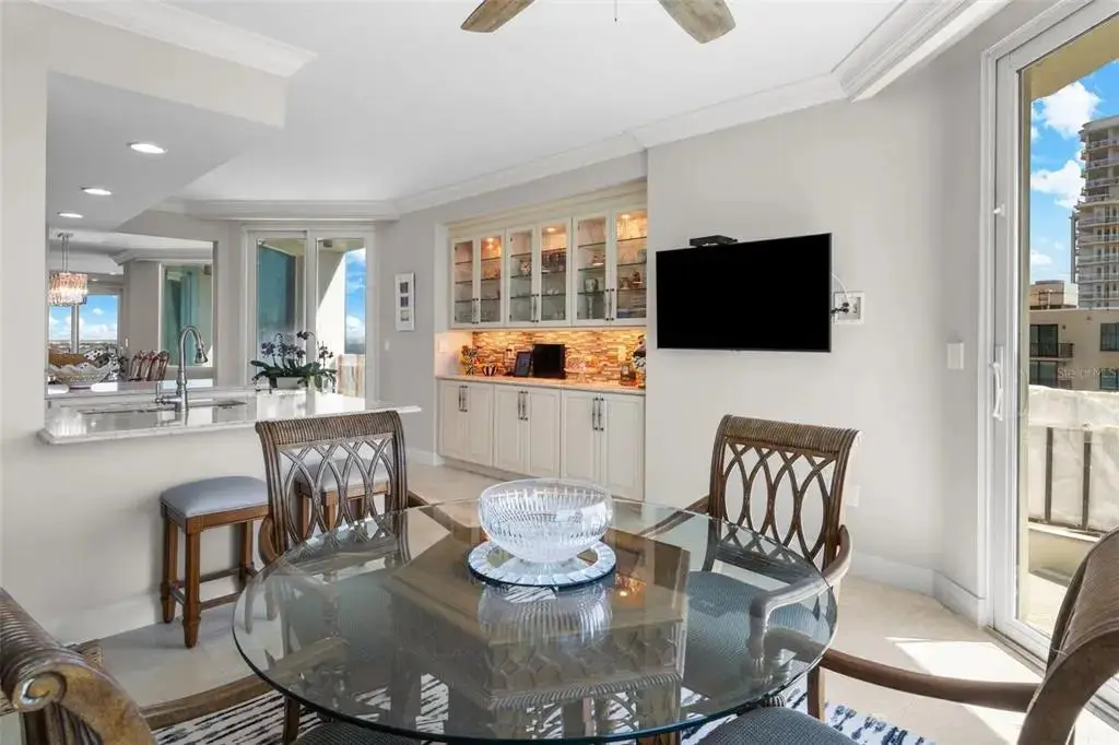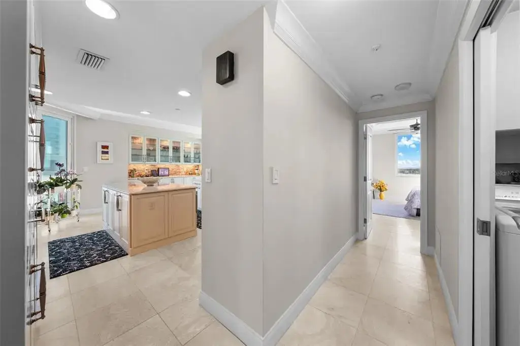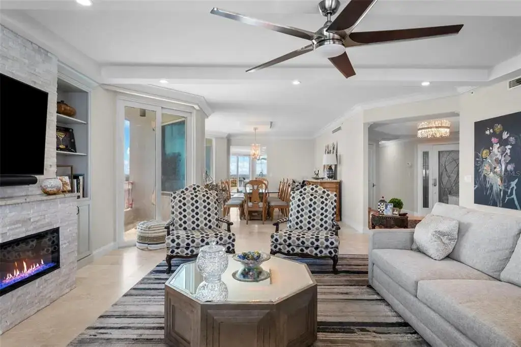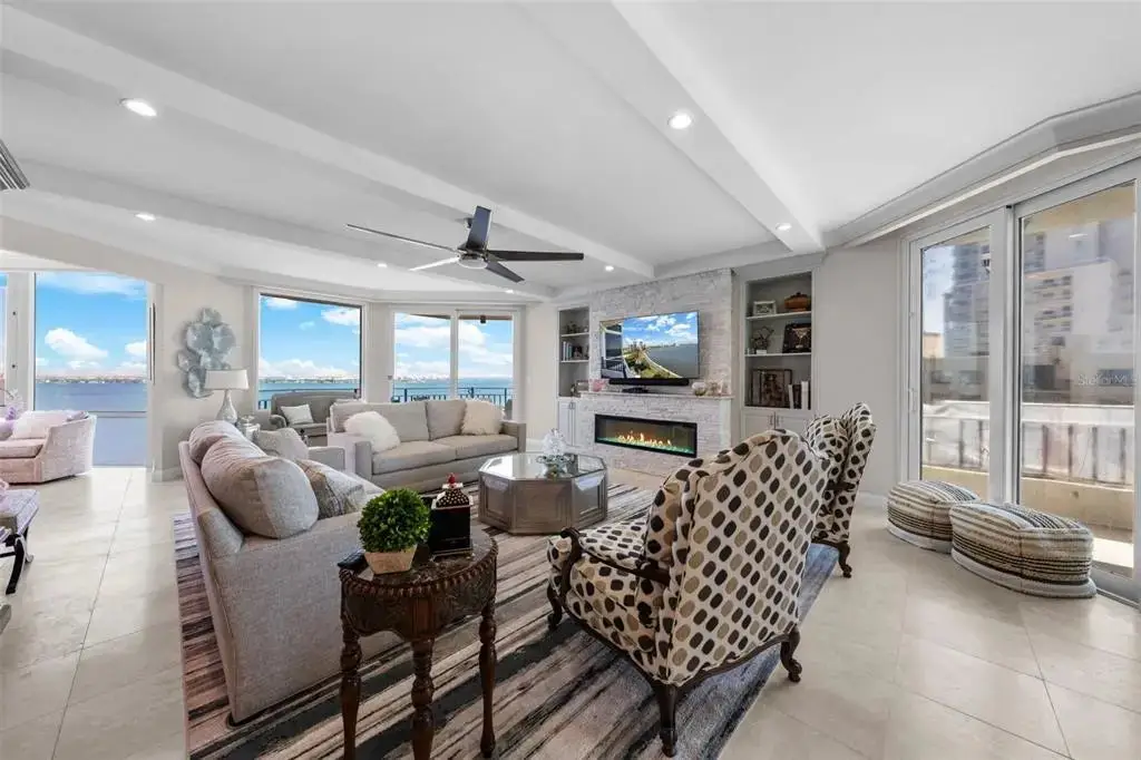 Welcome to the Bayshore Regency, one of Tampaâ??s most prestigious residences. Completely renovated in 2020, Unit 1401 boasts modern luxury and stunning views. Every detail was carefully considered, from the reconfigured kitchen with custom Kraft Maid cabinetry to the travertine floors throughout. The kitchen features top-of-the-line appliances, including a double-door Sub-Zero refrigerator, Wolf double ovens, and a sleek black glass Wolf electric cooktop. The large island offers ample storage, while a spacious walk-in pantry adds even more convenience. The open concept kitchen flows into the dining and living areas, perfect for entertaining. The bar area, with floor-to-ceiling windows, offers expansive views of Hillsborough Bay and downtown Tampa, with a glass-front Sub-Zero beverage center and ice maker. The living room includes multiple sliding doors, recessed lighting, and a built-in electric fireplace with color-changing flames. The private elevator entrance opens to a stunning foyer with a custom etched glass door and coffered ceiling. The primary bedroom features its own balcony, two walk-in closets with custom storage, and a luxurious marble shower. The second bedroom offers privacy and scenic views, with automatic Hunter Douglas window treatments. With only two condos per floor, enjoy ultimate privacy and breathtaking sunrise views and sunset views.