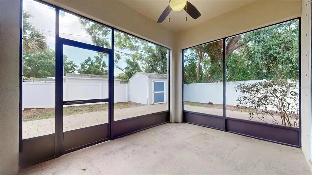 Large fenced yard with covered patio