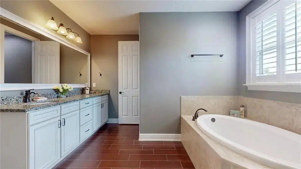 Gleaming wood floors and granite countertops