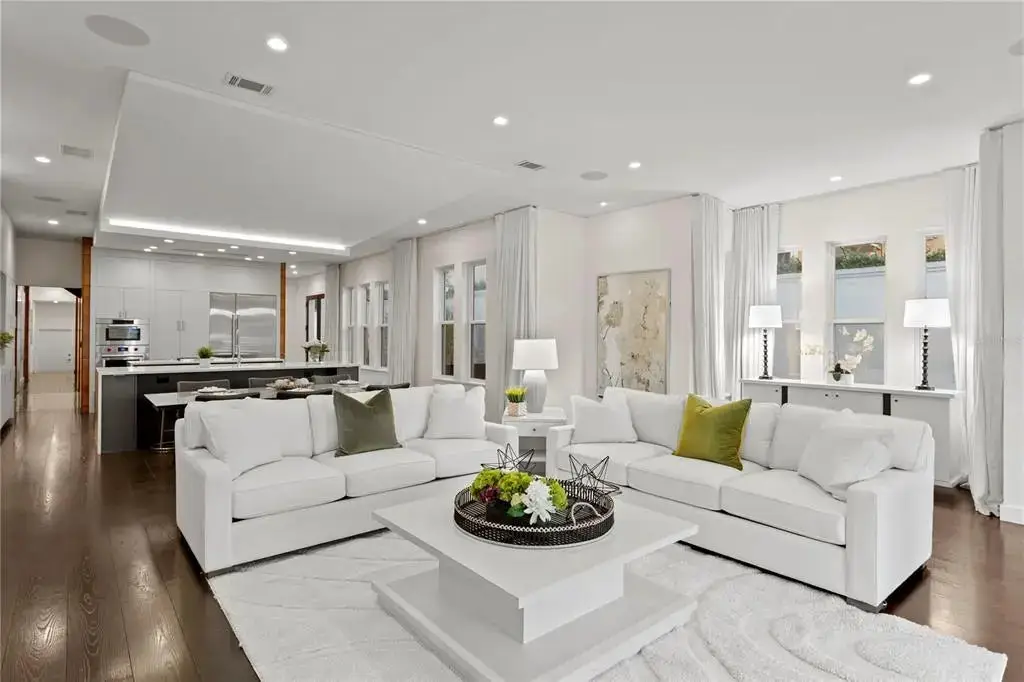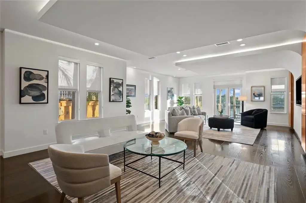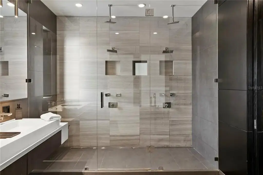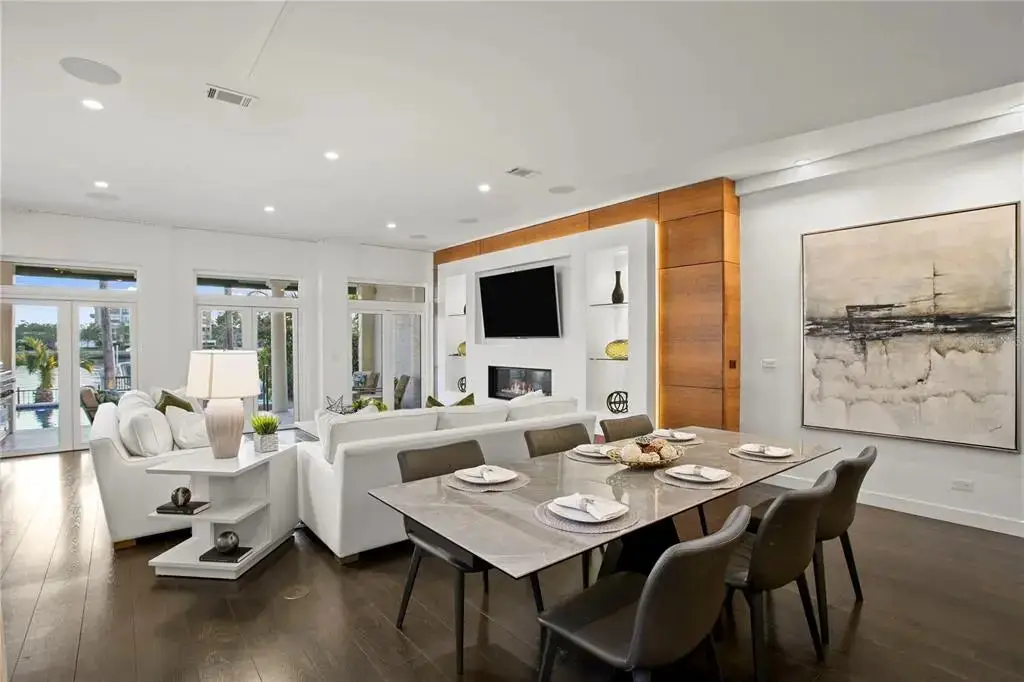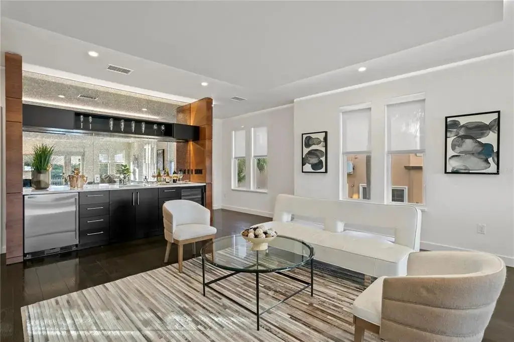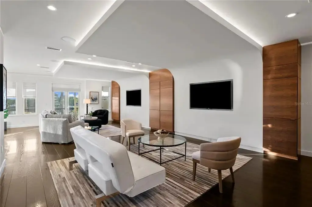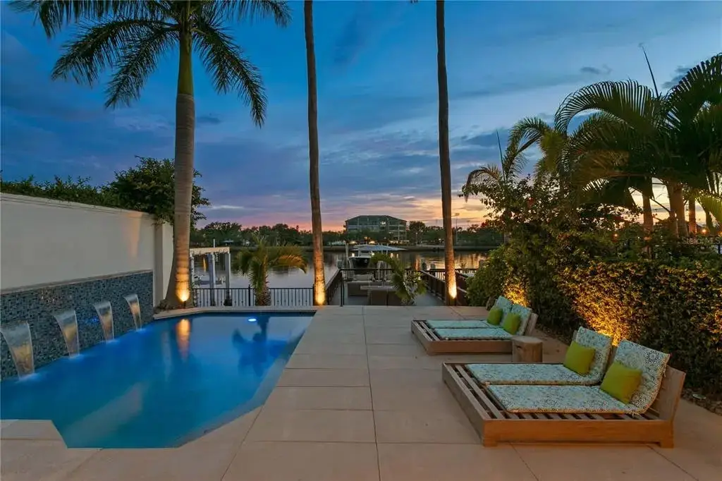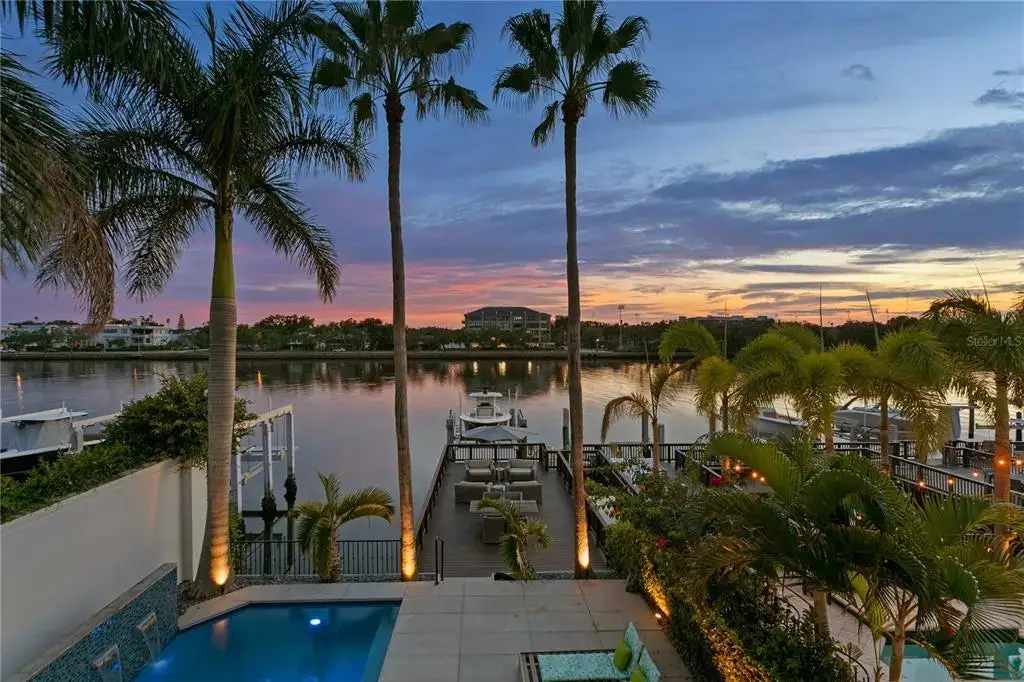 Welcome home to the pinnacle of casual sophistication on Harbour Island, where a completely redesigned three-level waterfront residence redefines luxury living in Tampa Bay. Framed by the artistry of SOL Design Architecture, this home greets you with a front entry hallway that effortlessly unfolds into a luminous great room. Towering windows capture daily sunsets over the water, while seamless sightlines invite the outdoors in, setting the stage for both intimate evenings and grand gatherings. Step into the chef’s kitchen, where Wolf and Sub-Zero appliances stand ready beneath custom millwork and expansive storage. The great room flows to a cantilevered deck suspended above the water and adds an additional nearly 600 sf of outdoor living, complete with a private pool, spa, covered lanai, and built-in Wolfe outdoor kitchen. Whether you’re hosting sunset cocktails or slipping into your boat for a day on the water, every moment here feels both private and jubilant. On the first floor, discover a versatile bedroom suite—ideal as a guest retreat, home office, or private workout studio—with its own ensuite bath. A solid steel and wood floating staircase sweeps you upward to a dedicated media and game room, where a wet bar and second-floor balcony offer panoramic water vistas. Two additional bedrooms share a nicely appointed full bath with double vanities and oversized tub and shower with chic finishes and beautiful pendant lights. Ascend to the third floor and enter an entire wing devoted to the primary suite, a five-star sanctuary overlooking the glistening waters. The spa-inspired bathroom flows directly into the bedroom, delivering uninterrupted water views from the oversized soaking tub to the glass doors. An adjacent custom closet provides an abundance of storage, ensuring that form and function unite in perfect harmony. The location of this residence is superior to others within the neighborhood providing exceptional privacy and expansive views, unlike others in the neighborhood, as it abuts the prestigious Pointe neighborhood. Harbour Island’s 24-hour guarded gates ensure serenity, yet you’re mere steps from Tampa’s vibrant Riverwalk, Bayshore Boulevard, Water Street, and the city’s premier arts and dining districts. Commuters appreciate quick access to I-275, the Lee Roy Selmon Expressway, and Tampa International Airport, making every aspect of daily life effortless. Move right in and begin living the waterfront dream you’ve always imagined—sunsets, sailing, and sophisticated entertaining await.