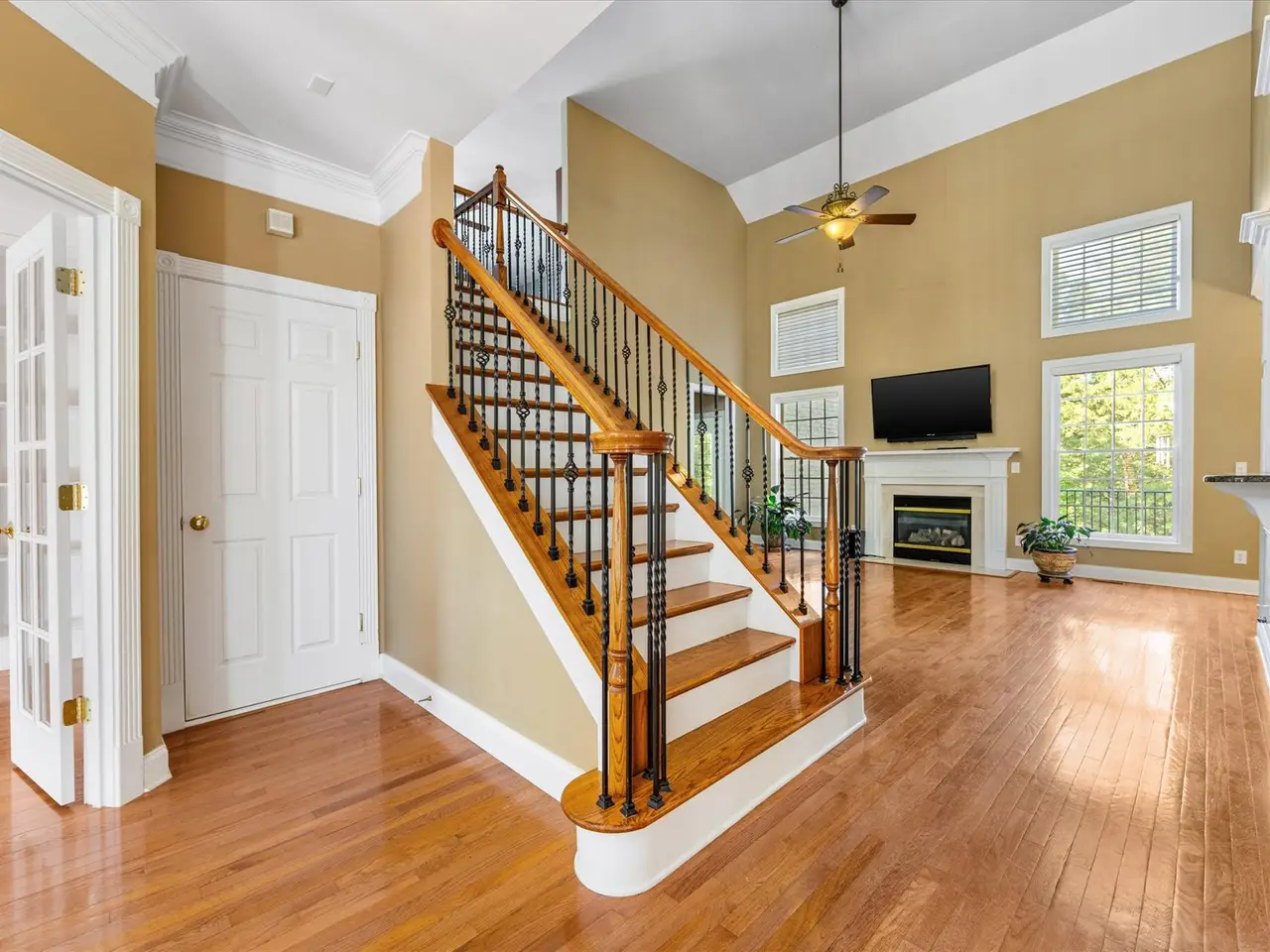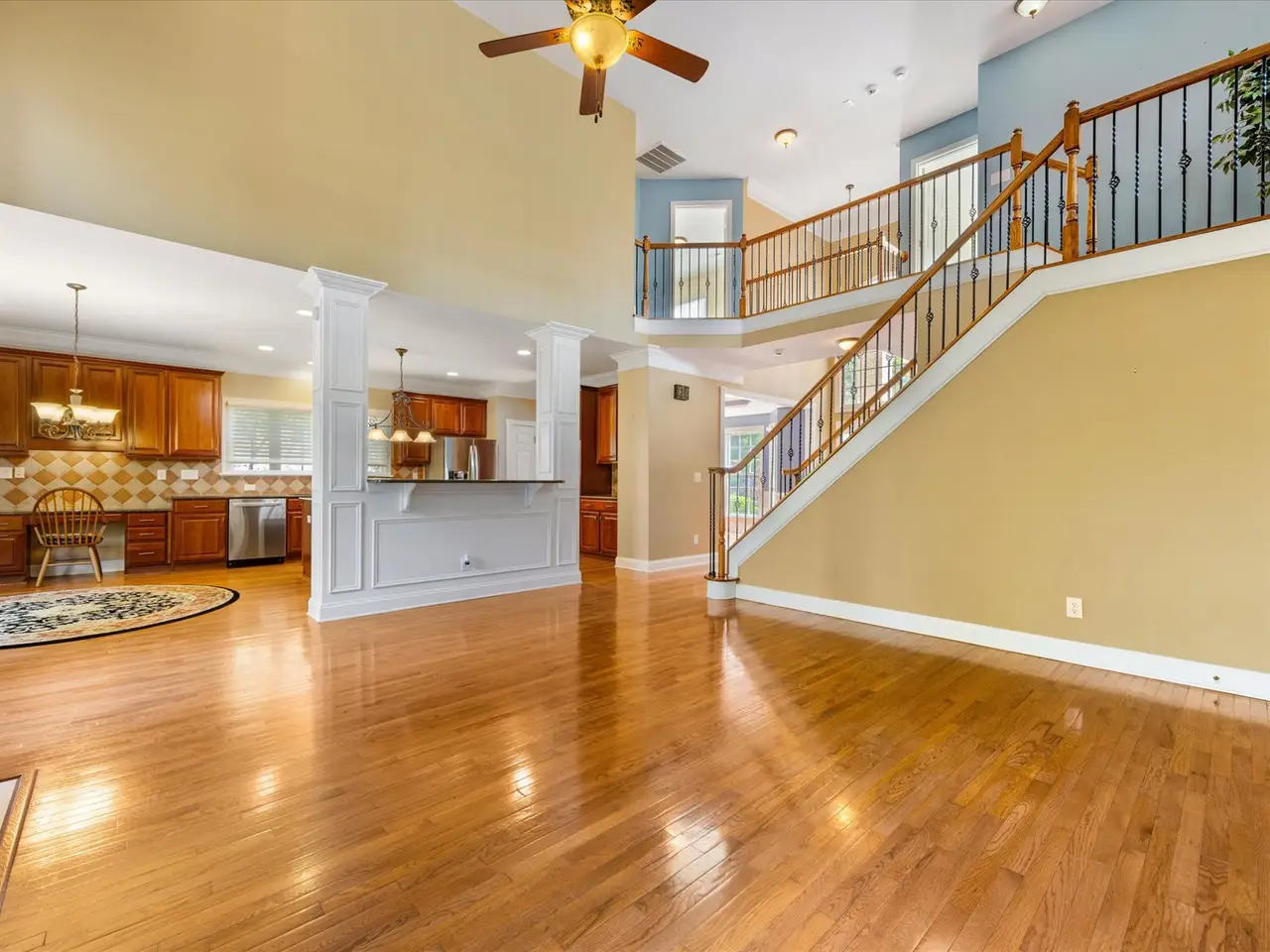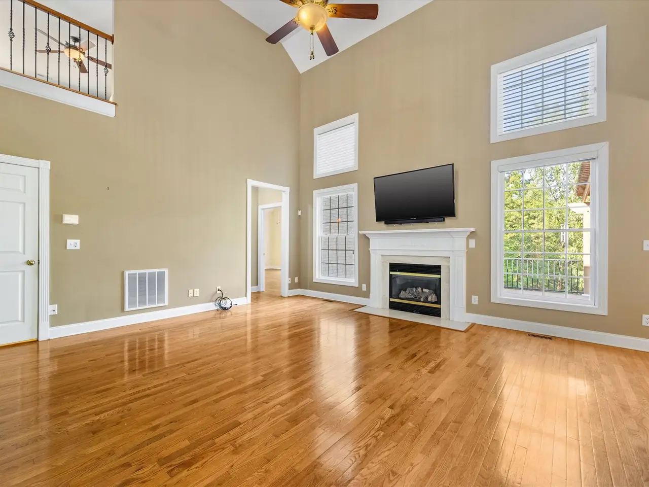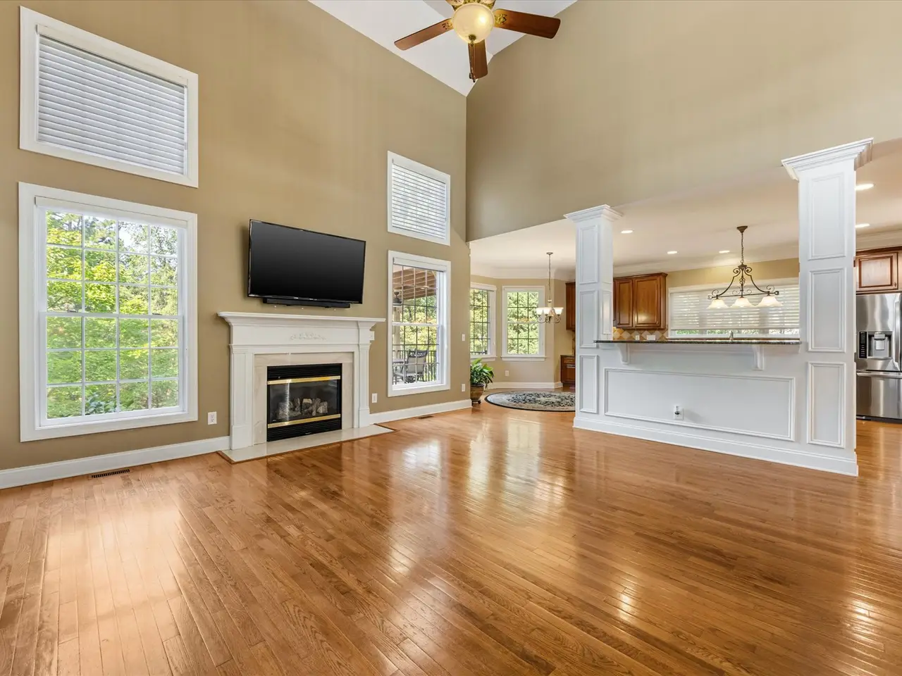 Gas fireplace with two-story great room