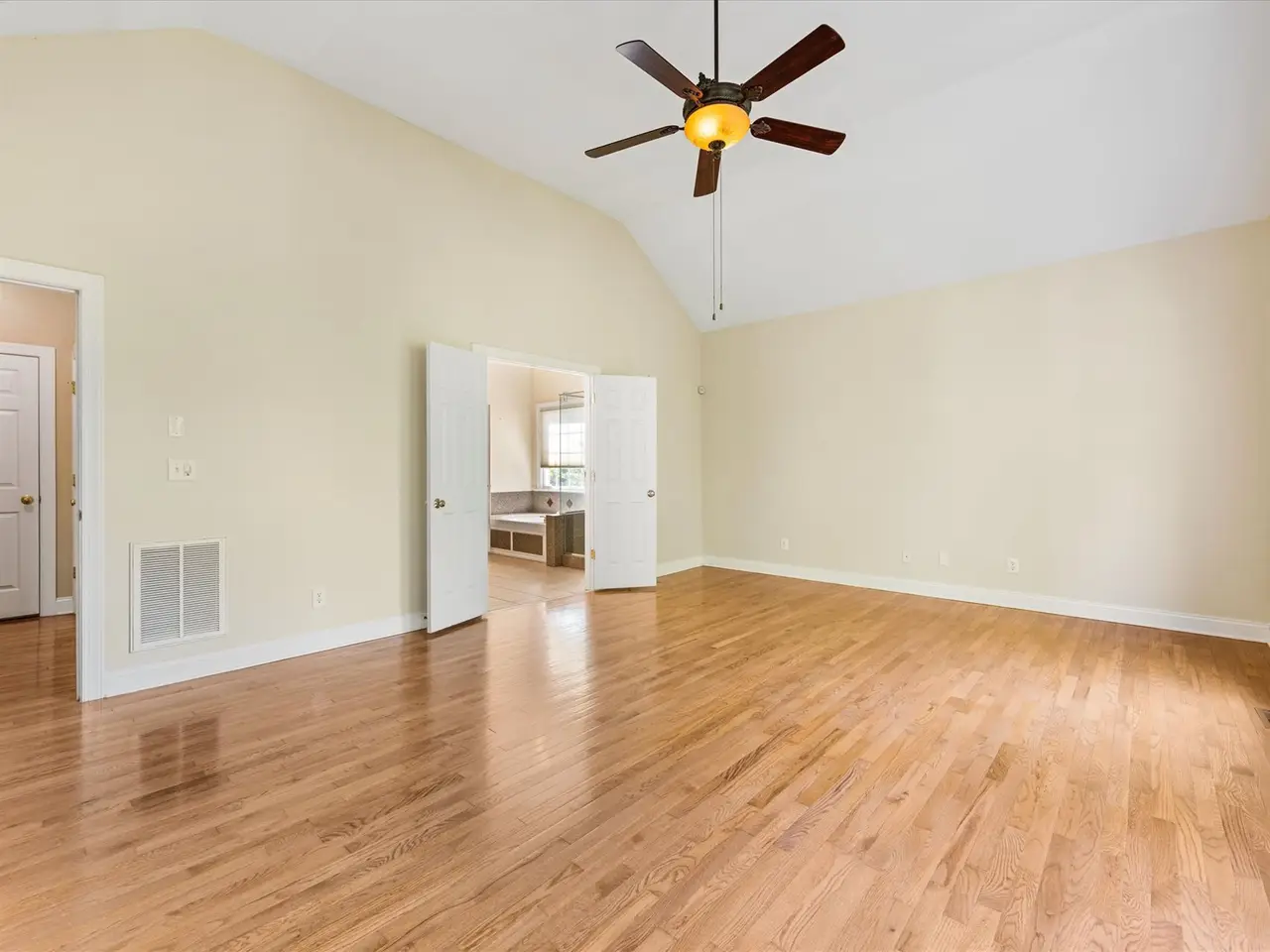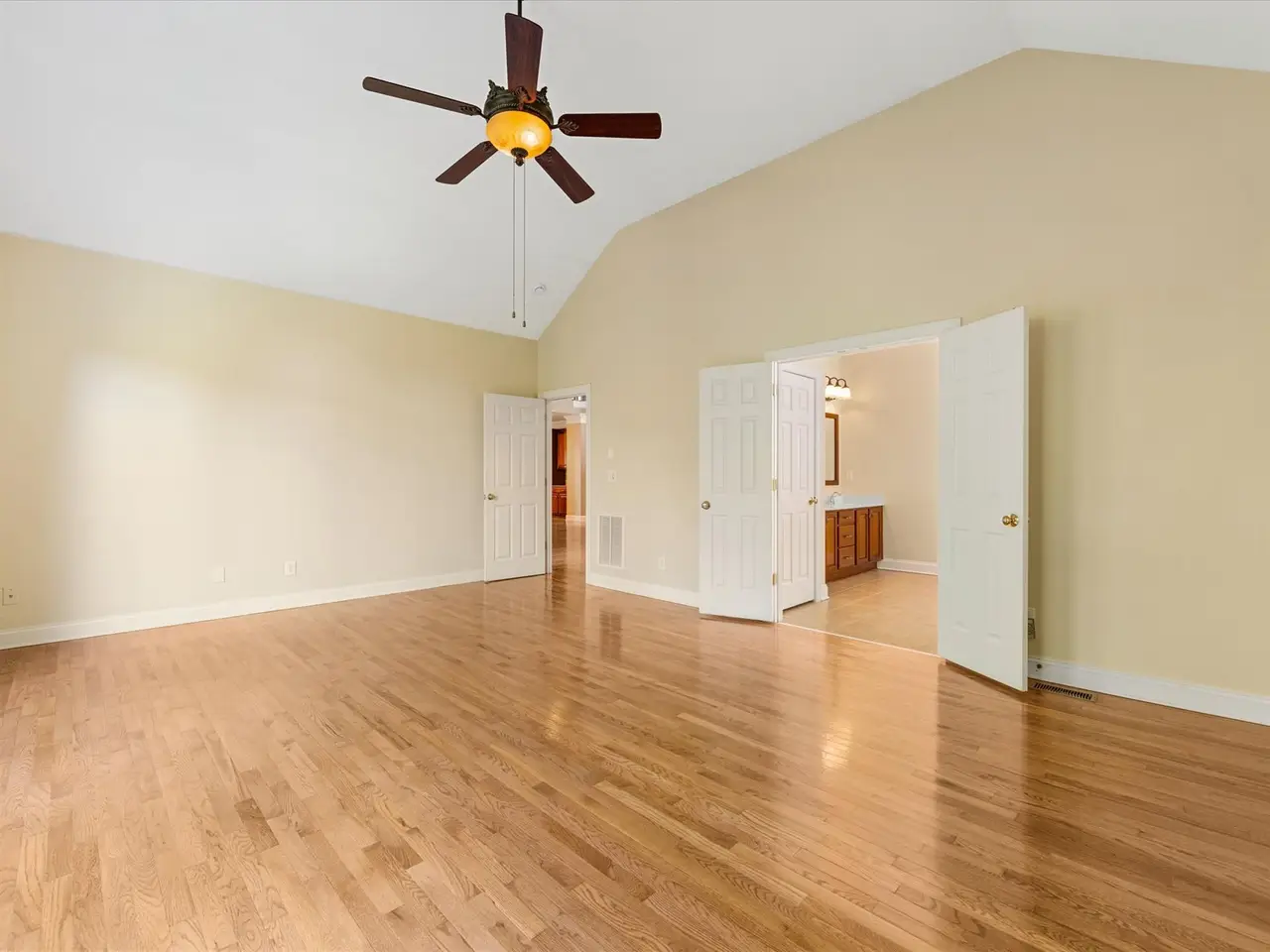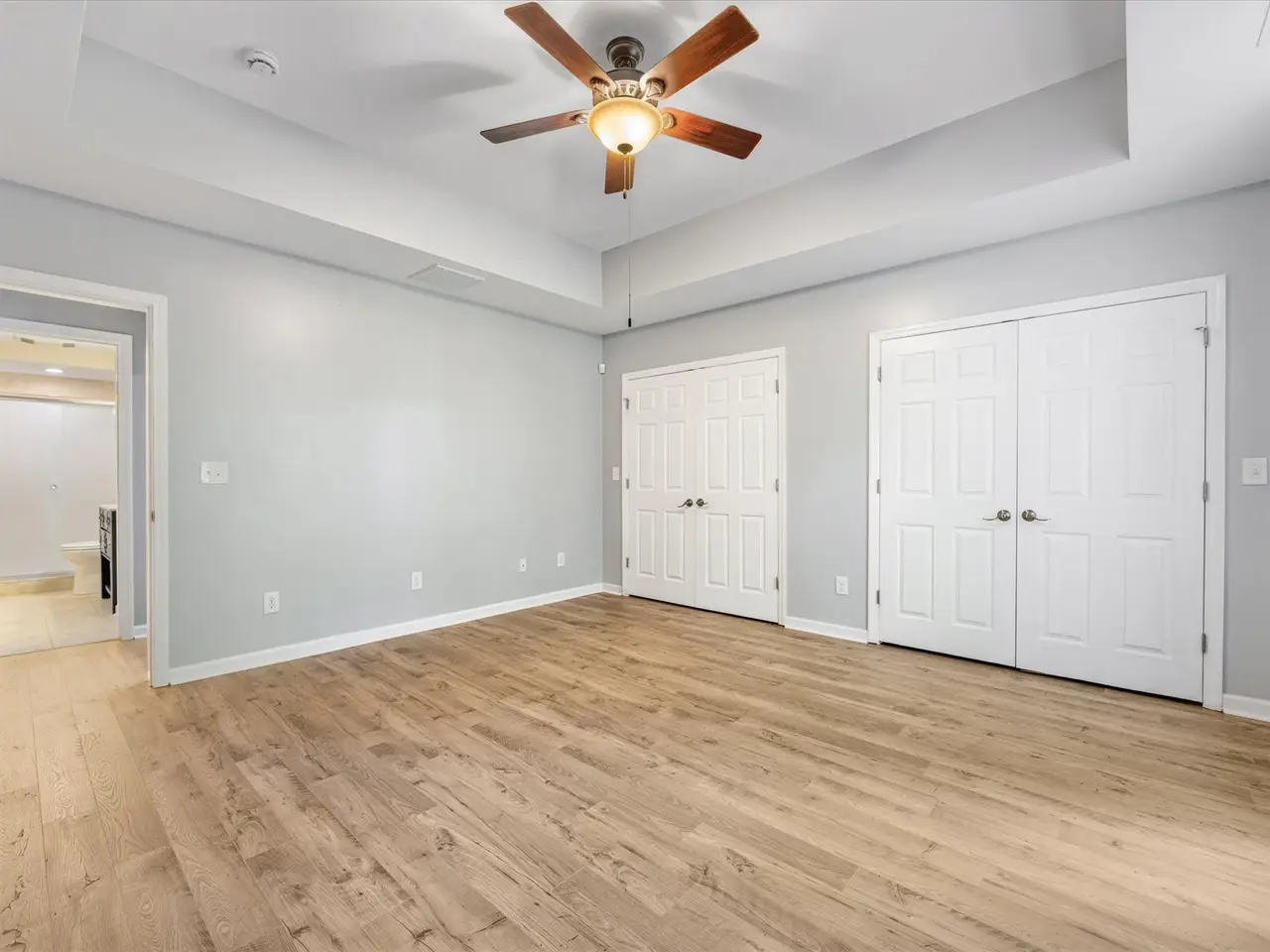 Main-floor primary bedroom with custom closet