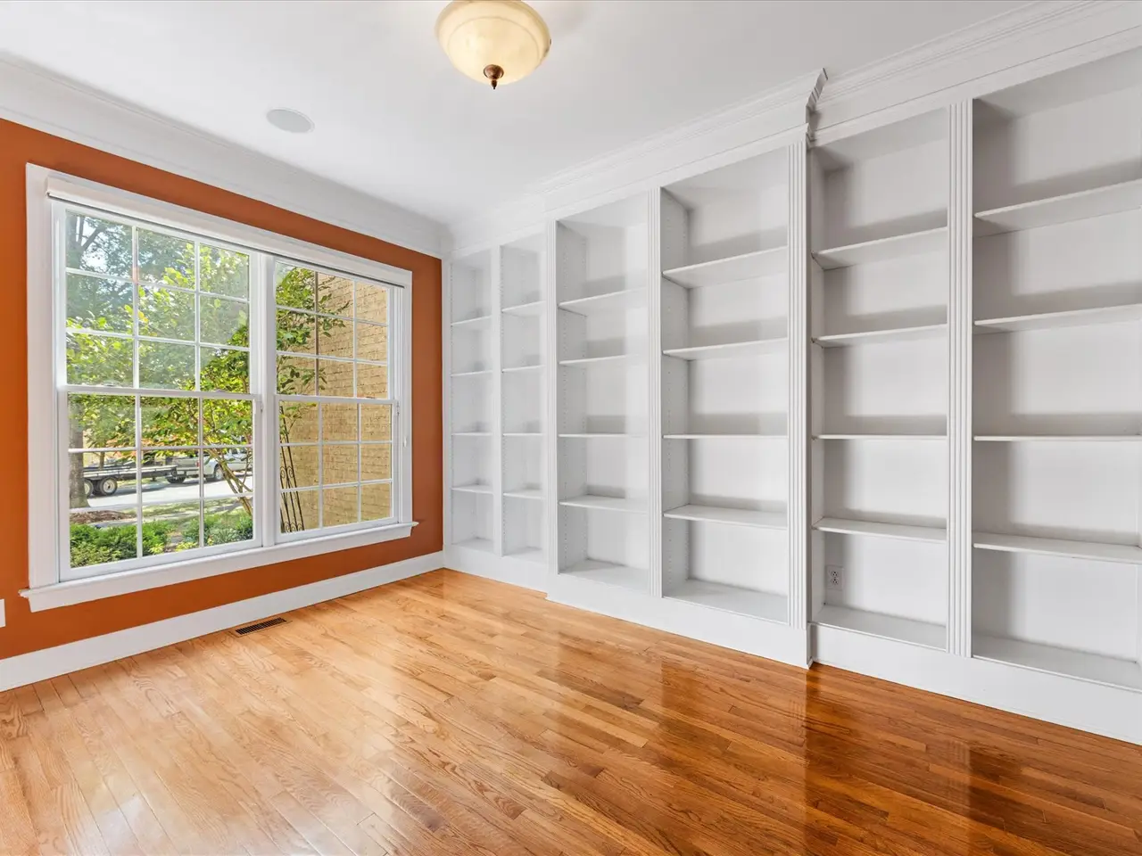Floor to ceiling-built ins in office