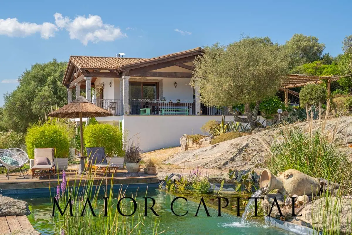 Immersed in Gallura's nature, a few minutes away from Olbia Harmoniously integrated between the Mediterranean maquis and the imposing granite rocks typical of Gallura, this detached villa with panoramic views of Tavolara is for sale in Telti, a charming Sardinian village only 20 minutes away from Olbia. The property represents a rare opportunity to live an immersive experience in an authentic and evocative natural setting, ideal for those who want tranquillity without giving up the main connections. Living room with a view of Tavolara and boho-chic details Spread over two levels, the villa welcomes on the main floor through a panoramic veranda that offers a magnificent view of the sea and the island of Tavolara. The entrance opens onto a living room with a strong visual impact, with a dark wood-beamed ceiling that gives a warm, rustic touch. The stone details, the central fireplace and the warm tones of the walls and floors give the room a boho-chic, cosy and sophisticated style. Rustic-style kitchen overlooking the garden The open kitchen, completely made of natural wood, reflects the rustic style of the entire property. The kitchen is functional and well organised, with large work surfaces and a window that opens onto the garden, providing natural light and a pleasant sense of continuity with the outdoors. Bright sleeping area with a breathtaking view of nature. The sleeping area houses a master bedroom with a sober and relaxing style, enhanced by subtle tones and an open view of the surrounding nature. The presence of large windows allows for a unique visual experience every day, making every awakening special. The second bedroom, equally bright, also offers a wonderful view of Tavolara. Two bathrooms complete the floor: one inspired by the colours of the sea and the other decorated in warm tones reminiscent of the sun's rays. Two independent flats on the lower floor. On the floor below, with separate entrances via sliding glass doors, are two independent living units:* The first flat includes a living room, two bedrooms and a bathroom.* The second consists of a living room, kitchenette, a double bedroom and a bathroom.* This configuration offers maximum flexibility, ideal for hosting friends and family or for use as a holiday rental unit. Biological pool integrated into the natural landscape. The pride of the property is the biological pool, designed according to natural lake principles. Thanks to an innovative filtration system without the use of chemicals, the water remains crystal clear and pure, in full respect of the environment. An oasis of wellbeing perfectly integrated into the Gallura landscape.Telti, Sardinian tradition between nature and authenticityTelti is an authentic Gallura village, known for its stone houses, narrow streets and an atmosphere rich in history and tradition. Here you can breathe in the true essence of Sardinia. Its proximity to Olbia and its beaches makes this villa the ideal choice for those seeking a peaceful retreat, without straying far from the main services and the most exclusive resorts of the Costa Smeralda™. In just a few minutes by car, it is possible to reach some of the area's most beautiful beaches, such as Pittulongu, Porto Istana, Porto Taverna and Marinella, as well as the renowned seaside resorts of the Costa Smeralda™, including Porto Rotondo, Capriccioli, La Celvia, Romazzino and Spiaggia del Principe. Places where the sea takes on unique turquoise hues and the white sand frames picture-postcard landscapes.Composed as follows:Ground floor:* Living room overlooking veranda with view of Tavolara* Open kitchen* Double bedroom* Second bedroom with sea view* Two bathroomsThe two flats on the semi-basement floor include:* Two separate living rooms* Open kitchen* Kitchenette