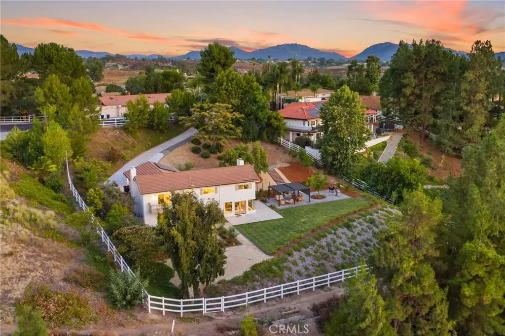 INCREDIBLE VIEWS FROM THI MEADOWVIEW HOME!! BEAUTIFULLY REMODELED & PAID SOLAR! Sitting on nearly 3/4 of an acre of space, this Temecula home is a rare find. Step inside to an open-concept floor plan framed by SENSATIONAL POSTCARD VIEWS that will take your breath away. The fully remodeled kitchen is a chef's dream, boasting quartz counters, a sprawling island with barstool seating, a wine refrigerator, charming brick backsplash, floating shelves, hooded cooktop, soft-close cabinetry, a pot filler at the stove, and double ovens--every detail thoughtfully designed. Recent upgrades continue with new flooring, a fresh driveway, and a completely reimagined backyard featuring new irrigation, lush landscaping, a paver patio, fruit trees, and even your private vineyard. The kitchen flows seamlessly into a dining area with panoramic windows and a living room accented by a cozy fireplace and wood-slatted, beamed ceiling. 4th bedroom is located downstairs, perfect for a guest room or office. Upstairs, the primary suite features a walk-in closet, en-suite bath, and a private balcony, perfect for savoring the gorgeous California weather. Plus two secondary bedrooms and a secondary bathroom, and easy access to the spacious garage. Just minutes from shopping, dining, Wine Country, and all of Temecula's best entertainment, this home blends luxury, character, and location into one irresistible package.