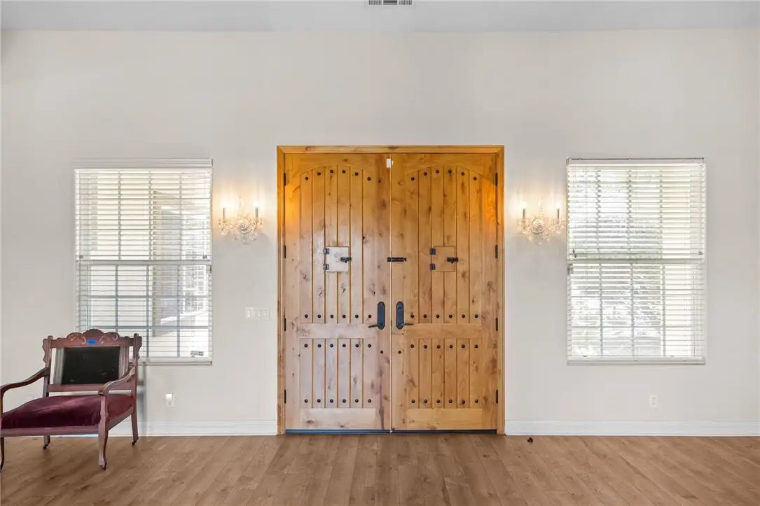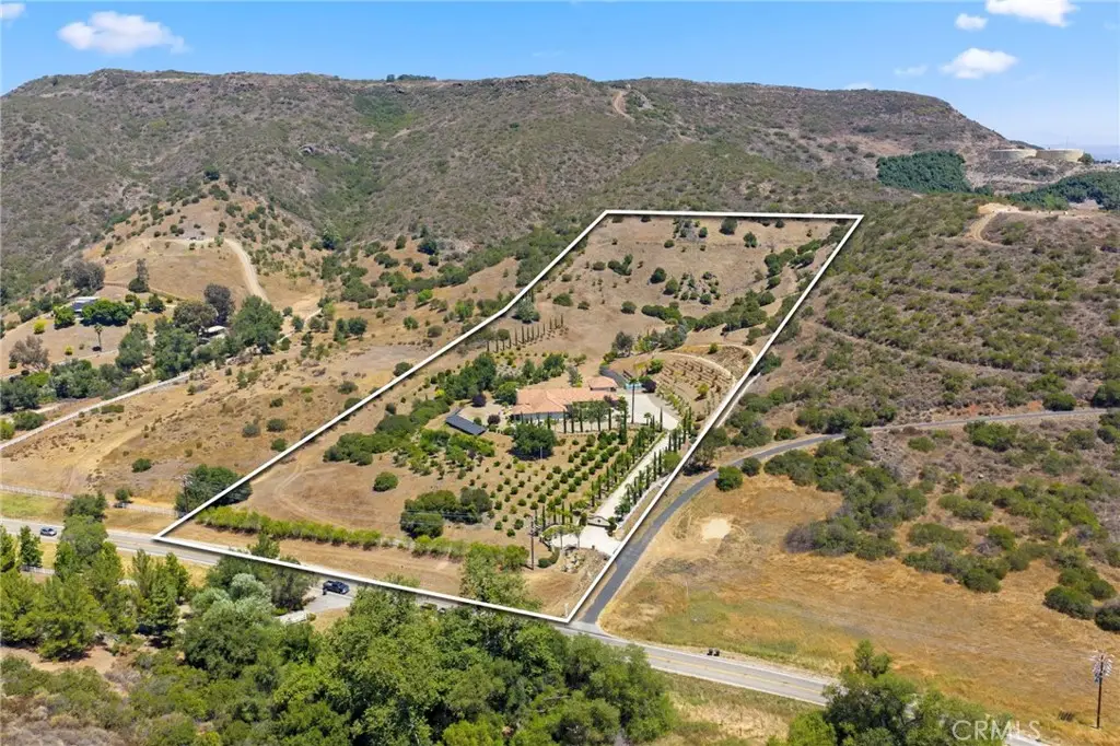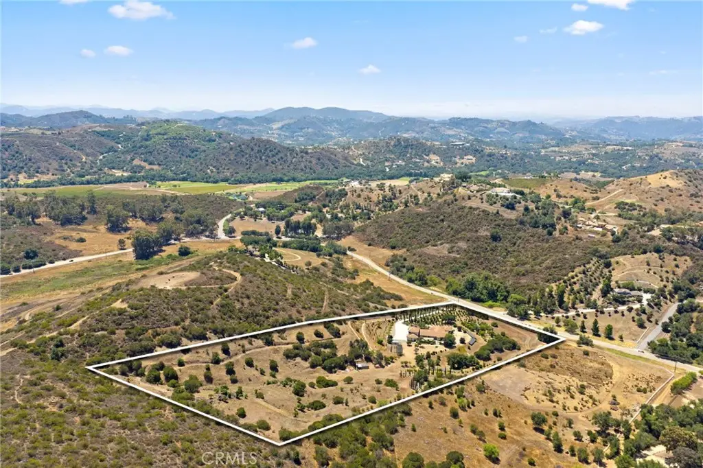 This Magnificent Mediterranean Estate is located in the prestigious are of De Luz - often called Millionaire's Row - Adjacent to the Santa Rosa Plateau and just 10 minutes from Interstate 15! Very Private - Located on approximately 11 acres of gentle land, with numerous fruit trees and flowers, fenced garden areas, chicken coop, and perfect to plant additional vineyards, citrus, or for Equestrian uses. Entering the elegant property through the gated entrance, up the gently curving driveway lined by roses, you will be happy to be home! The open floor plan has approximately 7,445 square feet, with 5 bedrooms and 4 baths on the main floor, plus a large office/gym/theatre room upstairs, with a bathroom & shower upstairs! The over sized 1,800 sf - 4 car garage plus workshop area, offers room for any vehicle, and plenty of storage - plus there are 2 separate 200 amp, 3 phase electrical panels with 220 v. outlets throughout the garage. The newer Solar system will reduce your electric costs substantially! The gourmet kitchen offers double granite islands, Profession Chef's appliances equipped with built-in Thermador and GE Monogram stainless appliances, huge walk-in pantry, separate breakfast nook with views, and is open to the Family Room with vaulted ceilings and fireplace. The Handmade tumbled marble mural backsplash and cast stone moldings accentuate the vineyard theme! The Primary Bedroom includes two walk-in closets, large vanity, Jacuzzi tub, and large walk-in shower. and the other bedrooms offer large closets and adjacent bathroons. The outdoor kitchen/BBQ is a perfect area for enjoying the evening sunsets. There is an oversized Laundry Room plus Utility Room which offer so much extra storage! Additional features: Whole house central vacuum, completely wired for Cat 5 high speed networking.