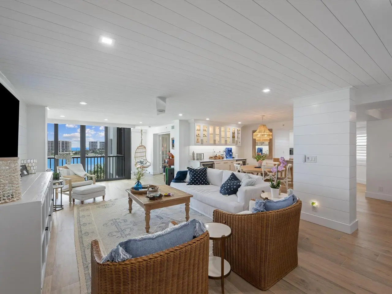 Newly renovated to perfection with spectacular panoramic views of the blue water on the Intracoastal and ocean! Don't miss this move in ready stunner with beautiful new porcelain floors throughout, new kitchen that was opened up and flows into the great room that overlooks the Intracoastal. The condo features raised ceilings, shiplap, all new impact sliders and windows, new wet bar, split floorplan with 2 master suites and an oversized walk in closet, luxurious bathrooms, all new doors and hardware and impeccable decor and furnishings! Sandpointe Bay is in the heart of Tequesta directly on the Intracoastal that offers wonderful of amenities, including heated resort type pool directly overlooking the Intracoastal and Day, clubhouse, sauna, tennis, pickleball, kayak storage, fitness center!