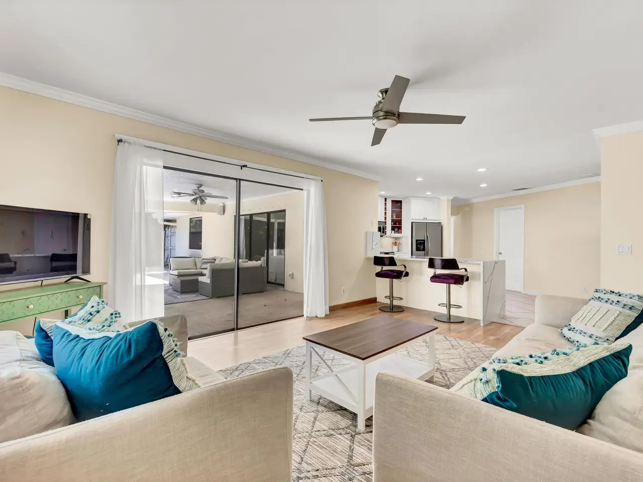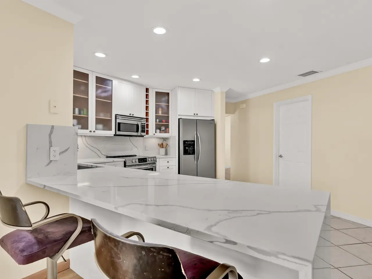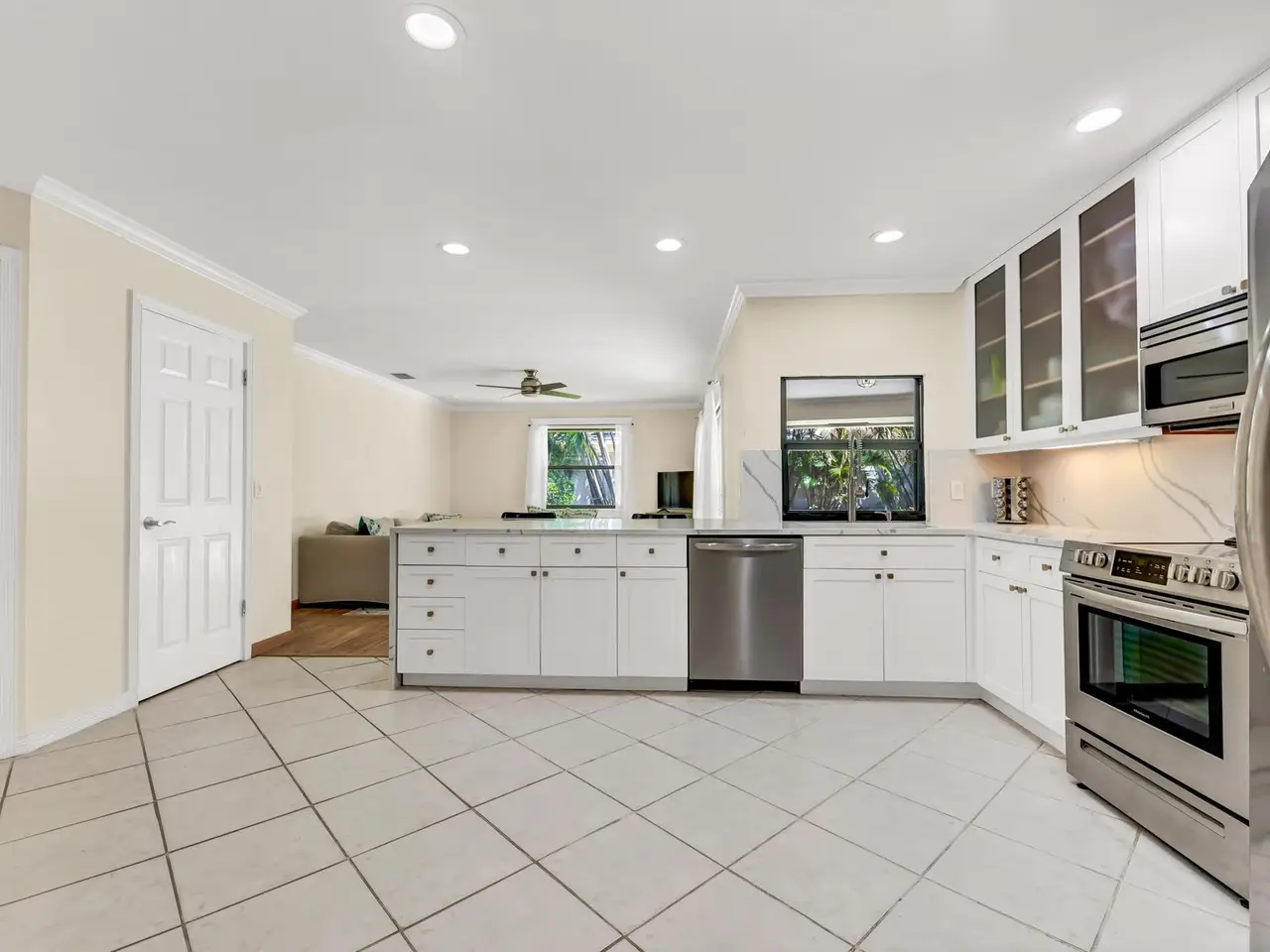 Welcome to the charming Village of Tequesta! This home perfectly blends small-town character with an unbeatable location. Inside, you'll find 3 spacious bedrooms, 2 full bathrooms, and a versatile den that can be used as an office or easily converted into a fourth bedroom. The split floor plan offers two separate living areas, giving everyone space to relax and enjoy. The newly renovated kitchen is light, bright, and open--featuring beautiful quartz countertops, newer stainless steel appliances, and a seamless flow into the dining and living areas. The main living room boasts vaulted ceilings and luxury vinyl flooring, creating a modern yet comfortable atmosphere. SEE MORE REMARKS...