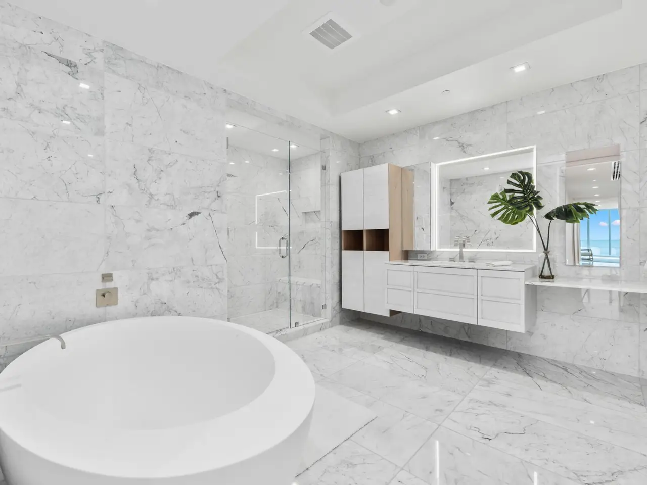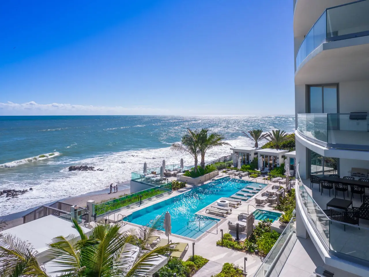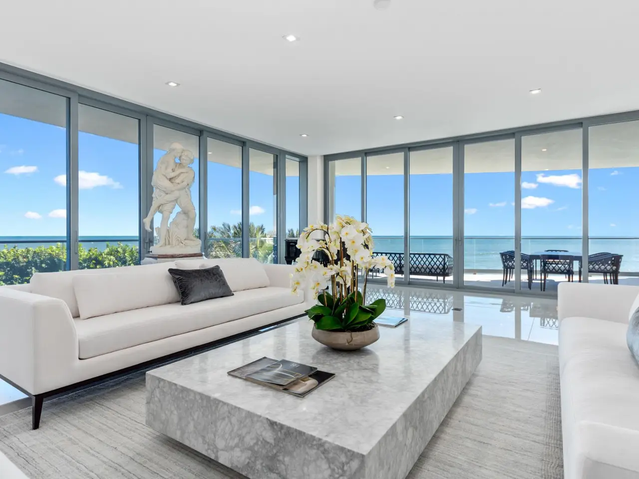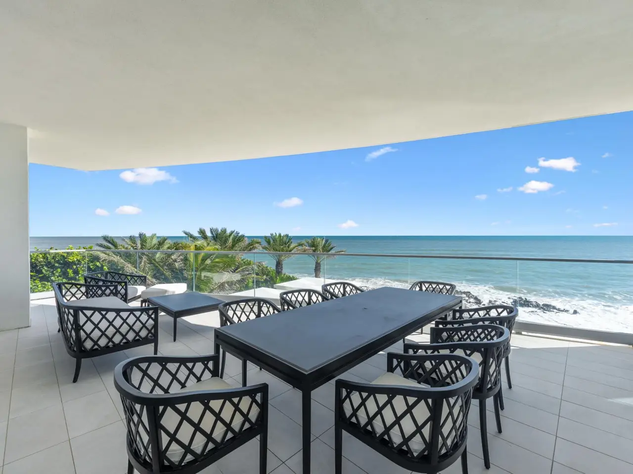 Exceptional opportunity to own this luxurious designer residence at the prestigious SeaGlass Condominium on Jupiter Island offering sweeping, uninterrupted ocean views. Completed in 2022 as the first new condominium development on Jupiter Island in over 20 years, SeaGlass offers just 21 exclusive residences, promising unparalleled luxury, remarkable vistas, and exceptional privacy. Set amidst the pristine beauty of the ocean, Intracoastal Waterway, and lush protected landscapes, Residence 302 is a masterpiece of modern design. Entering through your private foyer, you are welcomed by an expansive open floor plan with lavish marble flooring and floor-to-ceiling glass, providing panoramic views from the ocean to the Intracoastal. SEE MORE REMARKS... This residence includes three bedrooms, four and a half bathrooms, and a den, with each bedroom featuring an ensuite bath, walk-in closets, and stunning views. Additional features include three large terraces, a summer kitchen, imported Italian solid core wood interior doors and casings, 10-foot ceilings, recessed down lighting, and imported Snaidero cabinetry with integrated task lighting. The kitchen boasts a professional-grade stainless steel ventilation hood by Snaidero, top-tier appliances, a cabinet-paneled freezer column, a full-height Miele wine column with glass and cabinet panel front, and two Miele dishwashers. The master suite offers direct terrace access, dual walk-in closets, separate bathrooms with steam showers and frameless glass enclosures, imported marble, Italian wall-mounted vanities, and designer mirrors and lighting. The SeaGlass building offers an impressive range of amenities, including a gated entrance, a 24/7 attended lobby designed by Champalimaud Design, an emergency generator, a heated oceanfront infinity-edge pool, a sandy beach with chaise lounges, two gated stairways to the beach, a beachside summer kitchen, an outdoor viewing terrace, a heated spa, a full-time property manager, a fitness center, a yoga meditation lawn, a club room with a catering kitchen and game area, an outdoor social terrace with BBQs and a fire pit, a dog walk area and bathing station, a package room with keypad access, and a dedicated bike storage area. This one-of-a-kind property offers the rare chance to embrace the ultimate in coastal luxury living.