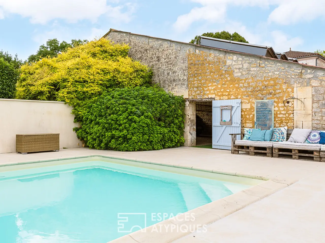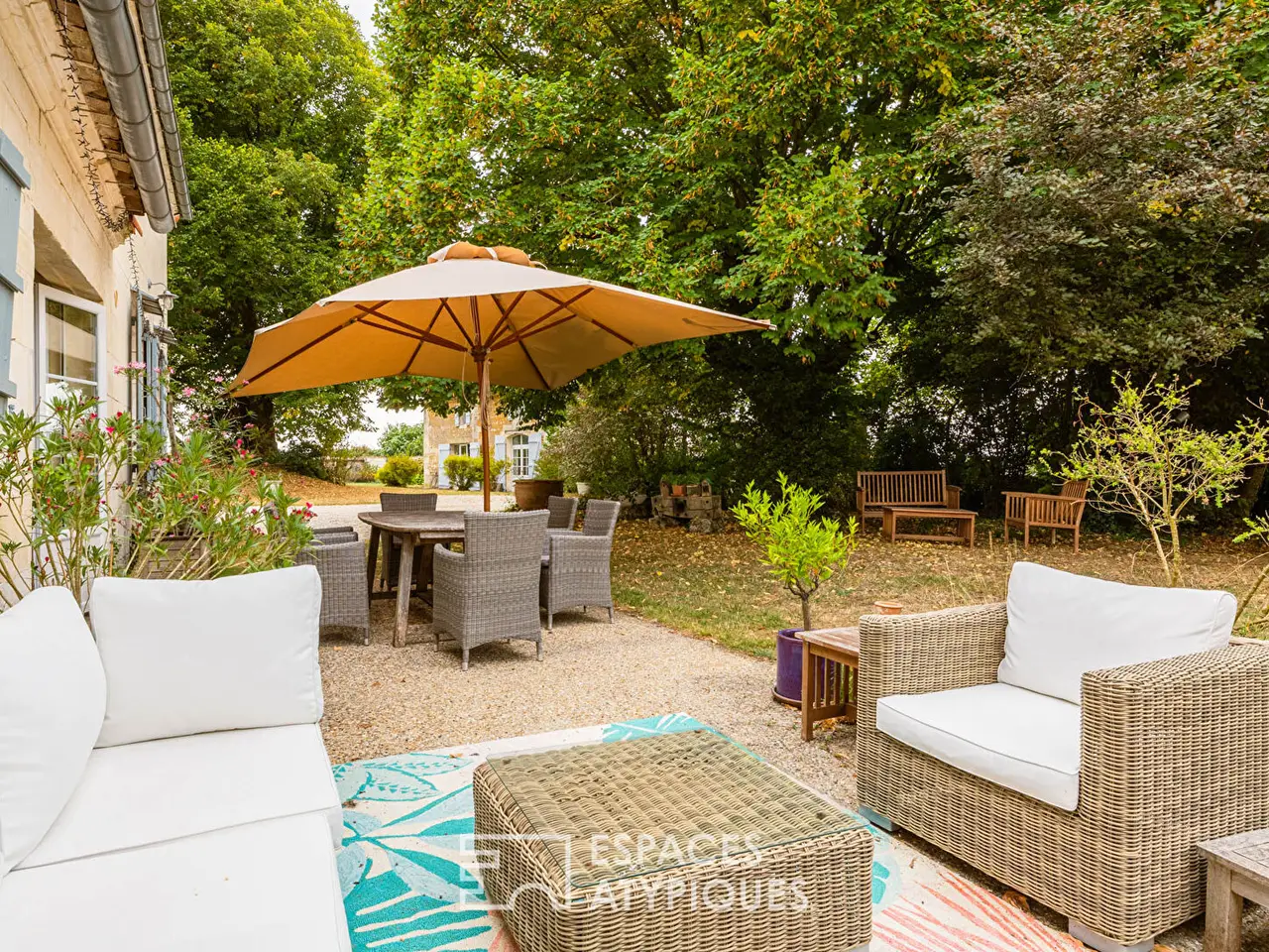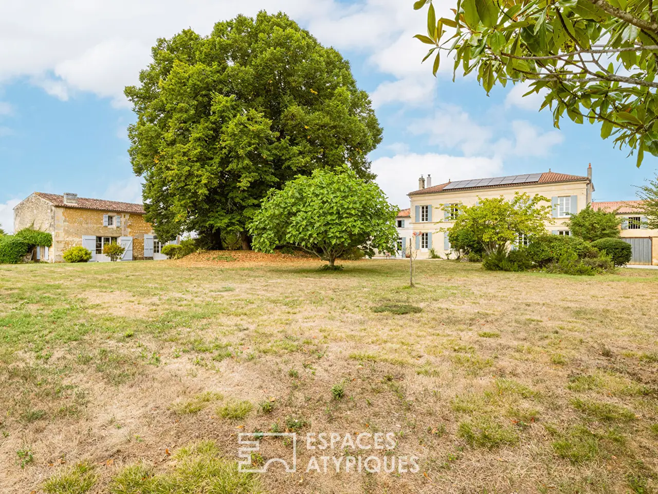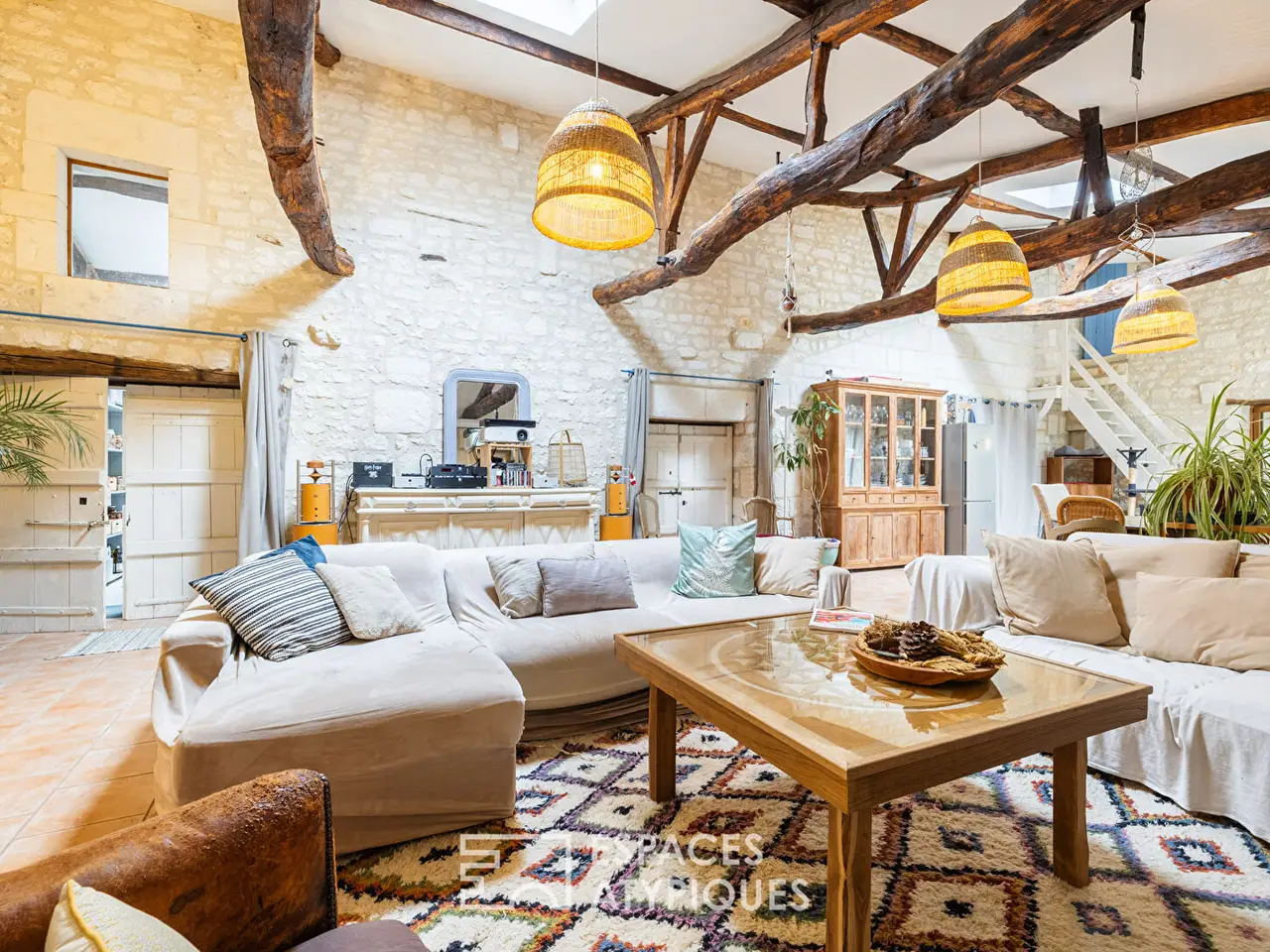 Between Saintes and Pons, in Tesson, a charming property of over 700sqm is revealed, nestled on nearly two hectares of land. This exceptional estate, a former winery, is an invitation to serenity and well-being. This rare place, renovated with care and taste, offers an exceptional living environment, ideal for family life or a professional project of gites and receptions. The four residential buildings can offer up to ten bedrooms, creating a flexible configuration capable of adapting to multiple accommodation needs. The main house, an elegant Charentaise style built of cut stone, has been renovated while preserving the character of the old: exposed beams, stone walls, and large rooms blend with modern materials and bohemian decor. The residence seduces with its vast living areas, organized around a generously sized living room, a more intimate lounge with a fireplace insert, and a kitchen that is both practical and bathed in light. The sleeping areas, including a ground-floor bedroom with a bathroom that allows complete autonomy on one level, combine comfort and elegance, while the upper floor distributes two other bedrooms with authentic parquet floors. Outside, the grounds of nearly two hectares are a true haven of peace. The landscaped park, sheltered from view, is organized into several spaces allowing a rental project to renew the promise of peace and privacy for each client. The outbuildings, vestiges of winemaking, offer possible economic development or simply a generous surface area to house vehicles and tools. Located only 15 minutes from the A10 motorway and 30 minutes from the nearest beaches, this estate with multiple possibilities combines the charm of the local winemaking history with modern comfort. ENERGY CLASS: D / CLIMATE CLASS: D. Estimated average annual energy expenditure for standard use, based on average energy prices for 2021, 2022 and 2023: between EUR8,750 and EUR11,920. Full photo report on our Espaces Atypiques Charente-Maritime website. REF. EALR2148 Additional information * 19 rooms * 10 bedrooms * 1 bathroom * 2 shower rooms * Outdoor space : 19390 SQM * Parking : 10 parking spaces * Property tax : 3 384 € Energy Performance Certificate Primary energy consumption d : 164 kWh/m2.year High performance housing
