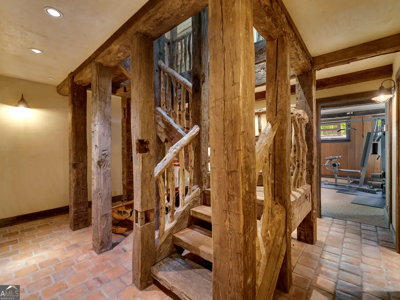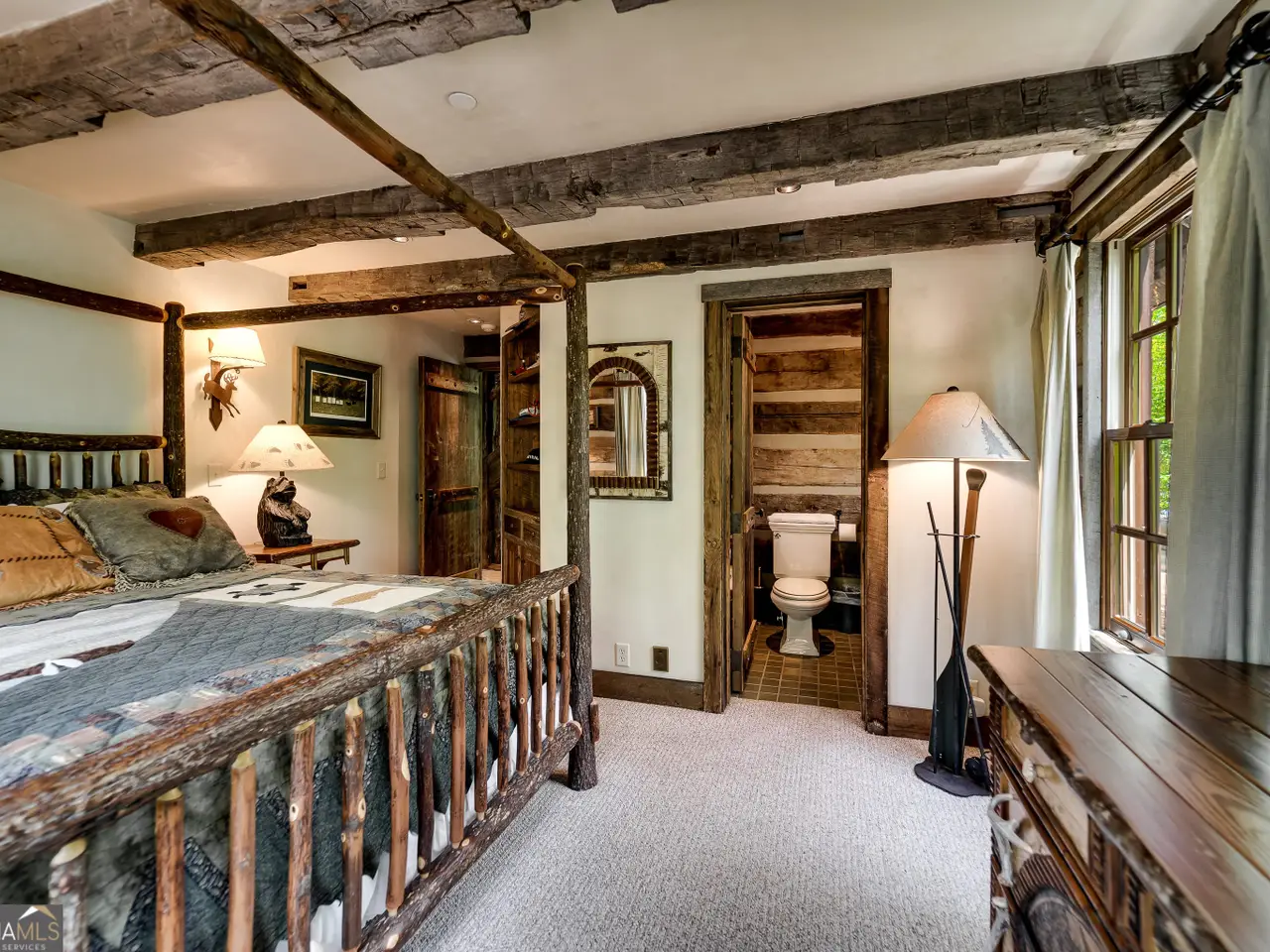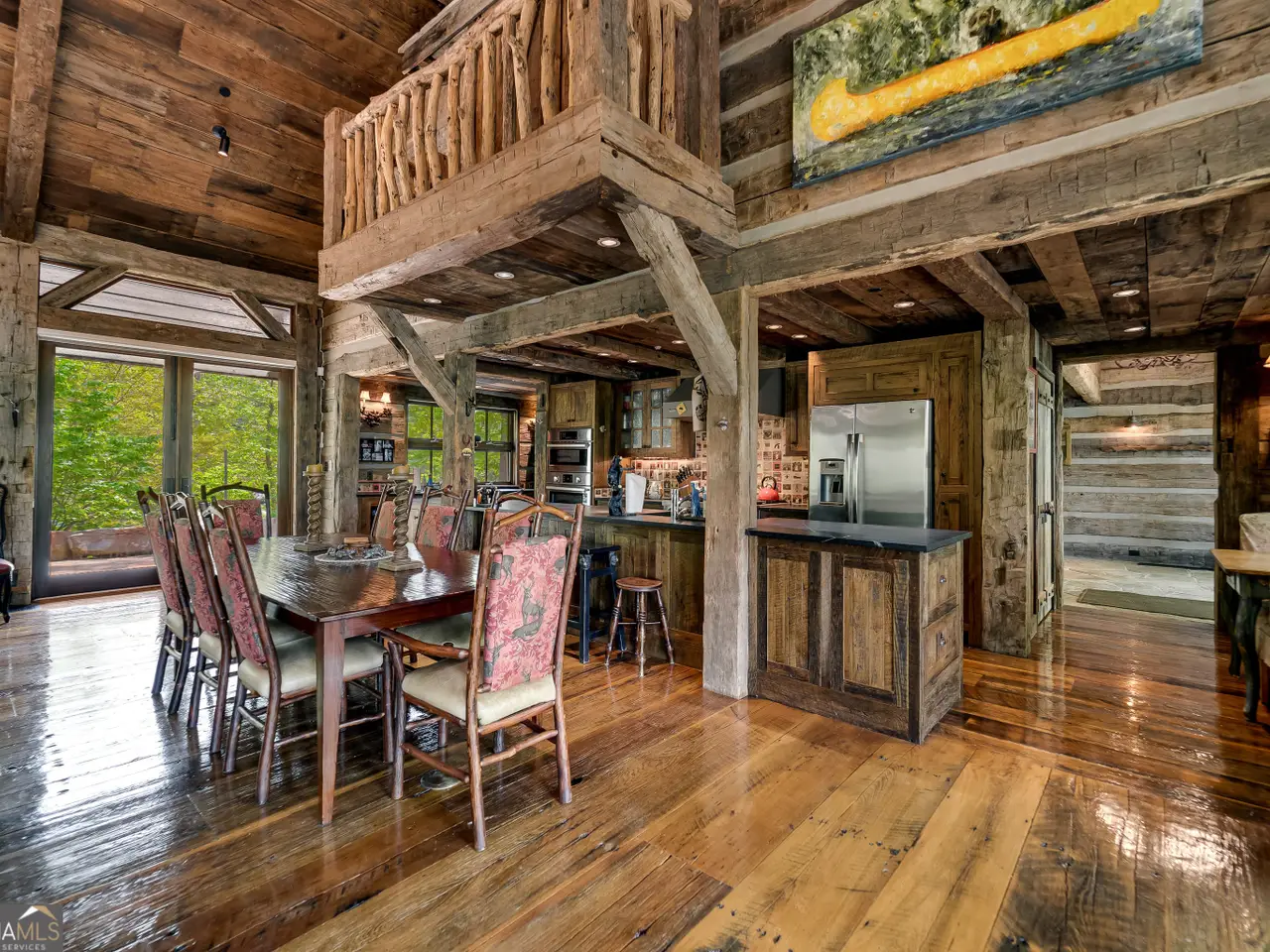 Once-in-a-Lifetime Private Island Estate on Lake Burton Discover the pinnacle of lakeside luxury with this extraordinary 6,186 sqft mountain lodge, perched on its own private island in the heart of Lake Burton's coveted big basin. Offering 360- degree lake and mountain views, total privacy, and Yellowstone-inspired rustic elegance, this one-of-a-kind estate redefines waterfront living. Crafted from reclaimed timbers sourced from Southern cotton mills, the residence exudes old-world craftsmanship and frontier charm. Hand-hewn oak siding with classic chinking, dry stack Tennessee fieldstone, rough-sawn wide plank oak floors, and steel structural supports anchor the home with strength and character. An elegant entry foyer welcomes you from two directions, showcasing east and west views through an open riser staircase with reclaimed treads and flagstone flooring. The soaring great room features lake views from 2 walls, a dramatic cupola, flanking fireplace posts reclaimed from Zachary Taylor Scott's historic home, and a moose antler chandelier complete with a buckshot hole. The chef's kitchen blends style and substance with black soapstone countertops, custom barn wood cabinetry, Viking 6-burner range, dual Bosch dishwashers, refrigerator drawers, custom soapstone sinks and two pantries. The private owner's suite features 3 walls of lake views, a barn wood clad vaulted ceiling and stone fireplace. Each guest bedroom offers unique views and details. The main floor provides 2 guest bedrooms, each with chinked log walls and a private bath. Upstairs, a clever bunk room offers access from 2 separate hallways with a full bath on each end. A large hidden pocket door opens to separate the space into 2 separate bunkrooms when desired. A library with a vaulted ceiling and lake views is currently styled as another guest bedroom upstairs. The terrace level offers a spacious yet cozy media room with a wall of bunk beds against the back wall, a kitchenette with a full fridge/freezer combo, range, sink and dishwasher and laundry room with sink. The gym was designed to mirror the upstairs bunk room, featuring full bathrooms on each end. This space could easily be converted into 2 separate guest bedrooms with the addition of a wall. Outdoors, expansive flagstone patios wrap the home offering views from all directions. Meandering trails of recycled tire wrap the Island, leading to the east wharf and swim dock, putting green, and west side 2-story, 2-stall covered boathouse overlooking one of the most epic sunset views on Lake Burton. Additional Details include: self-contained fire suppression system, copper-clad Kolbe windows, antique terracotta tile, LiteTouch lighting system, extensive security system, 1GB Fiber Optic Internet, slate roof, lightning rods, Generator, central vac. Proof of Funds required before showing. There are security surveillance cameras throughout the island. Do not attempt to access the property without listing agent being present.