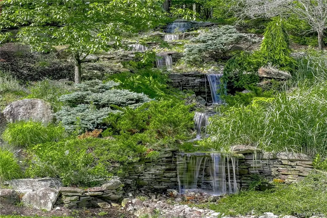 This magnificent colonial is nestled in a serene cul-de-sac with meticulously landscaped property which boarders state park land. The backyard is a true oasis with almost 2 acres of picturesque park like property that promotes privacy and tranquility. As you ascend up the drive you are met with how special this home is. This beautiful home is a thoughtfully designed 4/5-bedroom retreat that combines luxury, comfort, functionality, and entertainment seamlessly. Once inside, you are met with a cathedral foyer that boasts a stunning alabaster chandelier. The main floor is lovely with French doors, 2 wood burning fireplaces, and hardwood floors throughout. The Great Room is an outstanding entertainment space, with 9 ft. ceilings, a custom built-in entertainment center and wet bar. The Formal Living Room w/wood burning fireplace flows into the Dining Room with French doors to the backyard portico perfect for entertaining. The chef s kitchen features custom cabinets, granite countertops, double Thermador electric ovens, 6-burner Thermador gas cooktop and hood that allows you to entertain with ease. The kitchen, where loved ones gather flows into the family room with vaulted 16ft ceilings, fireplace and access to an oversized new trex deck that seamlessly connects indoor and outdoor spaces. The office with custom cabinets is a classic, which could also serve as a first floor bedroom. The spacious and luxurious primary bedroom is perfection with 12 ft. vaulted ceilings, a gas fireplace, balcony that faces the waterfalls outside, an en-suite with large tub, steam shower, double vanities and 3 walk-in closets. The second bedroom has 12 ft. ceiling and hardwood floors w/dedicated full bath. The third and forth bedroom share a spacious full bath with Jack and Jill doors, double sinks and water closet. The finished lower level has endless possibilities w/ 2 spacious versatile rooms ready to be designated(media room, gym, or potential en suite ), wine room, full bathroom, storage room and access to a 3 car pristine garage. This home is very energy efficient with 5 zones for heat and 2 zones for central AC. Other features: security system. sprinkler system and indoor/outdoor sound system. With entertainment spaces throughout the home and the vast backyard offers amazing space for family gatherings, large special events or simply unwinding and enjoying your own private sanctuary. Only 50 minutes to NYC; minutes to Bear Mountain State Park; close to marinas, golfing, hiking trails, and 7 lakes. Enjoy fishing, kayaking, hiking, and boating or jet skiing on the Hudson River. LOW TAXES! This home is a must see. A true gem!