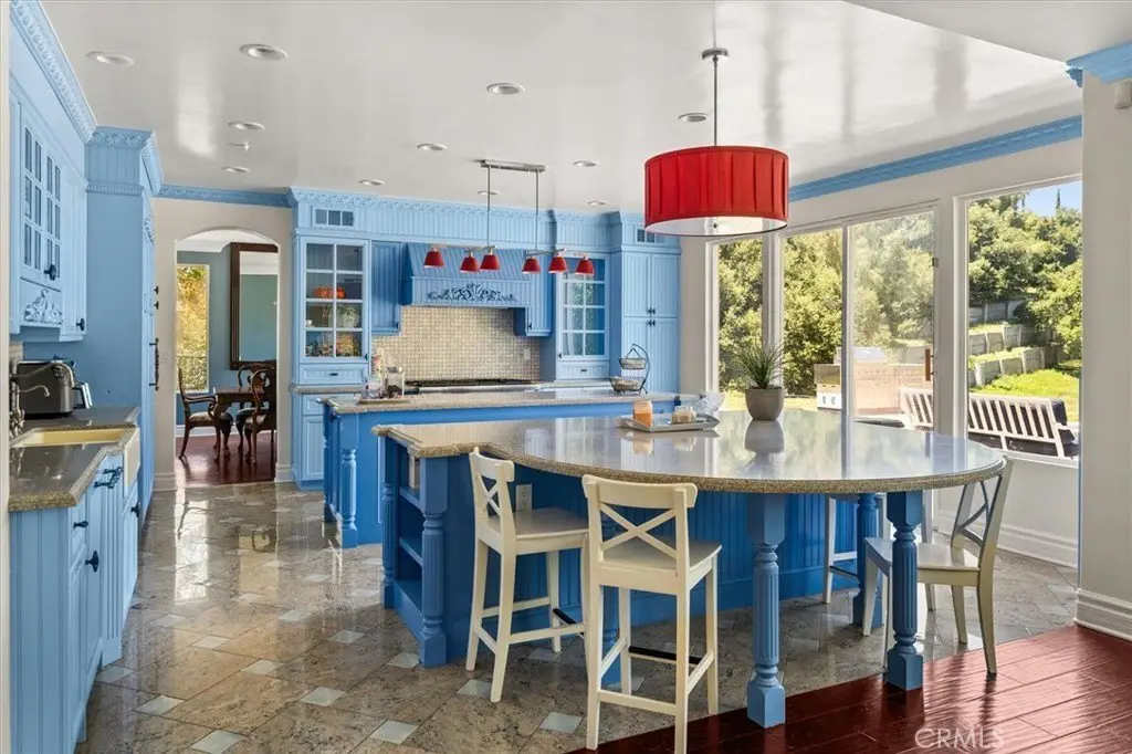 INCREDIBLE VALUE! Tucked away within the prestigious guard-gated enclave of Summit Point Estates, this exquisite five-bedroom, four-and-a-half-bath residence offers the perfect blend of timeless elegance and modern luxury. Situated at the end of a peaceful cul-de-sac, the home welcomes you with a stately double-door entrance that opens to soaring 30-foot ceilings and a bright, thoughtfully designed floor plan ideal for both refined entertaining and everyday living. The grand formal living and dining rooms exude sophistication, seamlessly flowing into a chef's dream kitchen—beautifully appointed with dual center islands, top-of-the-line Thermador appliances, and an abundance of custom French country cabinetry. The adjacent family room, anchored by a cozy gas fireplace, offers a warm and inviting ambiance, while the charming breakfast island provides the perfect spot for casual dining. A well-appointed guest suite with a private bath completes the main level, ideal for visiting family or friends. Upstairs, the expansive primary retreat features a serene sitting area, dual walk-in closets, and a luxurious en-suite bath with double vanities, soaking tub, and separate shower. Three additional bedrooms—two sharing a Jack-and-Jill bath and one with a private en-suite—provide ample space for family or guests. Walls of glass open to the resort-inspired backyard, where lush landscaping surrounds a sparkling pool and spa, expansive lawn, and covered patio—offering an idyllic setting for entertaining or tranquil relaxation. A finished four-car garage, complete with a 220-volt EV charger, adds to the home's exceptional amenities. Located in the scenic Santa Monica Mountains, just minutes from hiking trails, premier shopping and dining at The Village, and the iconic beaches of Malibu—this is California living at its finest.