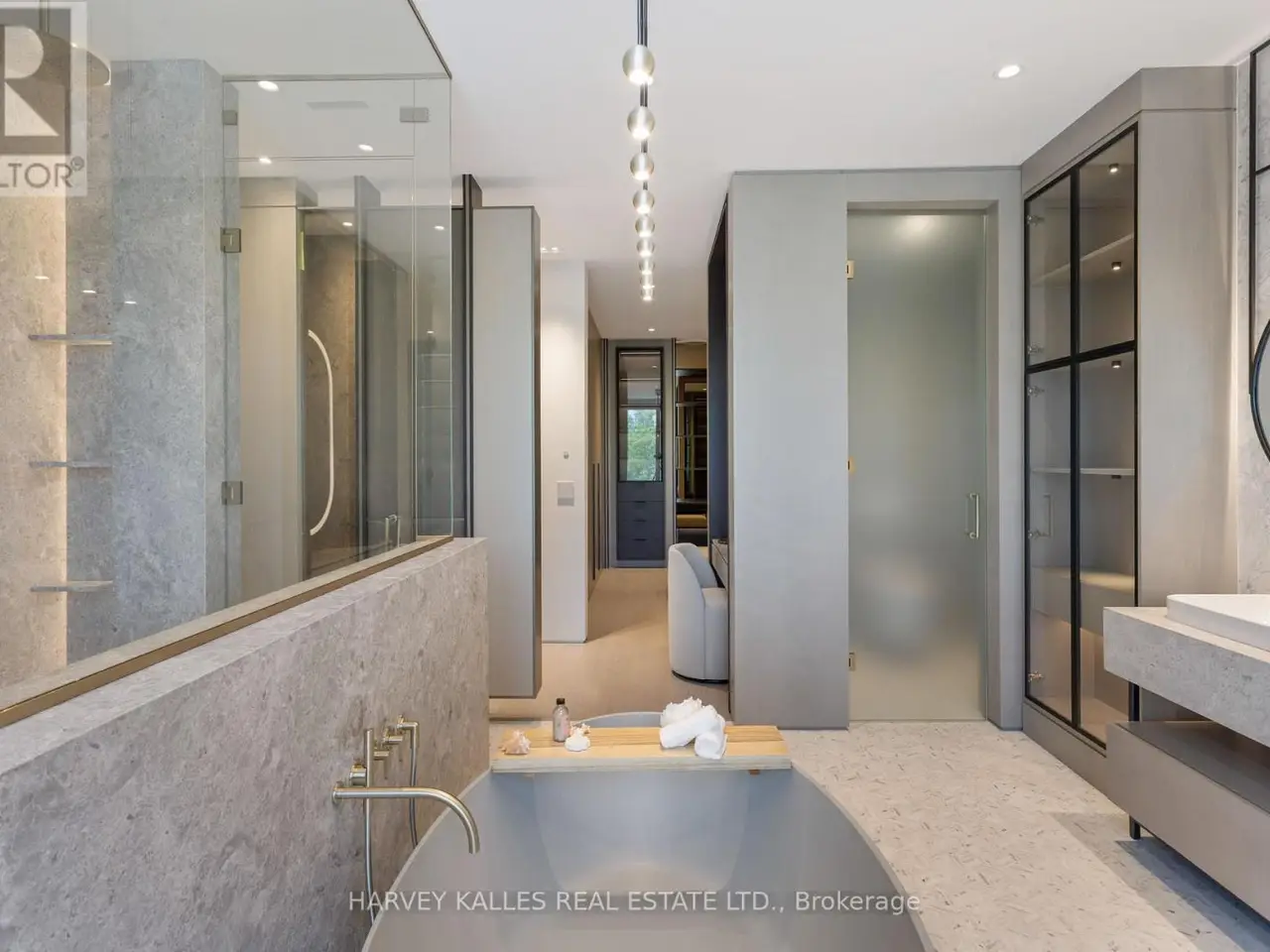 Welcome To 211 Dunvegan Rd, A Masterpiece Of Modern-Transitional Living Crafted By Omid Taba And Forest Range Developments. This Bespoke Residence Sits On A Generous Corner Lot, Offering 6,972 Sq. Ft. Above Ground Plus 2,884 Sq. Ft. In The Lower Level. Every Detail Reflects Precision, Innovation, And Refined Craftsmanship, Merging Architectural Drama With Timeless Elegance. From The Serene Gallery-Like Foyer, Sightlines Lead To The Dramatic Double-Height Family Room, Where Floor-To-Ceiling Glazing, Sculptural Lilac And Calacatta Viola Marble, And Custom Vertical Wood Panels Create An Atmosphere Both Bold And Inviting. A Seamless Flow Connects The Kitchen With Dual Marble-Topped Islands And Fully Integrated Sub-Zero, Wolf, And Miele Appliances To The Dining Area, Anchored By A 12-Seat Custom Marble Table Beneath Henges Superb All Chandelier. Additional Living Zones Include A Warm Living Room With Sky White Marble Fireplace, A Refined Study, And A Moody Lower-Level Lounge With Gym, Theatre, Bar, And Glass-Enclosed Cooled Wine Cellar. The Primary Suite Features A Suspended Fireplace, His-And-Hers Boutique Dressing Rooms, And A Spa-Like Ensuite With Cocoon Fixtures, Freestanding Tub, Steam Shower, And Heated Floors. Four Additional Bedroom Suites Plus Nannys Suite And A Third-Floor Sitting Area With Kitchenette Ensure Space And Privacy For Family And Guests. An Elevator Provides Access Across All Levels, While Radiant Heated Floors, Smart Home Automation, And Integrated Lighting And Climate Systems Offer Modern Comforts. Outdoors, A Walk-Out Terrace Features Covered BBQ, Dining And Lounge Seating Centered Around A Sculptural Firepit Above A Reflecting Water Basin With Cascading Water Into A Lower Pond. Beyond, A Resort-Style Pool And Jacuzzi With Lush Landscaping Create A Private Retreat For Relaxation And Entertainment. Artistry And Innovation Converge To Deliver A Residence Of Unparalleled Sophistication, Lifestyle, Comfort, And Timeless Design. (id:6370)