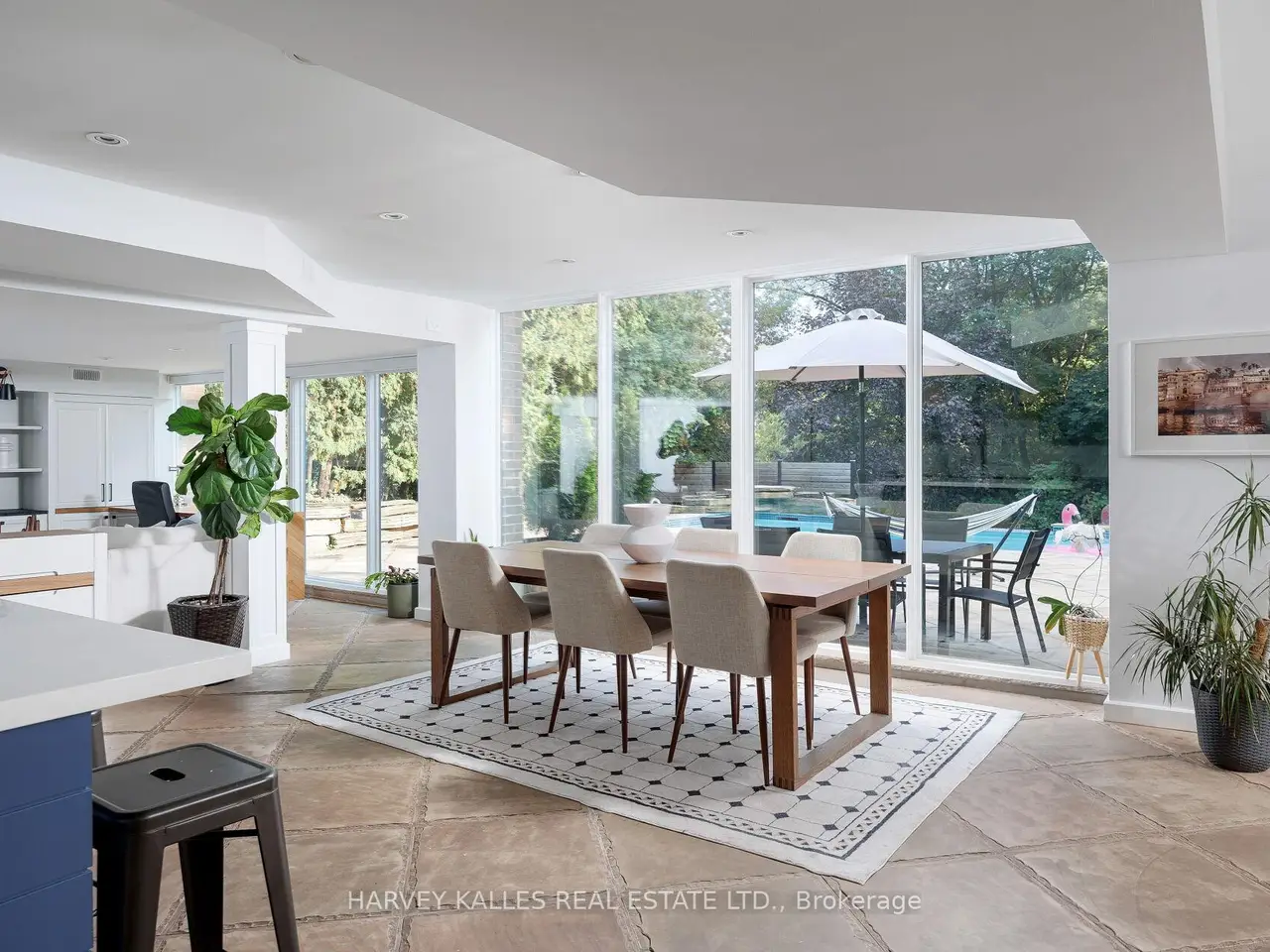 Say yes to the absolute best; this Markland Wood mid-century modern home is the pinnacle of style and comfort with unique details and a timeless aesthetic. Modern living and beautiful mid-century modern architecture? Check! Close to every amenity imaginable? You've got it! A beautiful backyard paradise on a ravine lot and an inground pool that makes you feel like you're on a tropical vacation every day, all day? Naturally. A brand-new mud room with direct access to the garage and side entrance? Oddly specific ask, maybe but yes, that too! Your new dream house offers so many perks that you may never need to board an airplane again. Designed by Award Winning Architect, Anthony Ferracuti (Global Architects), this 4+1 bedrooms, 3.5 bathrooms, plus a half bath home provides room to spare. The eat-in kitchen comes with professional-grade Frigidaire and Miele appliances, while a walkout basement makes entertaining a breeze, with its own kitchen, dining area, lounge spaces and sauna. Community features include Neilson Park Creative Centre, Markland Woods Golf Club, and walking/bike trails along the Etobicoke Creek Ravine (and CF Sherway Gardens, of course!) The home is also in the catchment area of top-rated schools, including St. Clement Catholic School. With an oversized pie-shaped lot, opportunities for outdoor enjoyment open up. This home was made for making memories. With an expansive primary bedroom complete with its own sitting area and a four-piece ensuite, it's hard to pick a favourite feature in this glorious oasis. This is your perfect home for everyday luxury.