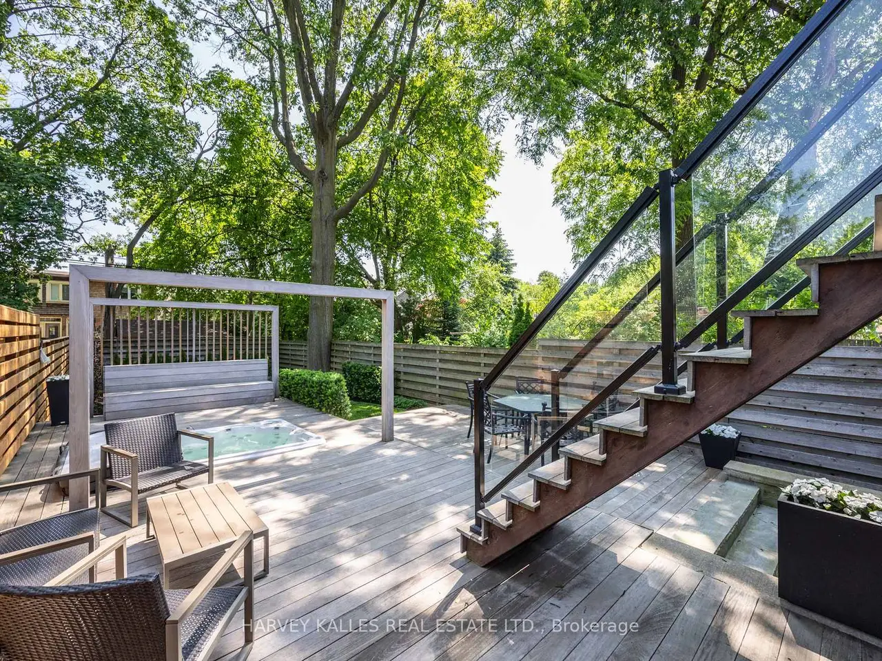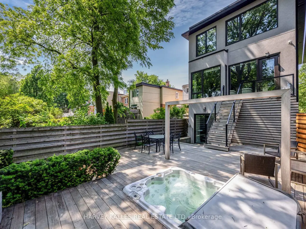 An Awe-Inspiring Modern Architectural Masterpiece Ideally Situated in the Heart of Davisville Village, Within the Coveted Maurice Cody, Hodgson, and Northern School Districts.Built in 2016 on a Professionally Landscaped South-Facing Lot Measuring 25 by 150 Feet, This Exceptional Residence Offers Approximately 3,427 Square Feet of Thoughtfully Designed Living Space.Floor-to-Ceiling Windows Bathe the Home in Natural Light, Highlighting Finely Curated Finishes Throughout.The Gourmet Chefs Kitchen Boasts a Top-of-the-Line Thermador Appliance Package, Wide Claw-Groove Hardwood Floors, and Sleek Stainless Steel and Glass Railings That Connect All Levels withStyle.Enjoy Soaring 10-Foot Ceilings on the Main Floor and Two Luxurious Ensuite Bathrooms, Including an 8-Piece Spa-Inspired PrimaryRetreat.Step Outside to a Resort-Like Backyard Oasis Featuring a Built-In Hot Tub and Expansive Deck Perfect for Entertaining or Unwinding inStyle.Modern Living at Its Absolute Finest.