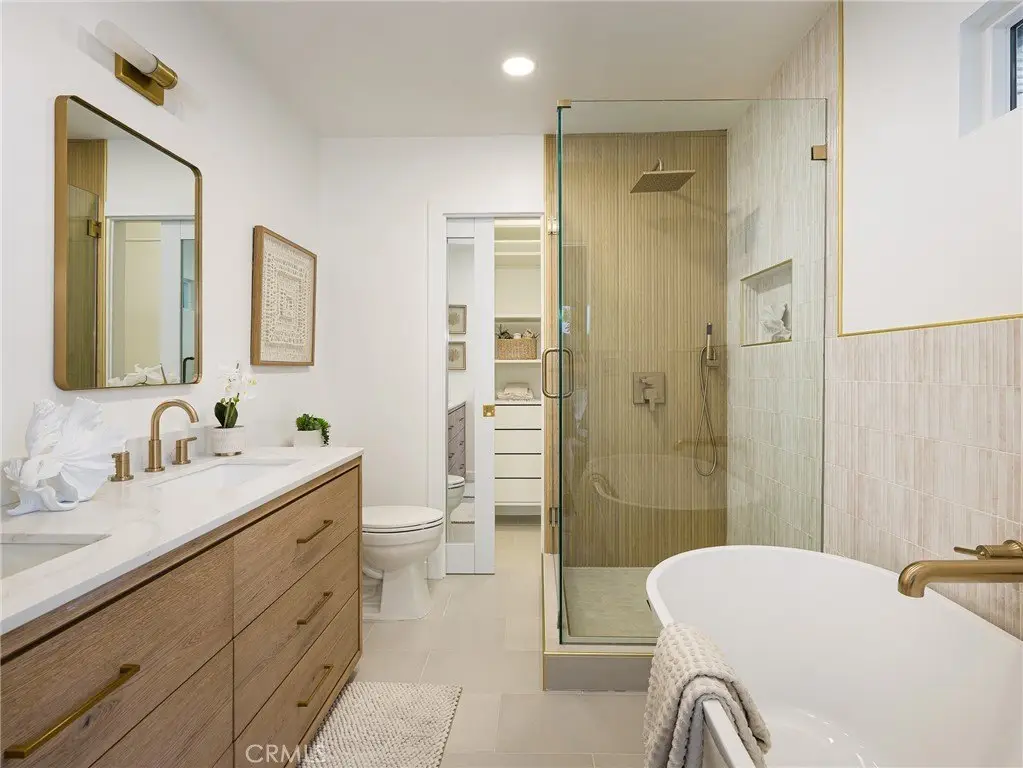 Perched above the street on a sprawling 21,500 sq. ft. lot, this fully remodeled single-level Hollywood Riviera home offers privacy, tranquility, and beautiful city lights & ocean views. A long private driveway leads to the residence, where you’ll enjoy peace of mind with no through traffic and exclusive access to the eucalyptus-lined Palos Verdes bridle trail. This 4-bedroom, 3.5-bath home has been thoughtfully reimagined with modern design and convenience. Three bedrooms feature en-suite baths, including two luxurious primary suites—each with its own stunning perspective, so you can choose which view to wake up to. The entertainer’s kitchen showcases a dramatic waterfall quartz island, custom cabinetry and state-of-the-art Monogram appliances, all opening seamlessly to the living and dining spaces. White oak engineered floors run throughout, creating warmth and elegance at every turn. With over 2,550 sq. ft. of expansive, single-level living, the home’s interiors and outdoor spaces are designed to maximize the views and invite indoor-outdoor living while entertaining guests. Though tucked away in its own serene world, the property is just minutes from Riviera Elementary, Rocketship Park, and the boutiques and dining of Riviera Village. Come experience the rare blend of seclusion, sophistication, and sweeping views that make this one-of-a-kind Hollywood Riviera property so special.