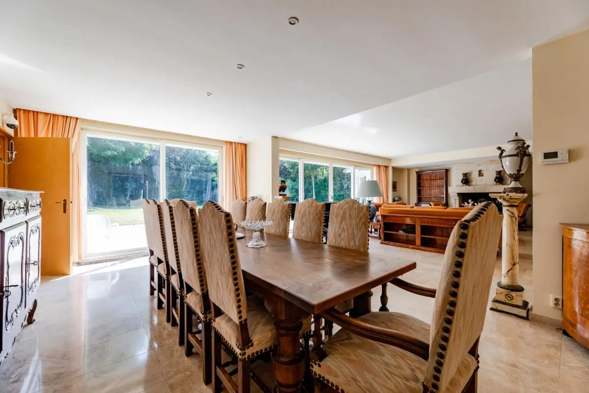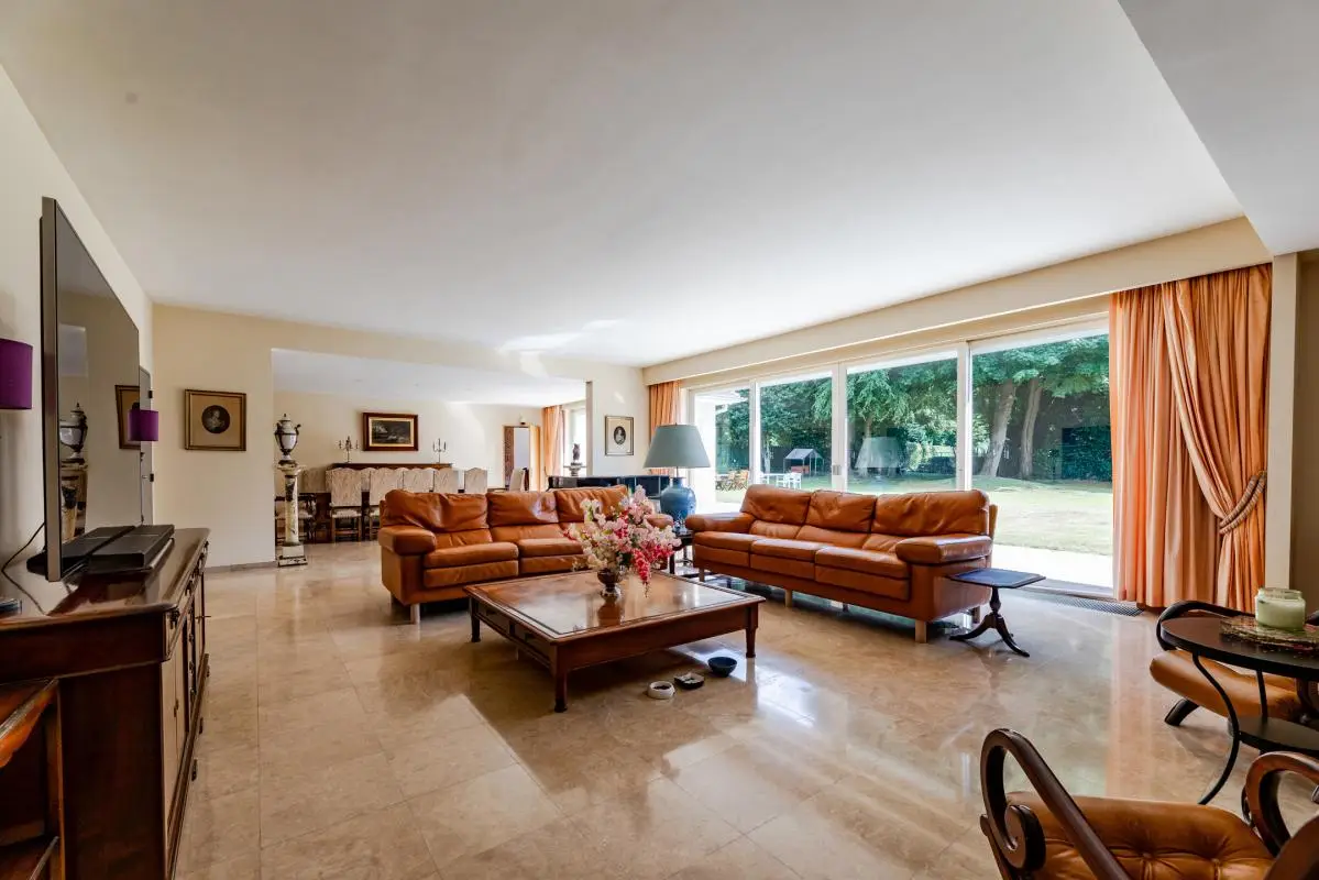 On the edge of Uccle, in a quiet, leafy residential setting, attractive family villa built in 1985, enjoying a magnificent south-west-facing garden (plot of 25.67 ares). With a built area of 600 m², it offers spacious 85 m² reception rooms opening onto the terrace and garden, a fully-equipped kitchen with breakfast area, 5 bedrooms including a large master suite, and 4 bathrooms. A vast converted basement includes a gym with bar and cloakroom. A 3-car garage completes the property. PEB: B A bright, well-designed villa in a peaceful setting, within easy reach of Uccle's amenities and ideal for a luxury family life.