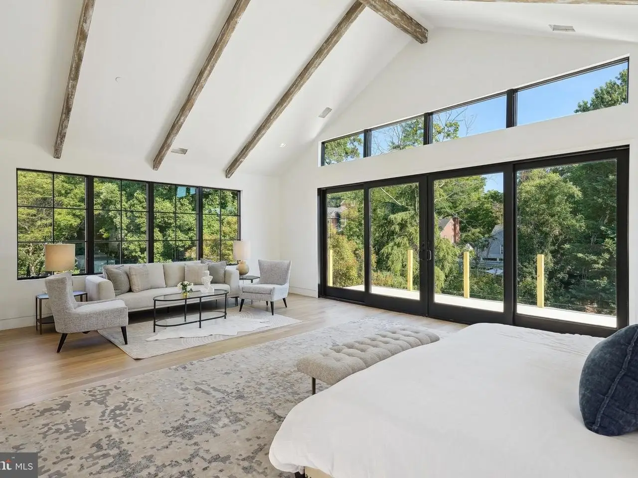 Masterpiece in Martin's Additions! Nestled within the coveted enclave of Martin's Additions, this architectural gem seamlessly marries timeless elegance with contemporary design. Every detail reflects a commitment to refinement-from bespoke finishes to the carefully curated materials that create a luxurious yet welcoming atmosphere. Dramatic ceilings and expansive walls of glass establish a sense of boundless space, while a sculptural floating staircase becomes a striking centerpiece. The open-concept layout flows effortlessly from formal dining to inviting living spaces and an intimate home office, complete with a sleek gas linear fireplace-ideal for both productivity and relaxation. A multi-slide glass wall opens to a covered deck, providing a stunning indoor-outdoor connection and panoramic views of the lush, professionally landscaped grounds. At the heart of the home is a show-stopping kitchen designed to delight both the eye and the palate. Outfitted with professional-grade Thermador and Sub-Zero appliances, the space is anchored by dramatic Quartzite countertops, a thick-edge island with seating for four, and sleek custom Wood-Mode cabinetry in the Milan door style. A sun-drenched breakfast area features a wall of windows, coffee bar, wine chiller, and additional refrigeration-perfectly balancing beauty and functionality. The great room is defined by a bold gas fireplace flanked by custom cabinetry, arched niches, and floating shelves backed with silk grasscloth. Retractable multi-slider doors connect this space to the covered deck, creating an exceptional setting for effortless entertaining. Sophisticated touches abound-from Visual Comfort lighting to designer stone and tile selections by Architessa-elevating the home's serene and polished aesthetic. The owner's suite offers a tranquil retreat, complete with vaulted beam ceilings, treetop views, and a private balcony-ideal for morning coffee or evening stargazing. The spa-like bath pampers with a deep soaking tub, rainfall shower, heated floors, and custom Wood-Mode cabinetry. Three additional bedroom suites and a well-appointed laundry room complete the upper level. The expansive lower level is thoughtfully designed for both leisure and function, featuring a gym, wine room, en-suite bedroom, oversized recreation room, second mudroom, ample storage, and a spacious two-car garage. The home is elevator-ready, ensuring comfort and accessibility across all three levels. Spanning nearly 6,000 square feet, this residence offers unmatched sophistication, comfort, and convenience. Located just moments from the shops along Brookville Road, La Ferme restaurant, the neighborhood coffee shop, the Saturday farmers market, and with easy access to major airports and highways, this home is the perfect blend of elevated living and everyday ease-a true sanctuary for the most discerning buyer.