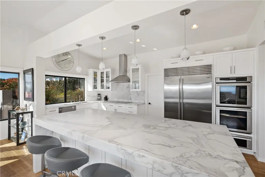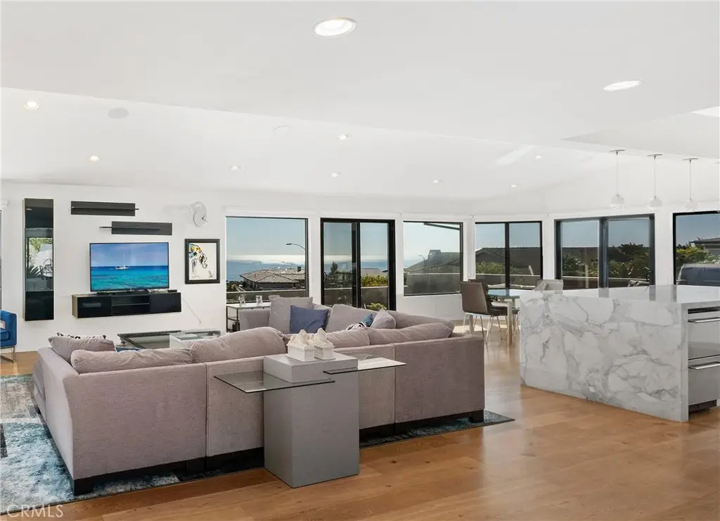 Experience the pinnacle of coastal living in this panoramic 270-degree, single-level view home located in the highly coveted Monarch Bay Terrace. Perched atop a hill on a premier corner lot, this contemporary residence offers breathtaking sit-down views that span from the ocean and San Clemente Island, down the coastline to San Diego, and across the mountains. Designed with a completely level floor plan and no interior steps, the home features seamless flow from the chef's kitchen--complete with a large island, wine fridge, refrigerated drawers, and Thermador, Wolf, and Sub-Zero appliances--to the dining room, Expansive open-concept living area/flex room and the two secondary bedrooms one is an ensuite, and large master suite. Every room showcases stunning coastline and ocean views, from sunrise over the mountains to twinkling city lights and unforgettable sunsets over the Pacific. The master retreat includes a walk-in closet and jacuzzi tub, while the ensuite guest bedroom, office with custom built-ins, and spacious laundry room offer exceptional comfort and functionality. A 3-car garage with epoxy flooring, built-in cabinets, and drawers provides ample storage. Outdoors, the landscaped courtyard, multiple sliders, and built-in BBQ bar create the ideal setting for year-round indoor-outdoor living. Just minutes from the award-winning Ritz-Carlton, Waldorf Astoria, Dana Point Harbor, and Laguna Beach, this is your rare opportunity to own an upscale coastal paradise in one of South Orange County's most sought-after communities.