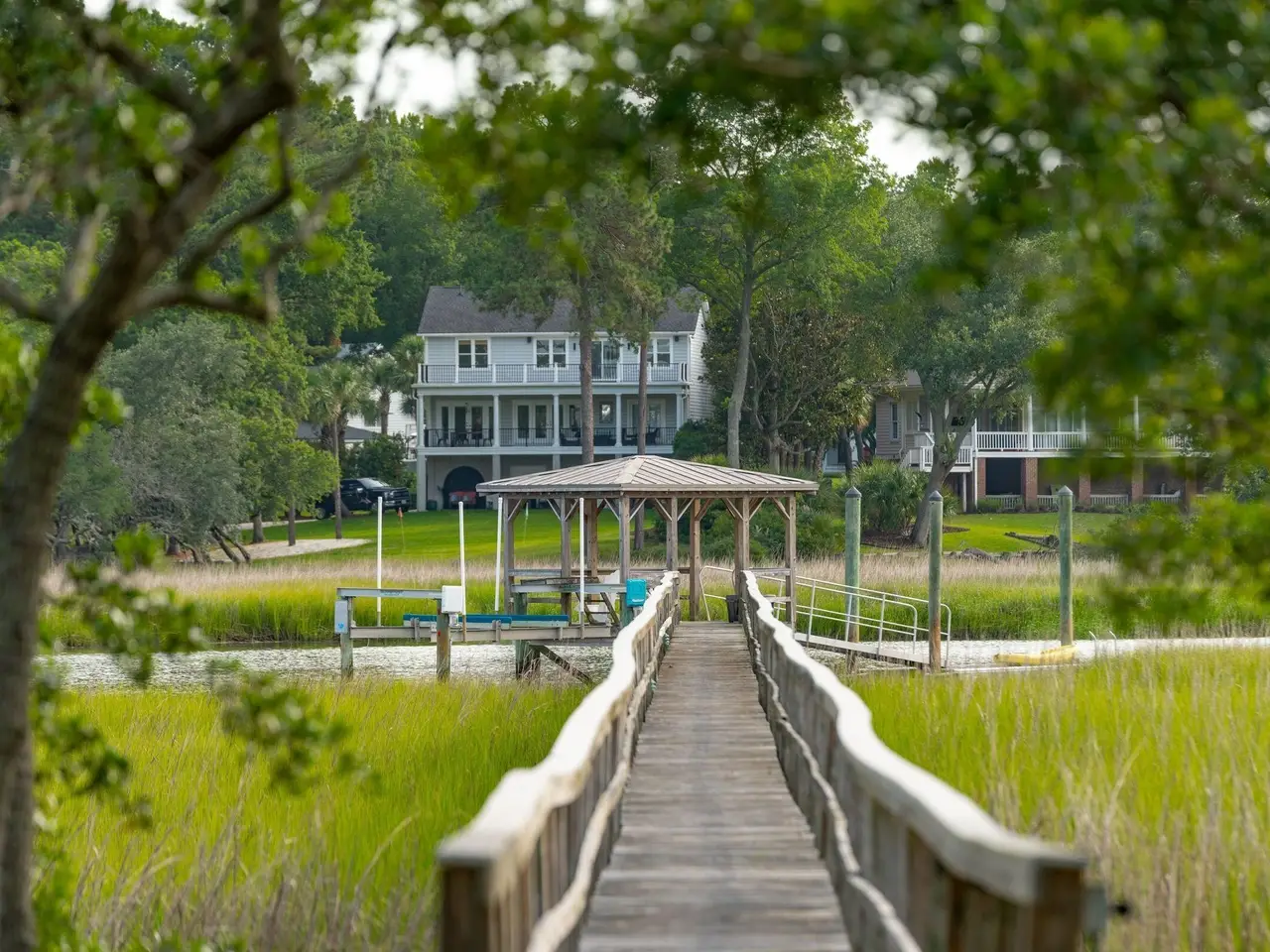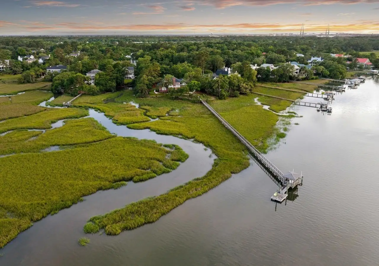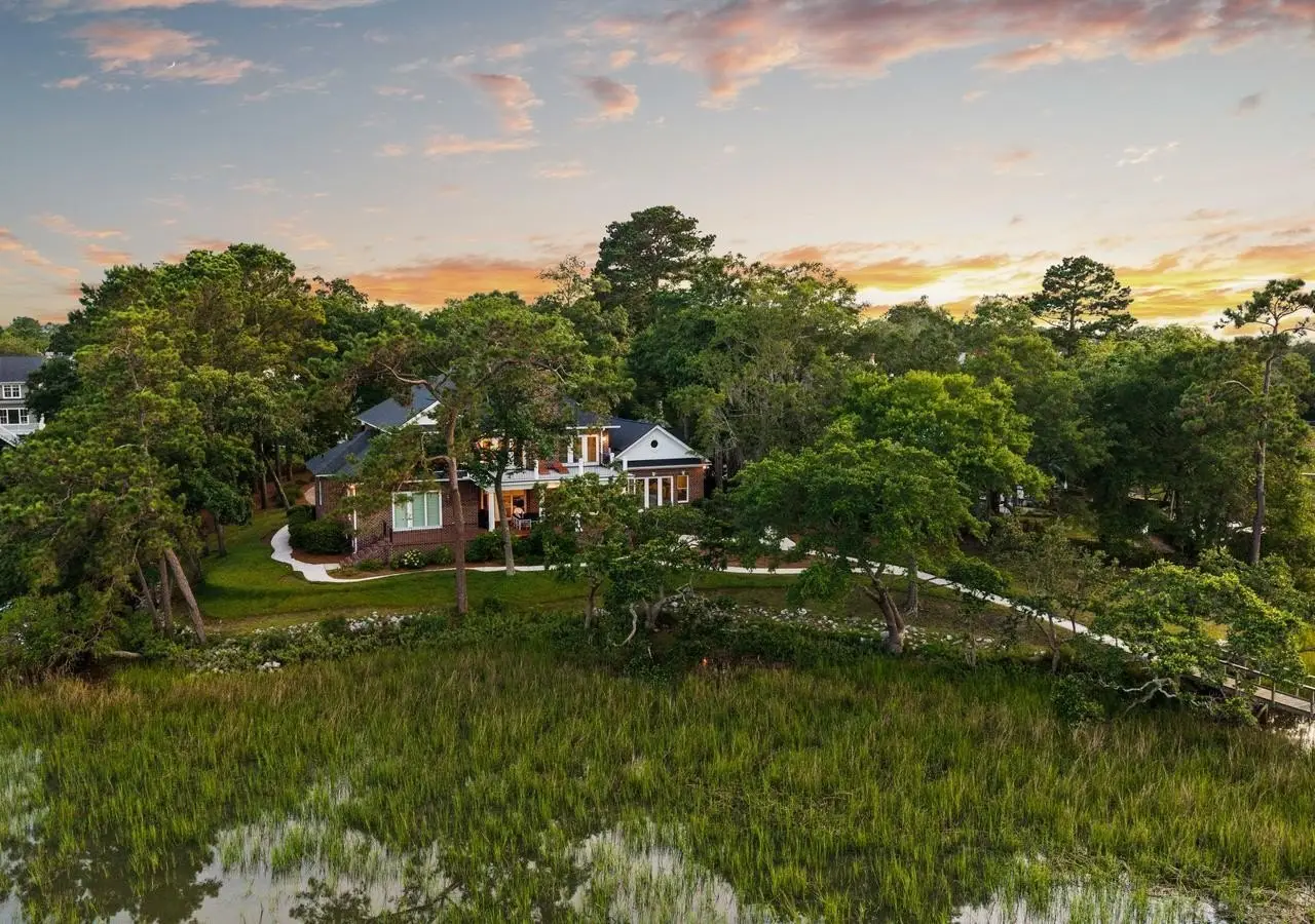 Welcome to 510 Traders Alley, easily one of the largest and rarest deep water offerings ever presented in south Mt Pleasant. This magnificent waterfront estate in the Reserve in Olde Park is tucked on a quiet cul-de-sac on a peninsula with one of the most extraordinary backdrops in the Low Country. The property at its core is all about panoramic water views, an abundance of privacy, and effortless access to everything Charleston has to offer by water or land. 510 Traders Alley is set on 3.47 acres along Hobcaw Creek, the home offers true deep water access at all tides from a private dock complete with a boat lift, a covered pier head, and a floating dock--an increasingly rare offering in the Charleston market. The property has nearly ¾ of an acre of high ground with elevated marsh frontage from approximately 200 degrees of views providing stunning sunrises and sunsets across the marsh with some of the most serene bird watching in the area. Built in 2002, this 5,745 sq ft brick estate was designed for both comfortable living and elevated entertaining. A brick driveway leads to the attached 2-car garage, while inside, 10 foot ceilings, plantation shutters, and thoughtful millwork set the tone. The heart of the home is the eat-in kitchen with Viking gas range, flowing seamlessly into casual and formal spaces including an eat-in kitchen and formal dining room made for gathering. The living room is set at the center of the home with a great fireplace and stunning views and access to arguably one of the best porches and back yards in the region overlooking your own dock and the surrounding marsh in both directions. The master suite on the main level also features porch access, dual spacious walk-in closets, and serene views and a large primary bath with privacy and even further views from your soaking tub. With 4 bedrooms, 4.5 bathrooms, and generous living areas throughout, it's a true entertainer's paradise. Bonus features include a large laundry room, abundant storage, a large finished room over the garage, a large living room upstairs with an additional porch with marsh views. The property certainly has the ability to add on even further to expand the living or outdoor areas if so desired. Olde Park is perfectly located in south Mt Pleasant next to the community of Ion as you have the ability to walk, bike, and golf cart into Ion Village and Hobcaw through the side streets that interconnect all these communities along the creek. Olde Park is a rare community that offers incredible estate sized lots as well as estate sized houses with neighboring residences spanning over 10,000 square feet. It is clear the community association balances modern luxury and low country elegance expertly as proven when driving in past the gorgeous homes set along the manicured walking trails and professionally landscaped communal spaces. The location cant be understated situated with close proximity (just 10 minutes) to downtown Charleston, the airport, and the beaches of Sullivan's Island and Isle of Palms while enjoying all the shops and restaurants Mt Pleasant has to offer. Whether you're sipping coffee on the porch or heading out for a sunset cruise, this home offers a rare blend of acreage, deep water access, privacy, and timeless construction - all in a location that defines Low country living.